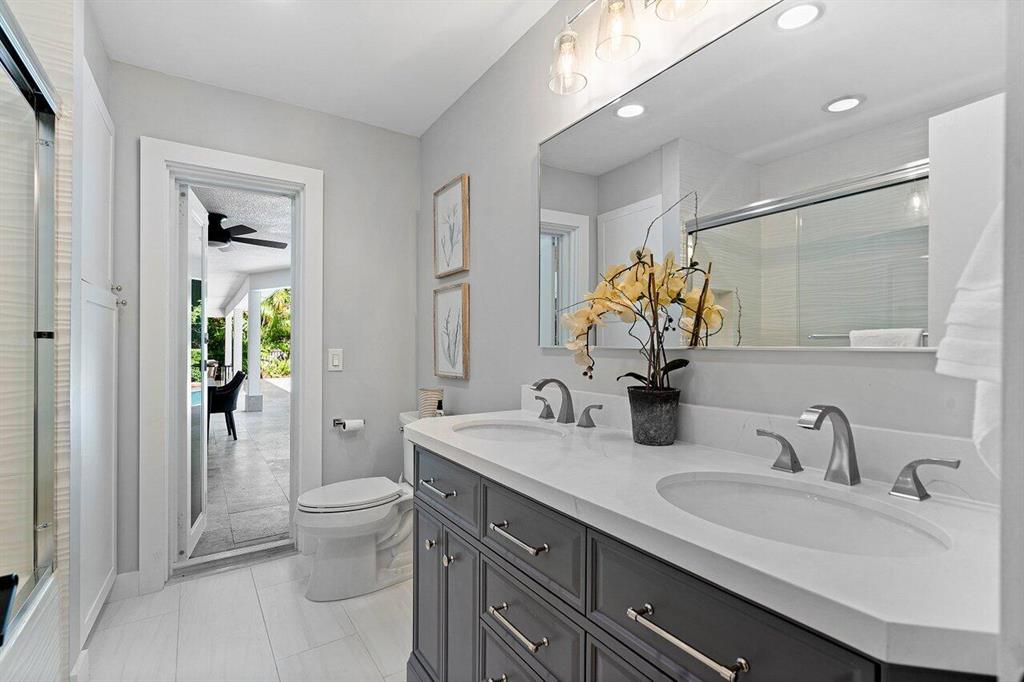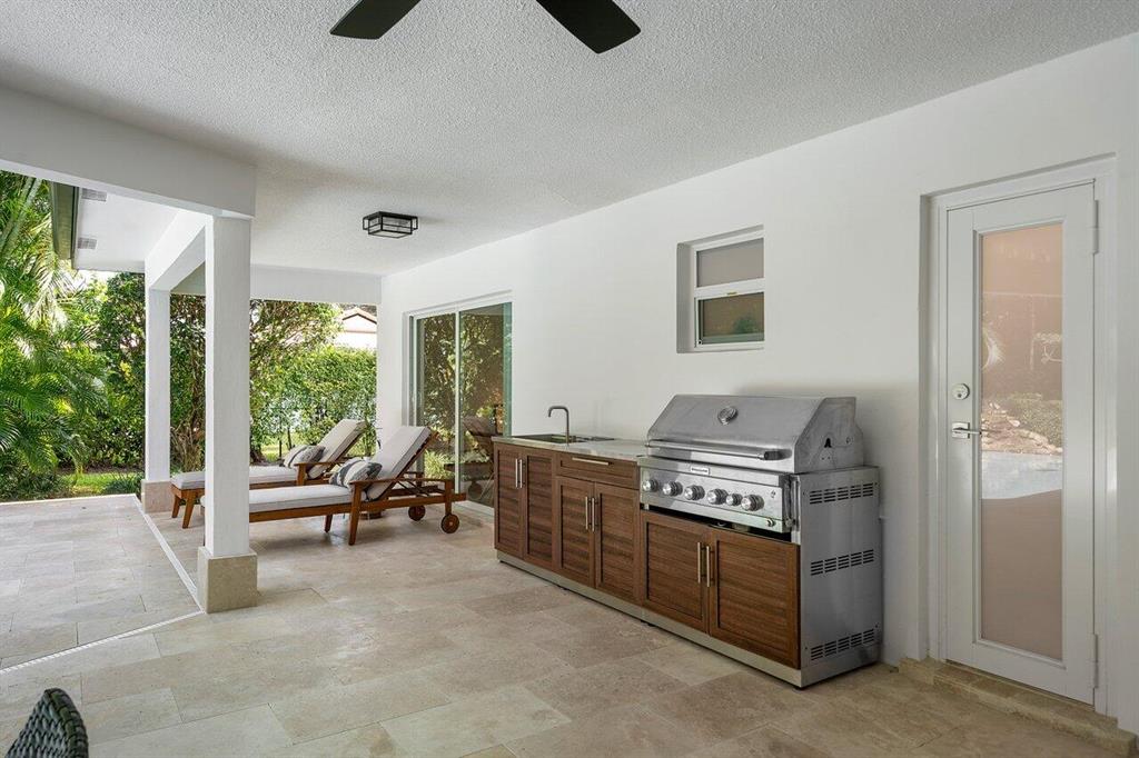 Located on a huge lot with two driveways and plenty of parking, this Estancia South home boasts everything you could want on your Boca wishlist. From the top down: Brand new roof 2022, spacious Ultracraft kitchen with LG appliances, Moosoo wine fridge and custom pantry with electric INSIDE for convenience. Two dishwashers, two refrigerators, two sinks with exotic stone countertops in Cristllita blue. Custom lighting. Impact windows & doors. New laminate floors throughout the home with tiled bathrooms. Dramatic large white tile fireplace. Home office. Split floorplan that showcases the huge pool. Brand new summer kitchen with BBQ comes with the home. Entertain outside under the canopy of the roof. Interior and exterior ceilings fans. Gated community w/tennis, park. Walk to worship/dine.