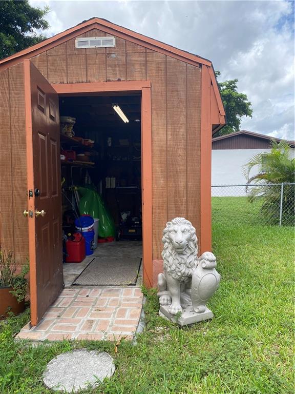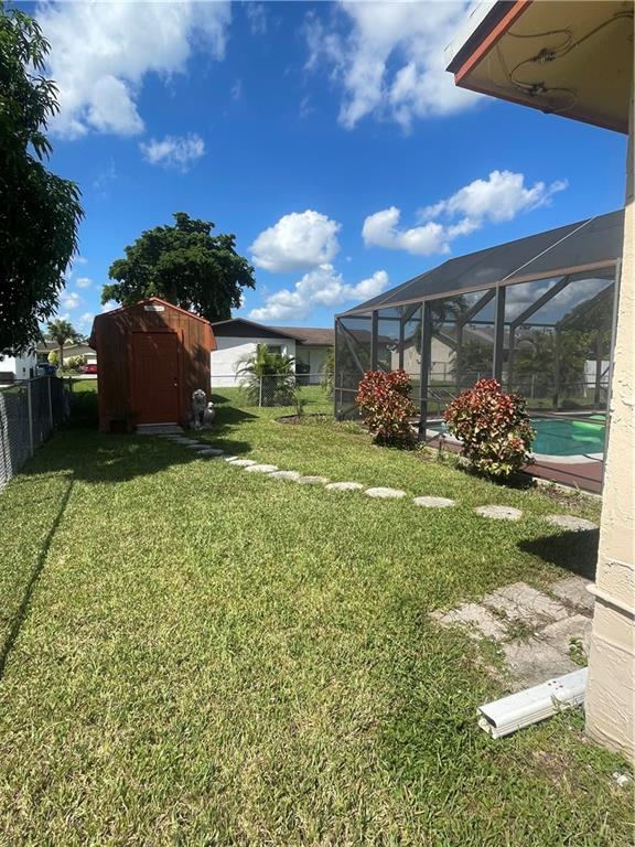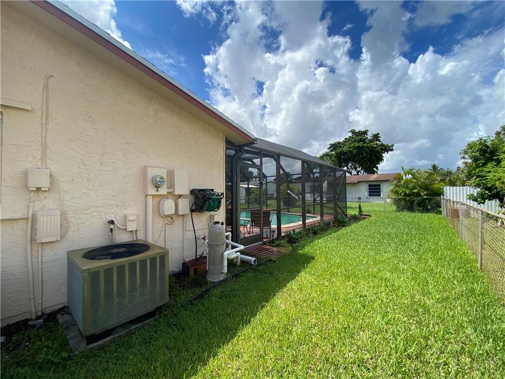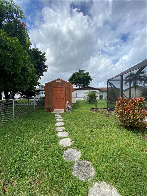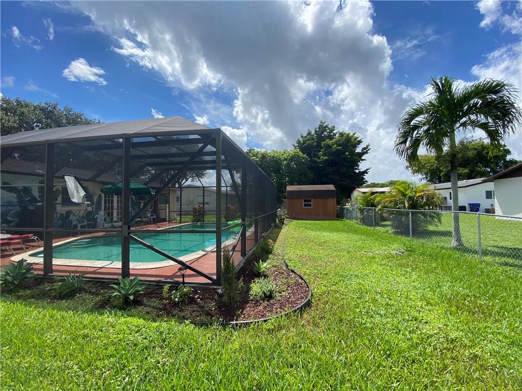 There's no place like home for the holidays! This move-in ready Pool Home is situated comfortably in sought-after Pembroke Pines. With plenty of room for a boat or RV, the fenced-in back yard features a shed/workshop & generous screened-in pool/patio. French doors going inside and a Sun Setter retractable awning for outside. This cozy home boasts a new water heater & newer AC. Large master bedroom w/ roomy closet/storage space, and a designated utility/laundry room just off kitchen. Perhaps the best part about this tucked-away Pines home is the bonus bedroom/office/den, currently being used as additional bedroom. Your family is protected with galvanized hurricane panels/shutters for the entire house (mounted tracks). No HOA here!