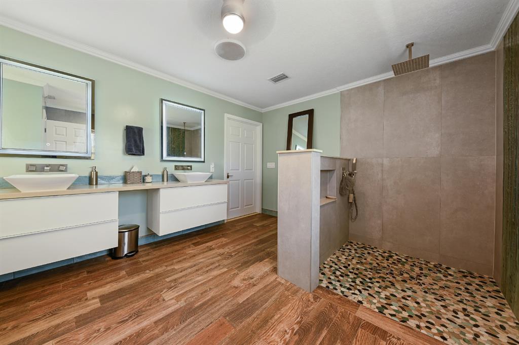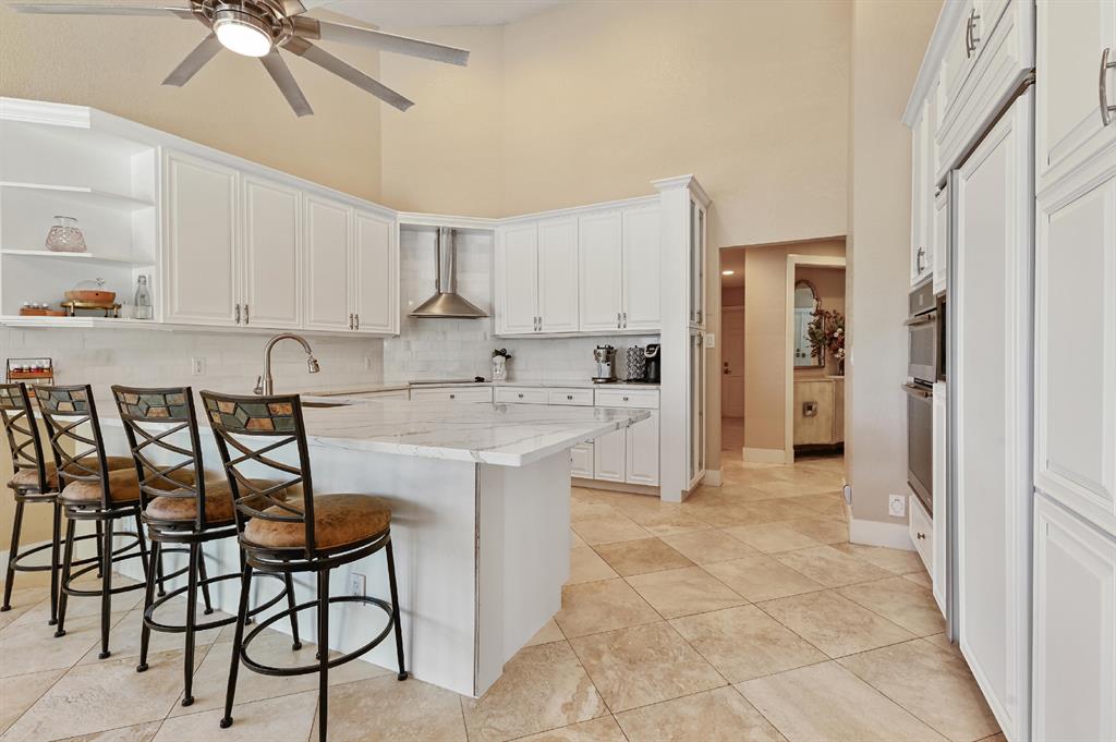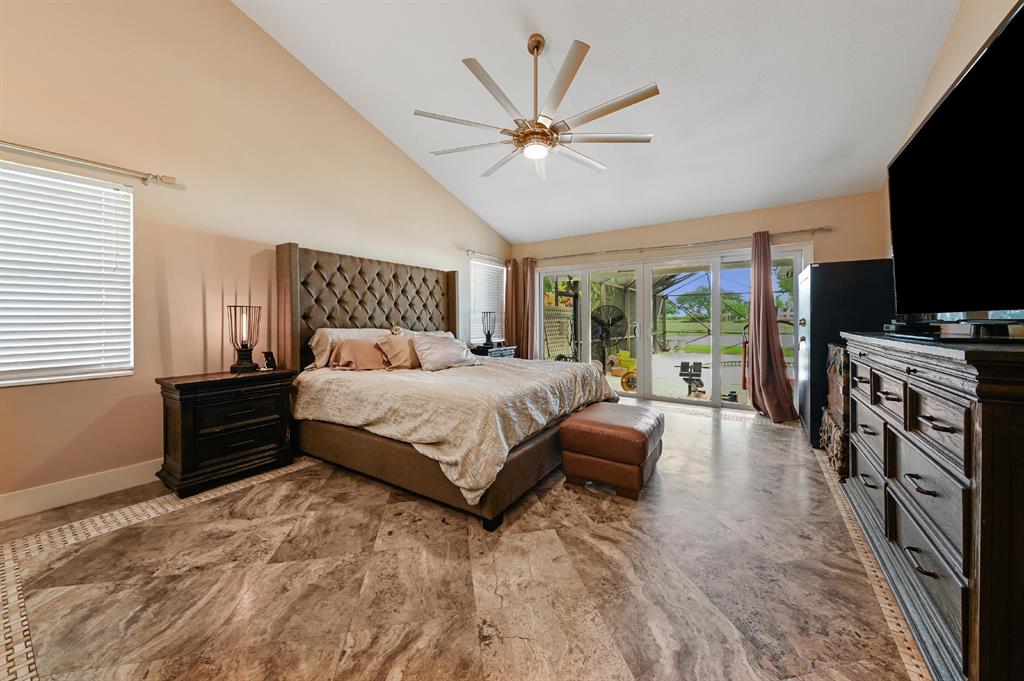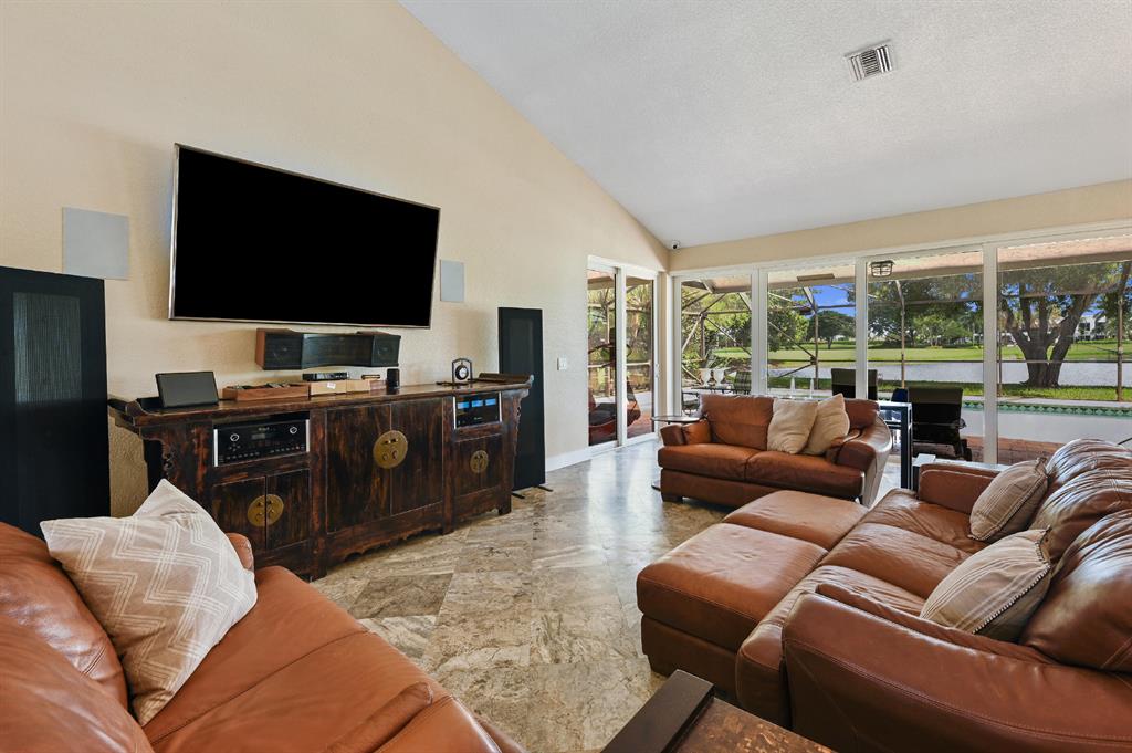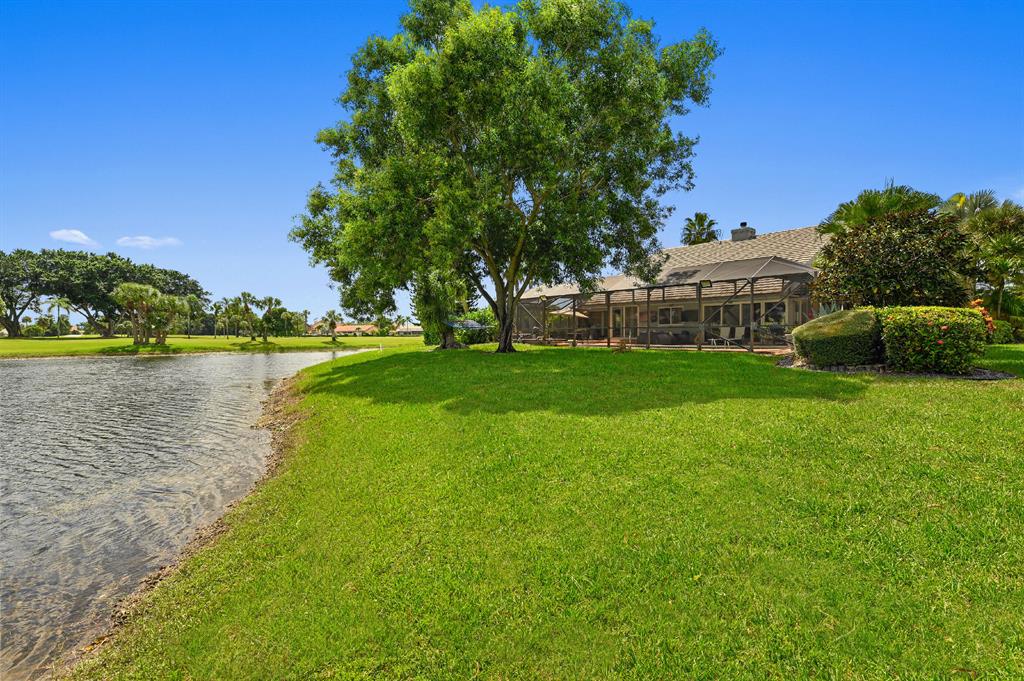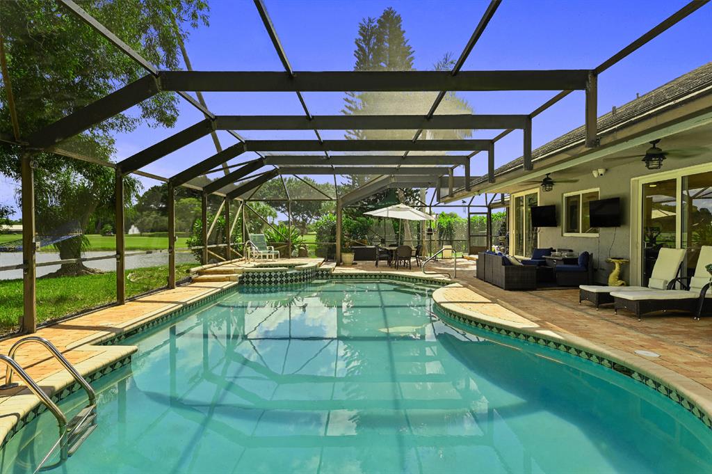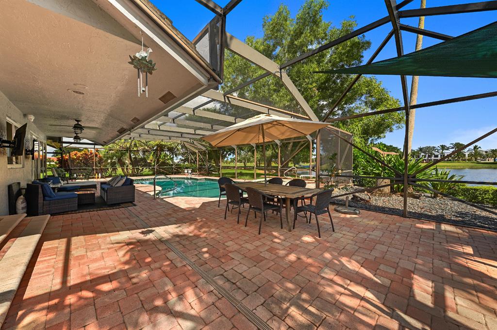 Second LARGEST LOT in Boca Woods. Beautiful 3BR, 2.5BA POOL home located on cul de sac with Lake and Golf Course View. Open floor plan. BRAND NEW kitchen with quartz counter tops, white cabinetry, subway tile, SS Appliances. Marble & Travertine in main living area. Primary Bathroom remodeled 3yrs ago. Second and half bath recently remodeled. New baseboards, interior doors, fans replaced 3yrs ago, interior painted 3 yrs & exterior 4yrs ago. Electrical Panel 2 yrs, AC 2 yrs, Hot Water less than 5 yrs, pool heater 2 yrs, fenced in dog yard with Astro Turf 2 yrs. Separate dining area, fireplace, and split bedrooms. Pool area has large patio and screen enclosure. Glass slider doors are impact and garage door Hurricane rated. Club equity is $95K.