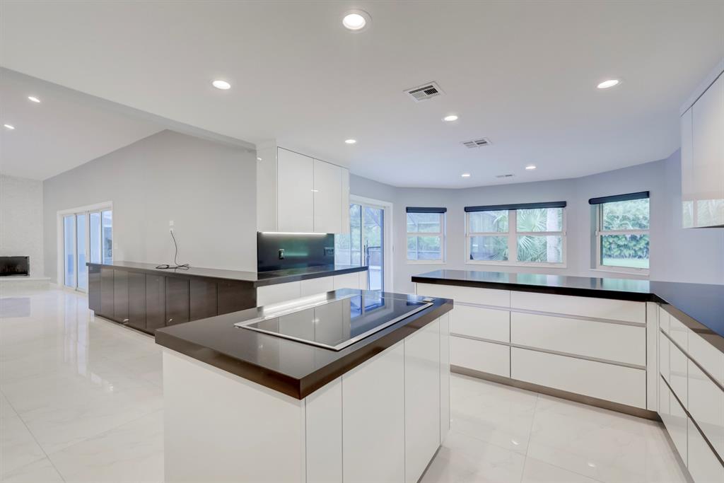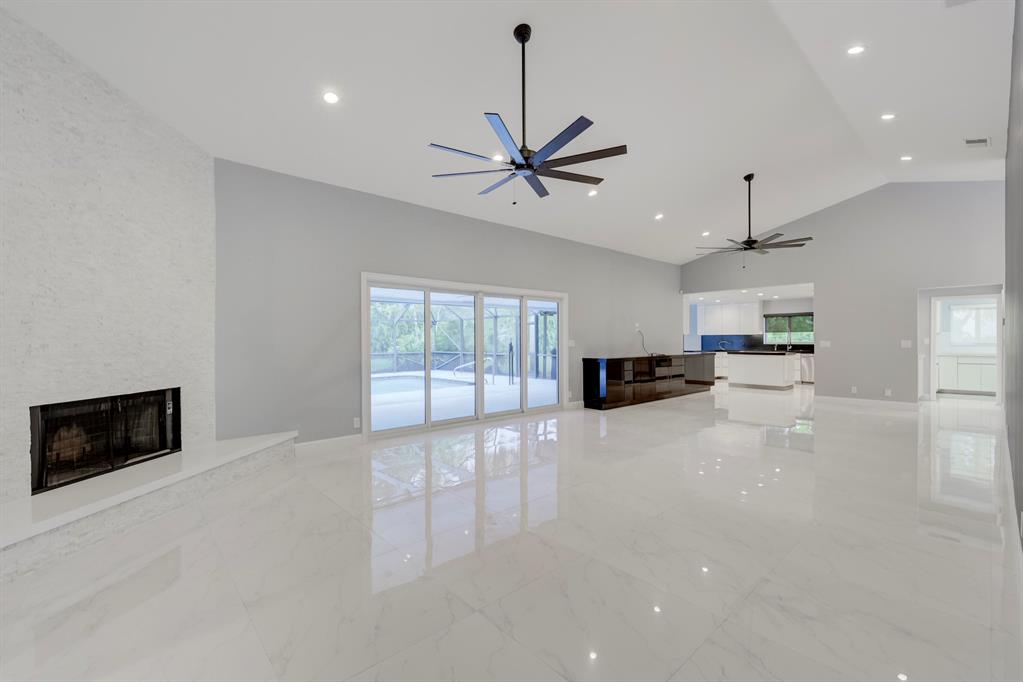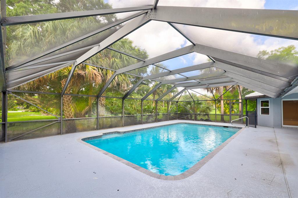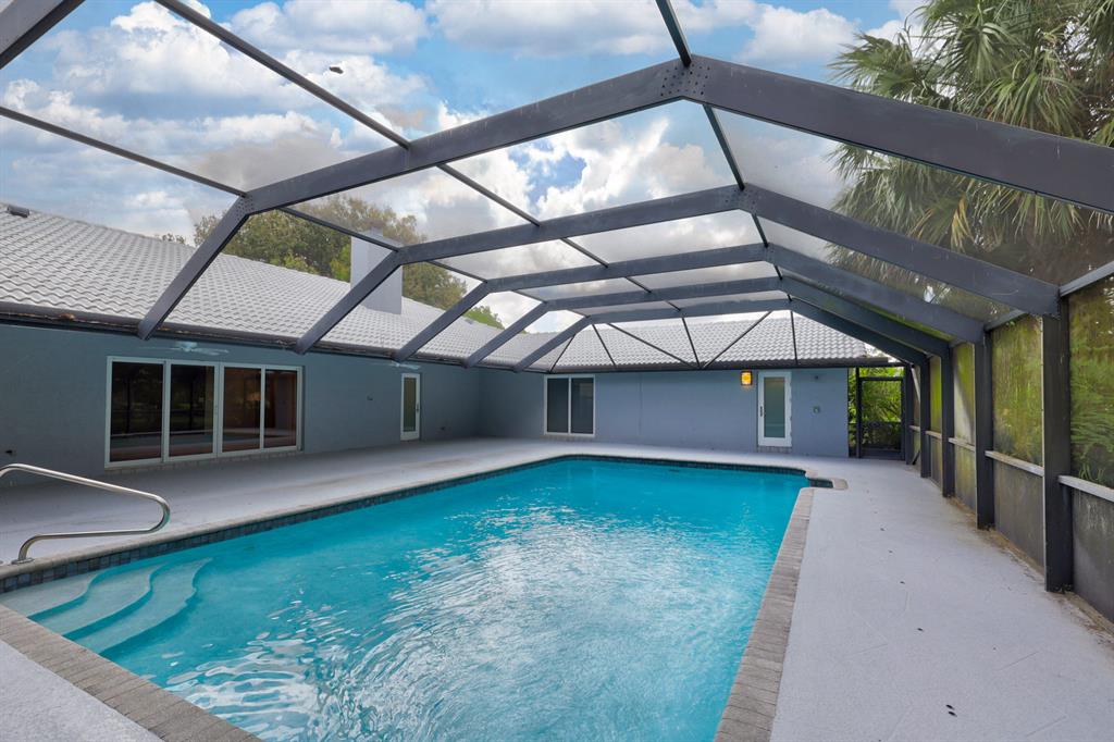 Contemporary Ranch on an acre lot in Cypress Head complete with impact glass windows! Updated and redone with 4 bedrooms, den and 3.1 baths. Cabana baths from the master suite and from the guest room. 3-car garage. Very open and spacious with an impressive backyard featuring a large fully screened salt water heated pool plus an outdoor shower! Mature trees complete the ambiance and true Florida feeling. Porcelain flooring in living areas. Beautiful wood burning fireplace. Newer kitchen with SS appliances, soft closing cabinety and quartz counters. Custom light fixtures, upgraded ceiling fans, recirculating heating systerm & fully outfitted closets, The clubhouse offers tennis and fitness.