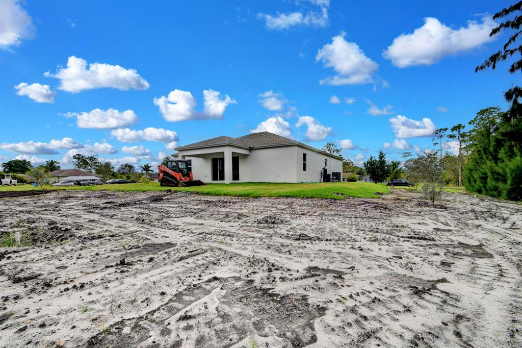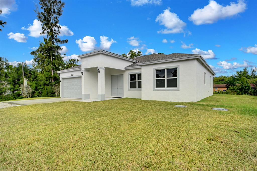 Be the 1st to move into this new construction home. 4 bedrooms. 2 baths, 2 car garage. Impact windows and door. Lot is already graded and ready for you to make your own. Located on 1.16 acres. Come experience all the comforts and safety features of a modern home built in accordance with the latest building code standards. The community has no HOA fees, and you have space for all your toys, to garden and or build a workshop. Ideal for a work from home set-up. Easy access to both the Turnpike and 195. Less than 30 minutes the beach and Palm Beach Intl Airport
