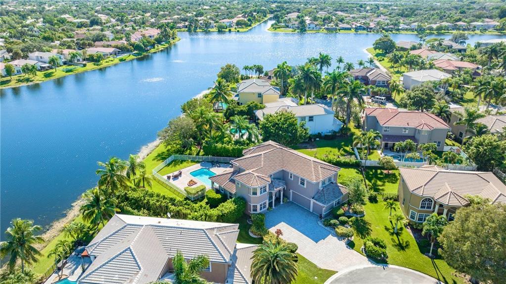 Grand Isle - the Premier Guard Gated Community in all of Wyndham Lakes. Highly desired school district. Phenomenal .38 acre lakefront, cul-de-sac lot. Immaculate and well maintained, rarely offered Martinique model w/6 Bdrms, 4.5 baths plus Office. 4052 AC sq ft w/ a 20'x20' rec room addition. Impressive curb appeal with side entry 3 car garage. Huge paver driveway. 27' covered patio with outdoor kitchen. Large pool & separate in-ground jacuzzi. Fenced yard. 3-zone A/C, one unit recently replaced. Accordion storm shutters. Newer S/S Kitchen appliances. Quality construction w/ concrete 2nd floor. 4 bdms w/walk-in closets-Huge master bdrm w/ lake view & sitting area. Large master closet. Many recent updates. One bdrm downstairs w/bath. 12 ceiling fans, 20' ceilings. Largest house in GI.