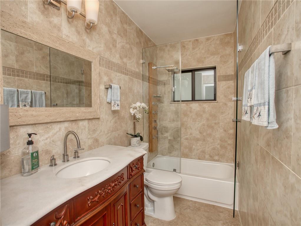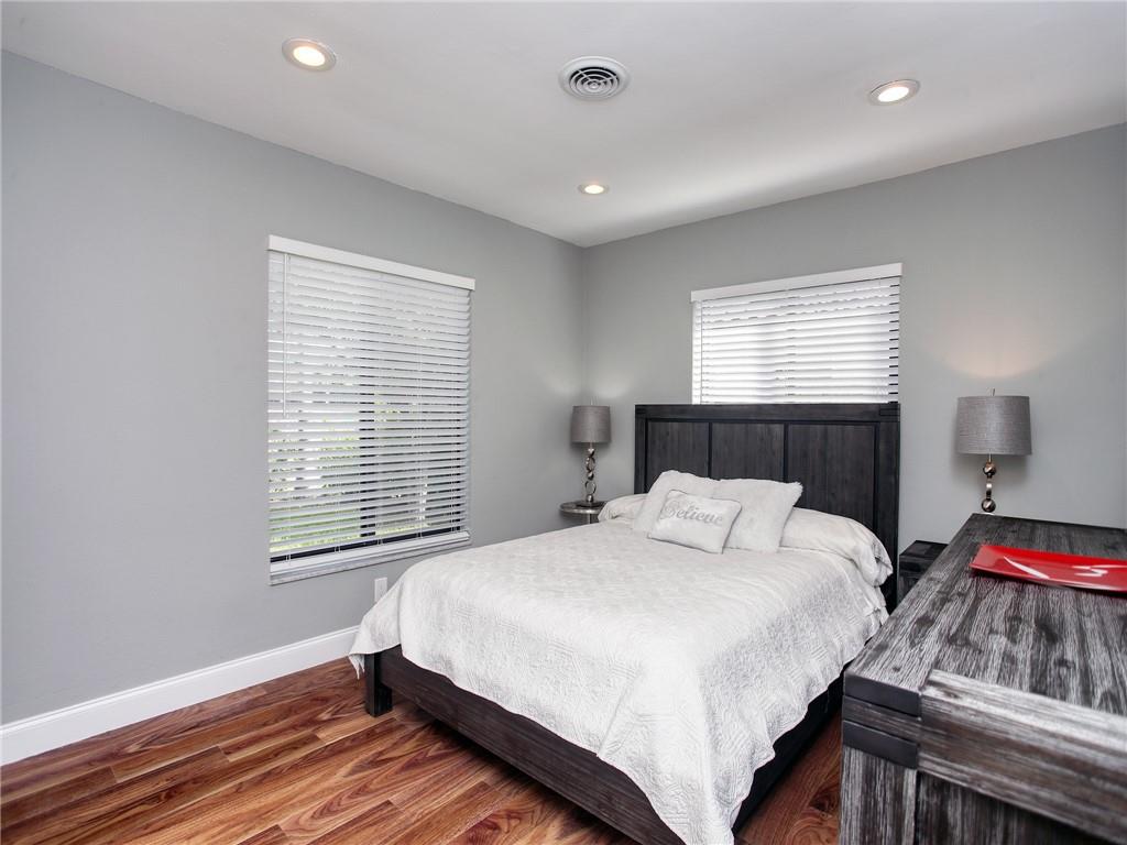 Beautifully remodeled 3/3 Single Family Home. A contemporary design thru-out w/36x24 tiled floors in main living areas & laminate in all bedrooms. Quartz counter tops, hardwood cabinets & SS appliances in kitchen. Granite topped vanities w/hardwood cabinets in all bathrooms. Chrome light fixtures & all new impact windows & doors. Updated electrical panel & pvc pipes replace original cast iron pipes. Double master bedrooms when garage was converted to living space. Large laundry/storage room & all appliances less than 2 yrs old including hot water heater. Main roof & A/C replace in 2014 & flat roof recently seal coated w/7 year warranty. Lushly landscaped yard w/irrigation system & private fenced back yard w/huge shed & plenty of room for a pool. Pine Crest Private School across the street.