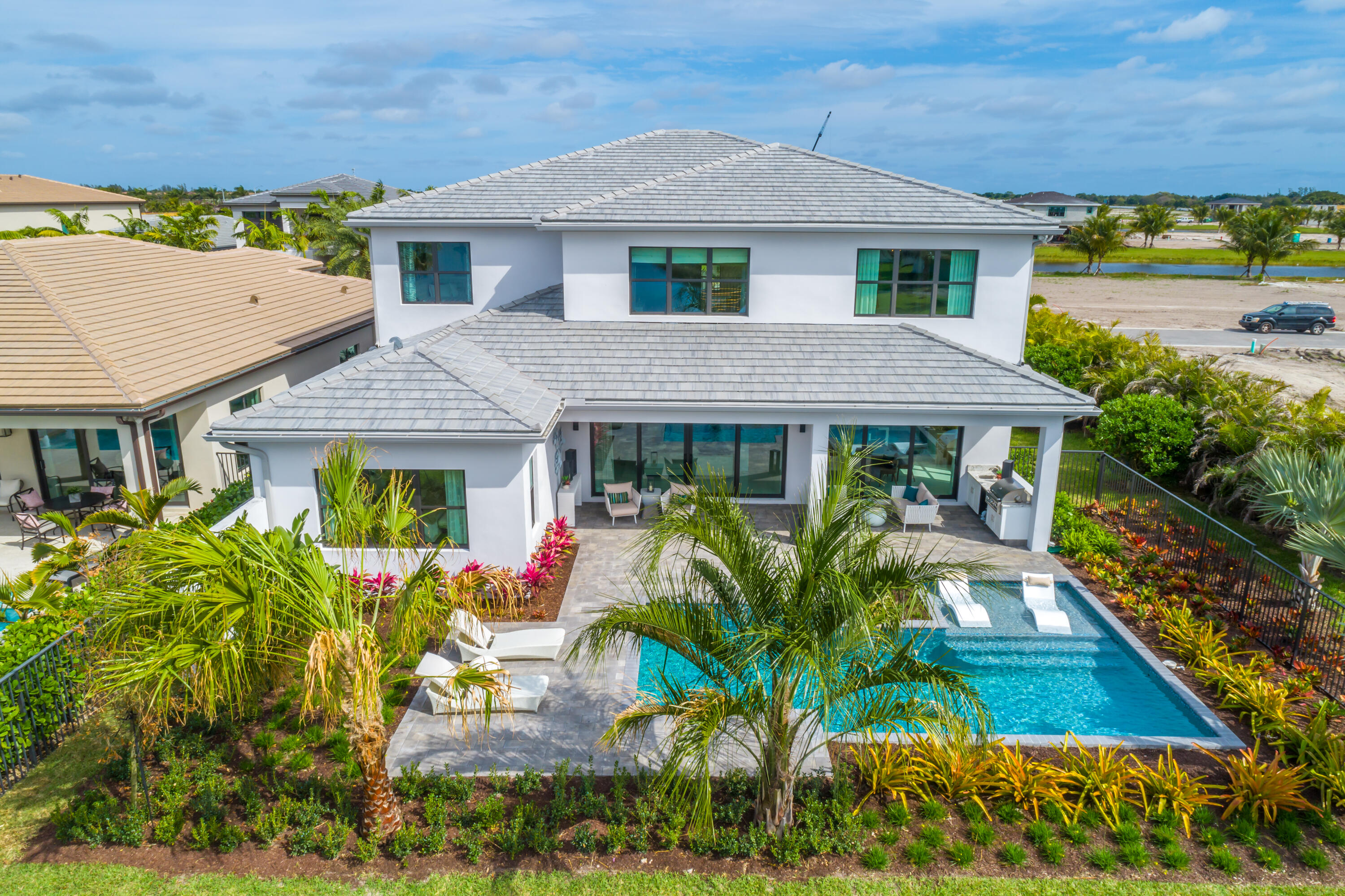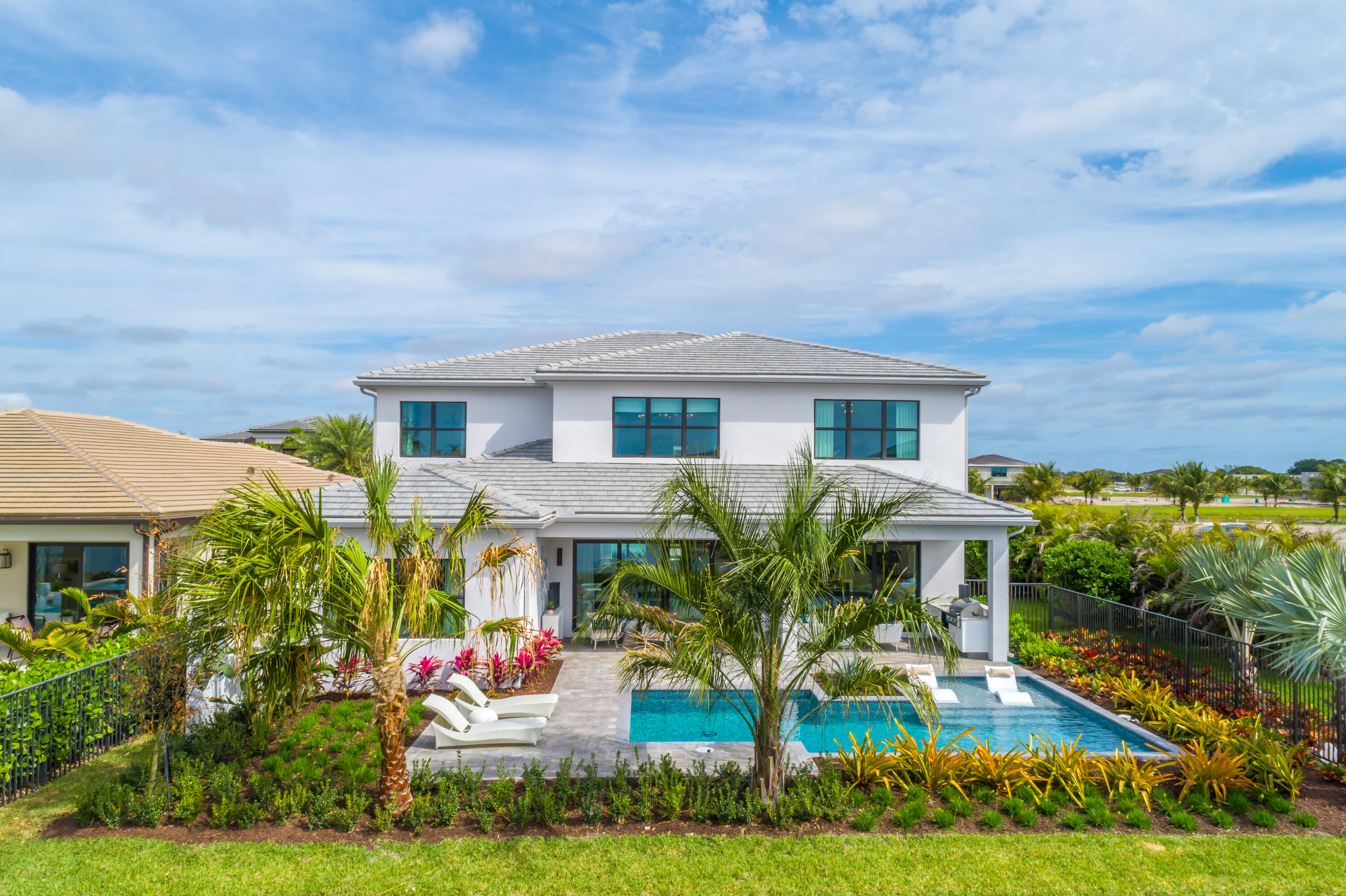 Exquisitely decorated FULLY FURNISHED Sumatra MODEL HOME in Boca Raton's most desirable new contemporary community, LOTUS. The highly sought after Sumatra Premium floor plan offers a first floor master bedroom, 4 additional bedrooms, a home office, media room, loft and stunning 2 story entryway with grand circular staircase. This home is truly turnkey and sure to impress even the most discerning buyer with the highly ungraded modern kitchen, beautiful millwork, modern light fixtures, fireplace, built in bar and so much more! Modern design collides with resort style amenities inclusive of a clubhouse, restaurant, fitness center, sports complex, resort pool, tennis courts and pickleball courts.