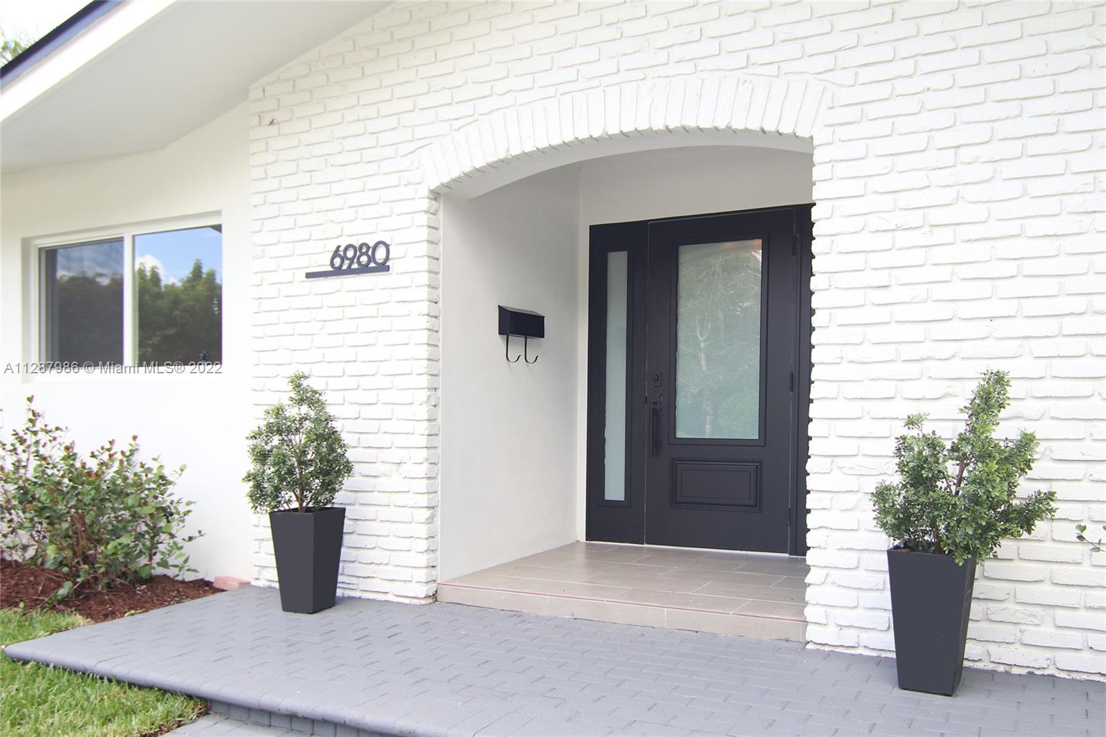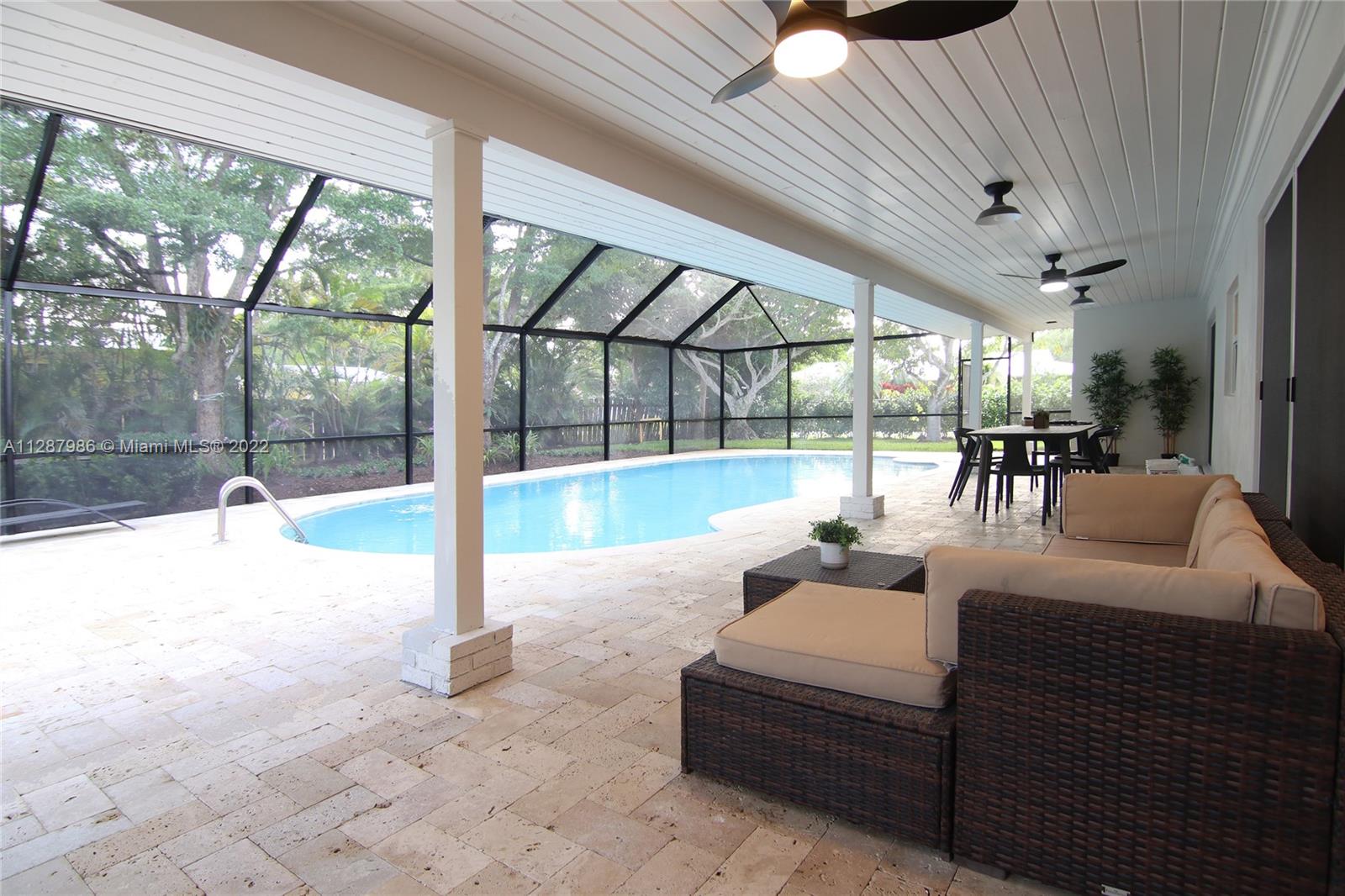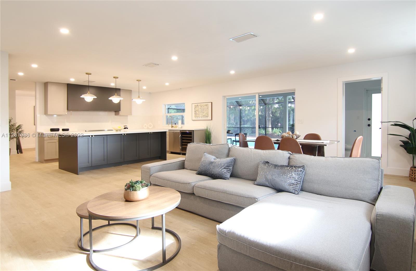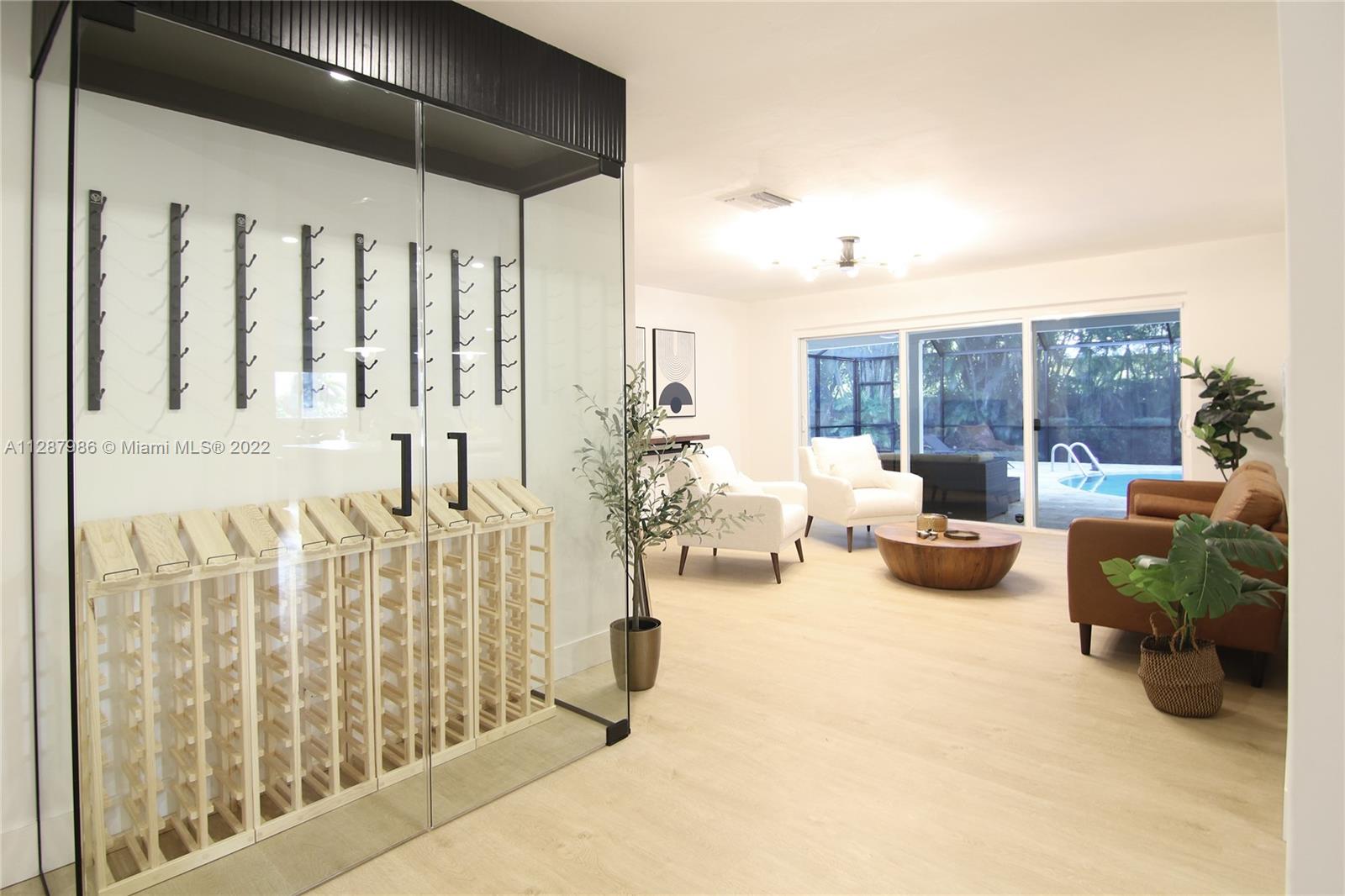 This beautifully remodeled Pinecrest home sits on a quiet corner of Palmetto Island. This home offers 5 bedrooms, 4 bathrooms, 2 separate living and dining areas and a bright laundry room. Two of the bedrooms are en-suite. This home is great for entertaining with spacious open areas and a custom wine cellar. The open layout is filled with natural light. The spacious kitchen features quartz countertops, SSl appliances and custom hood. All design elements have been carefully selected and customized to make this a unique home. The backyard features a large covered terrace, remodeled pool and deck, and a new outdoor kitchen. Enjoy the peace of mind of living in a fully remodeled home with a new roof, new impact windows, new ACs, new water heaters and updated plumbing. Designed by Porta Negra.