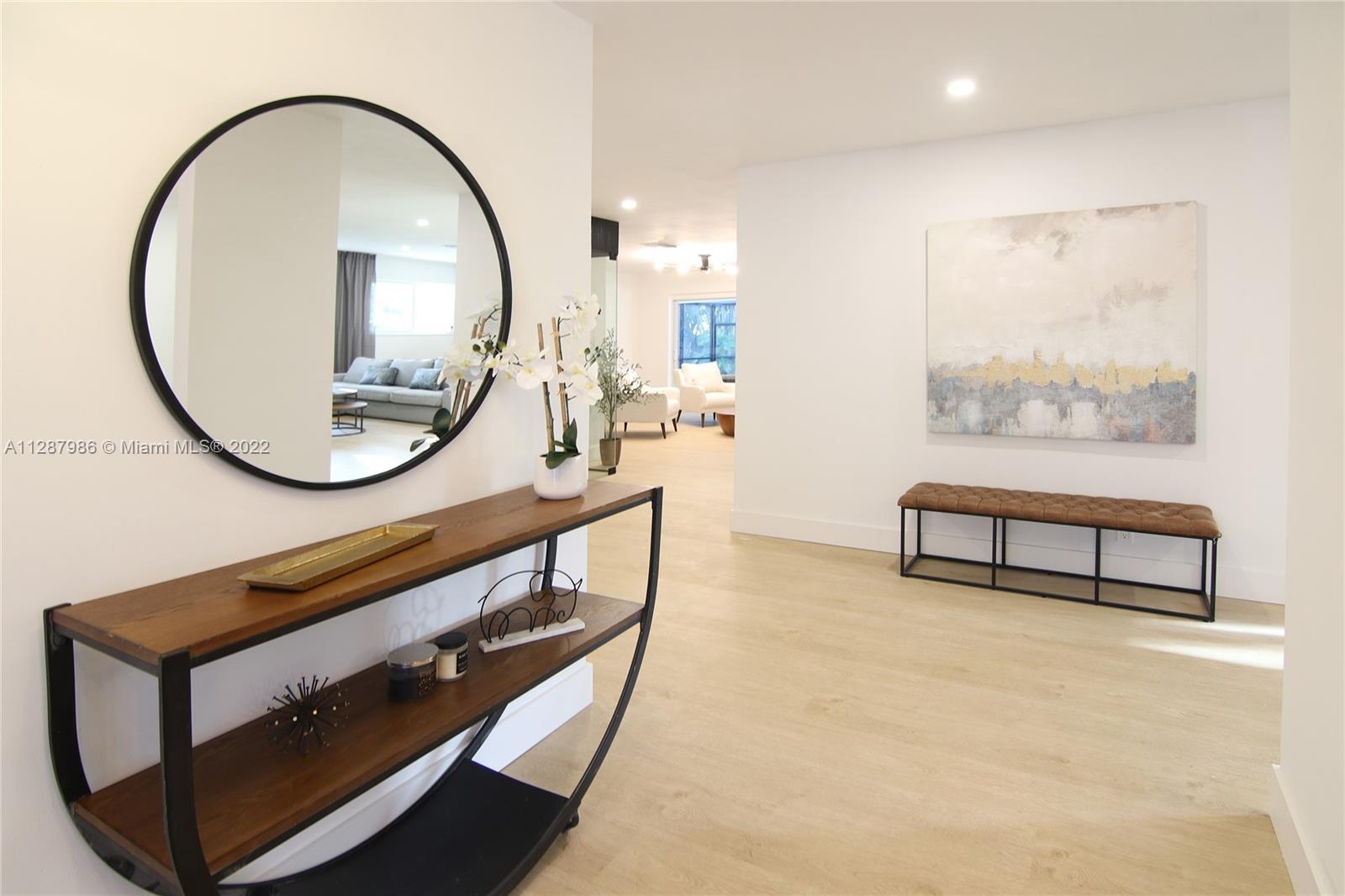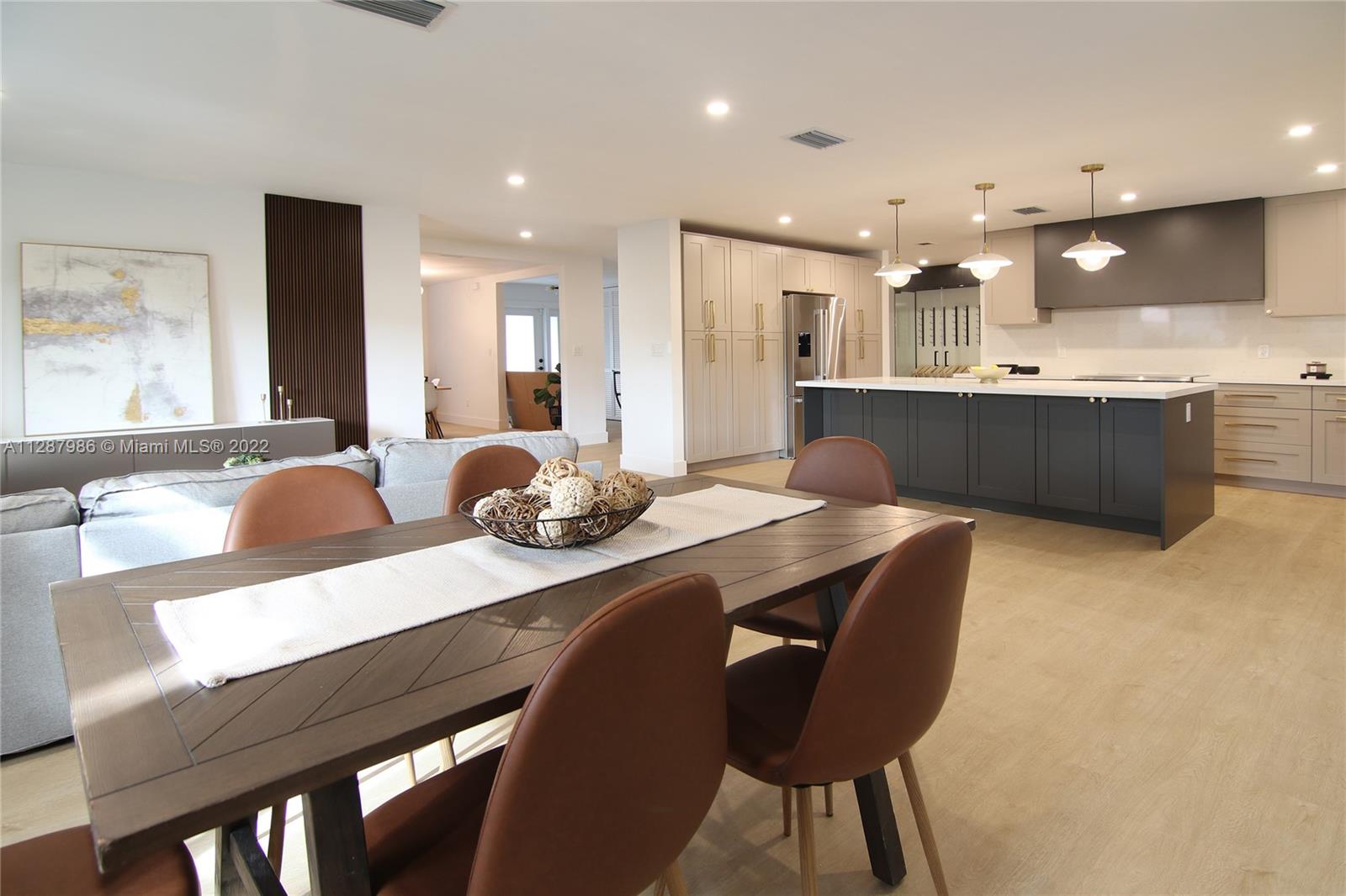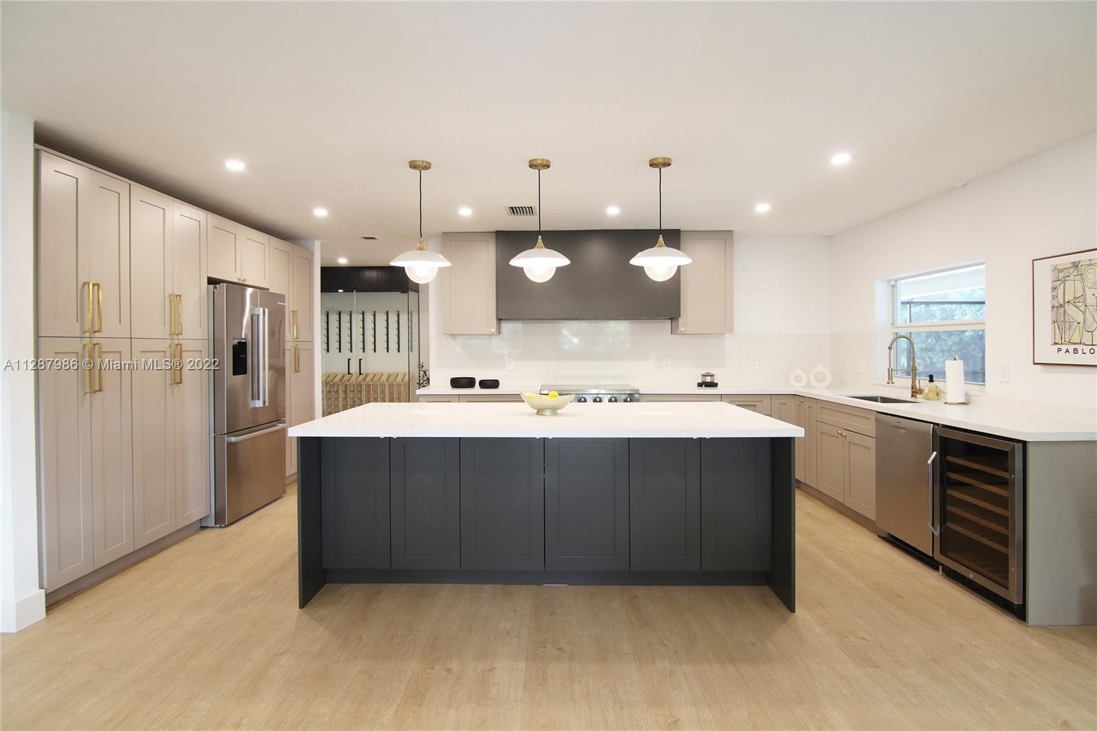 This beautifully remodeled Pinecrest home sits on a quiet corner of Palmetto Island. This home offers 5 bedrooms, 4 bathrooms, 2 separate living and dining areas and a bright laundry room. Two of the bedrooms are en-suite. This home is great for entertaining with spacious open areas and a custom wine cellar. The open layout is filled with natural light. The spacious kitchen features quartz countertops, SSl appliances and custom hood. All design elements have been carefully selected and customized to make this a unique home. The backyard features a large covered terrace, remodeled pool and deck, and a new outdoor kitchen. Enjoy the peace of mind of living in a fully remodeled home with a new roof, new impact windows, new ACs, new water heaters and updated plumbing. Designed by Porta Negra.