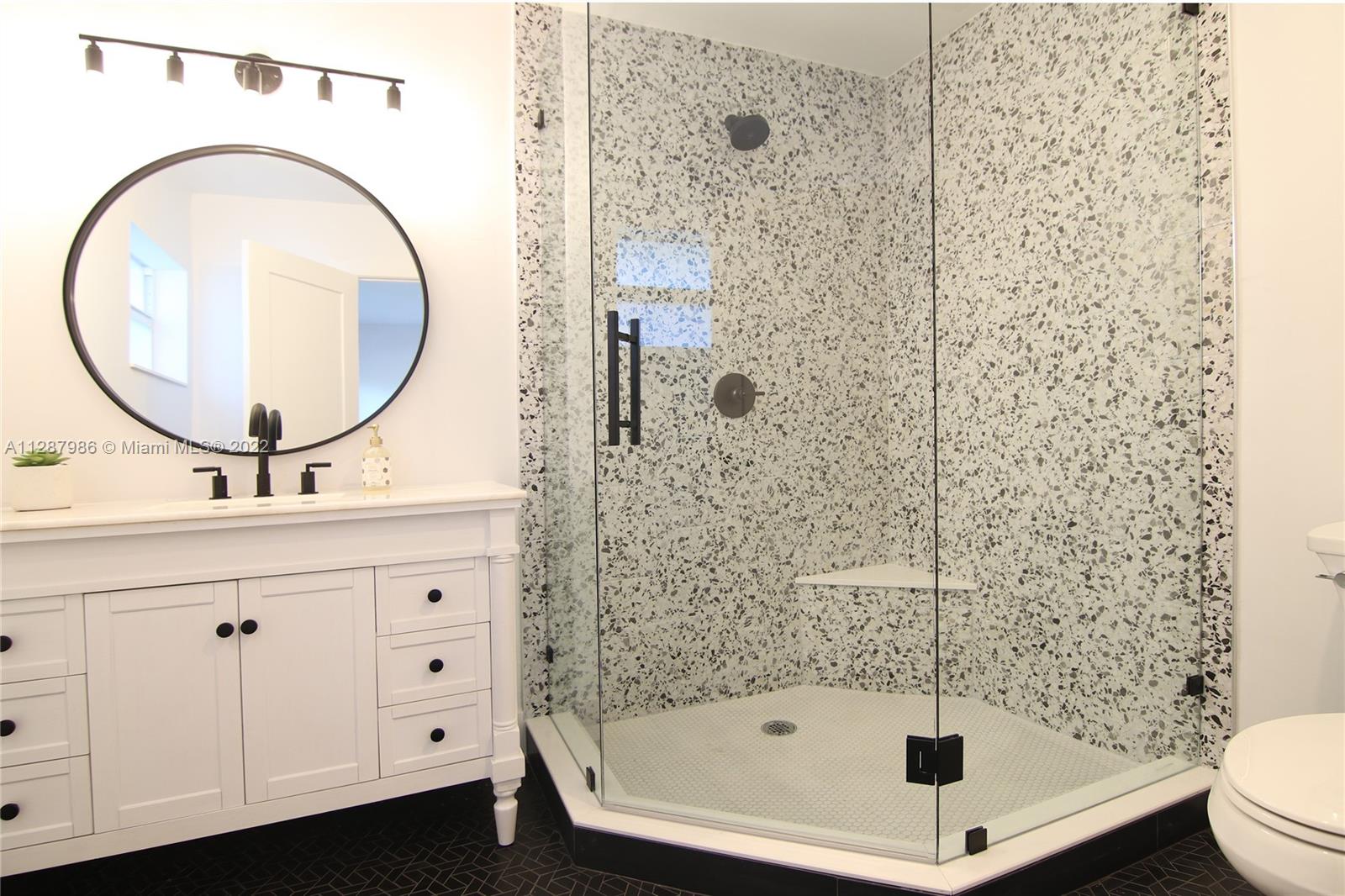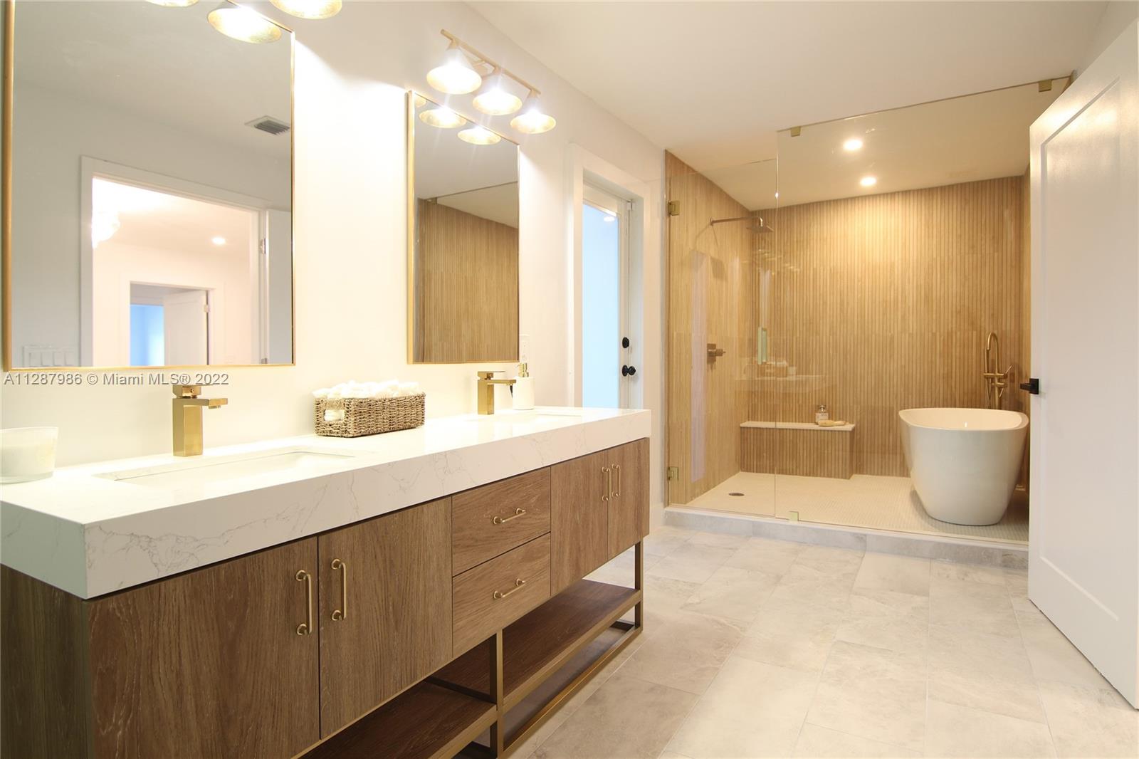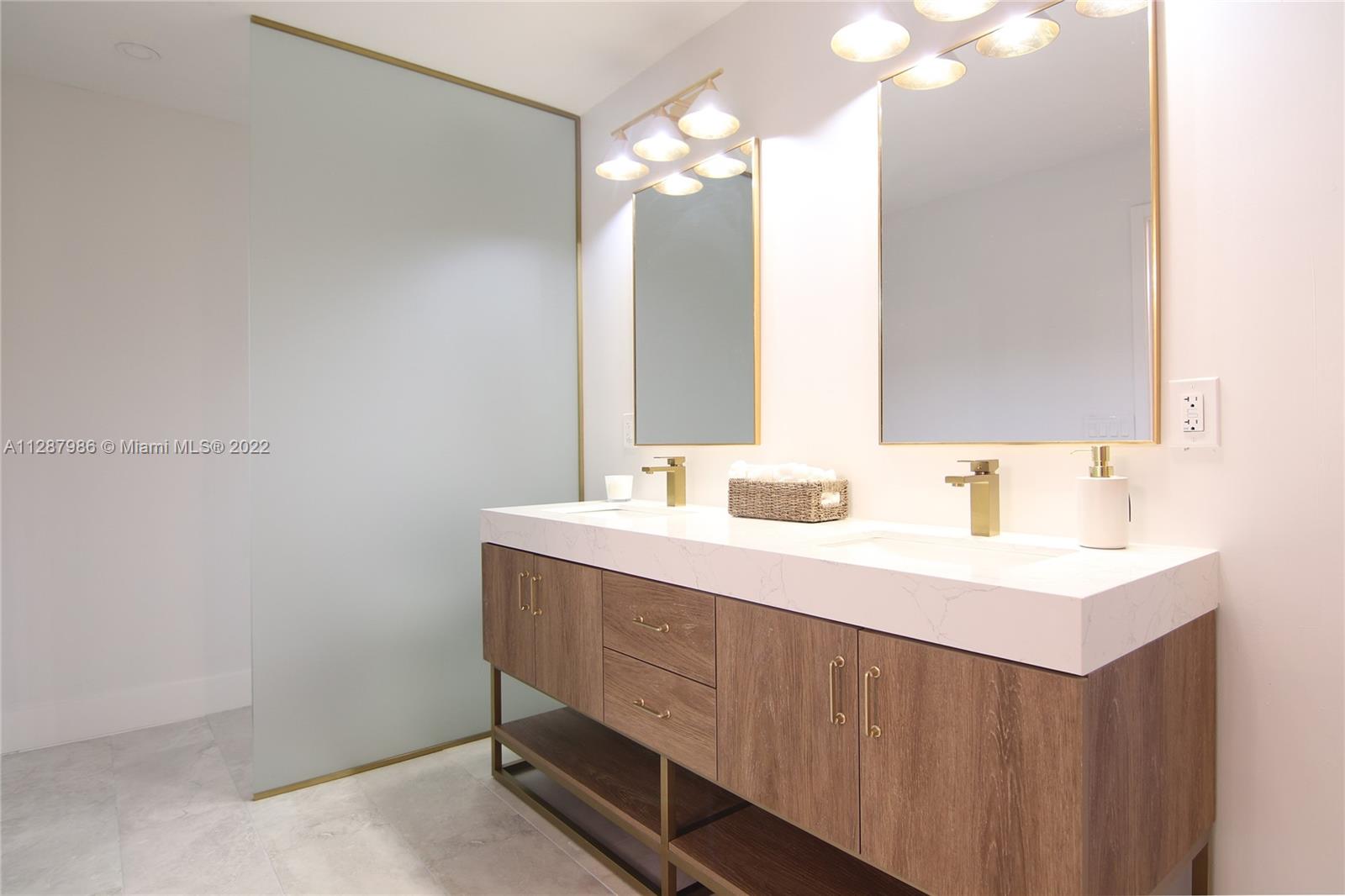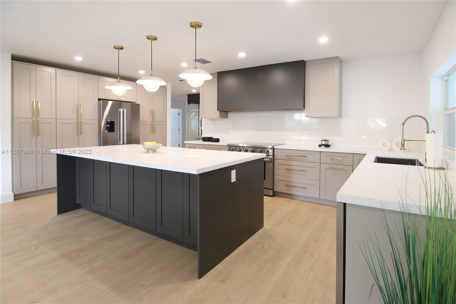 This beautifully remodeled Pinecrest home sits on a quiet corner of Palmetto Island. This home offers 5 bedrooms, 4 bathrooms, 2 separate living and dining areas and a bright laundry room. Two of the bedrooms are en-suite. This home is great for entertaining with spacious open areas and a custom wine cellar. The open layout is filled with natural light. The spacious kitchen features quartz countertops, SSl appliances and custom hood. All design elements have been carefully selected and customized to make this a unique home. The backyard features a large covered terrace, remodeled pool and deck, and a new outdoor kitchen. Enjoy the peace of mind of living in a fully remodeled home with a new roof, new impact windows, new ACs, new water heaters and updated plumbing. Designed by Porta Negra.
