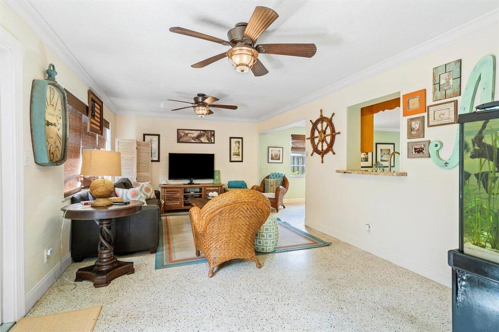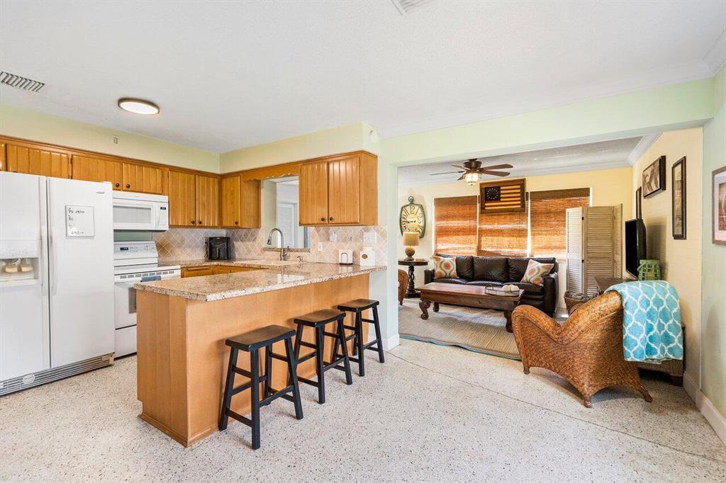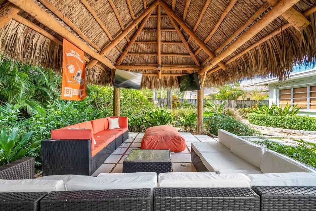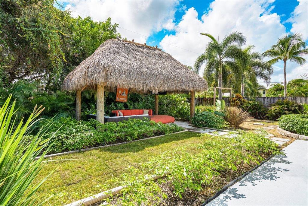Professionally landscaped two bedroom bungalow on a gorgeous street in Palm Beach Farms! Beautifully renovated bathrooms, large open kitchen with wood cabinets, granite countertops and tumbled stone backsplash. Features include: crown molding, tall baseboards, shiplap, terrazzo floors and a large Florida room. Interior laundry room. All A-rated schools including Addison Mizner Elementary. Wait until you see the oversized, authentic tiki in the lush backyard that is wired for the big screen. Room for a pool. Southern exposure out back with plenty of shady spots to relax. Bike ride to the beach and downtown in 15 minutes! Hillsboro El Rio and Pine Breeze Parks both within walking distance.