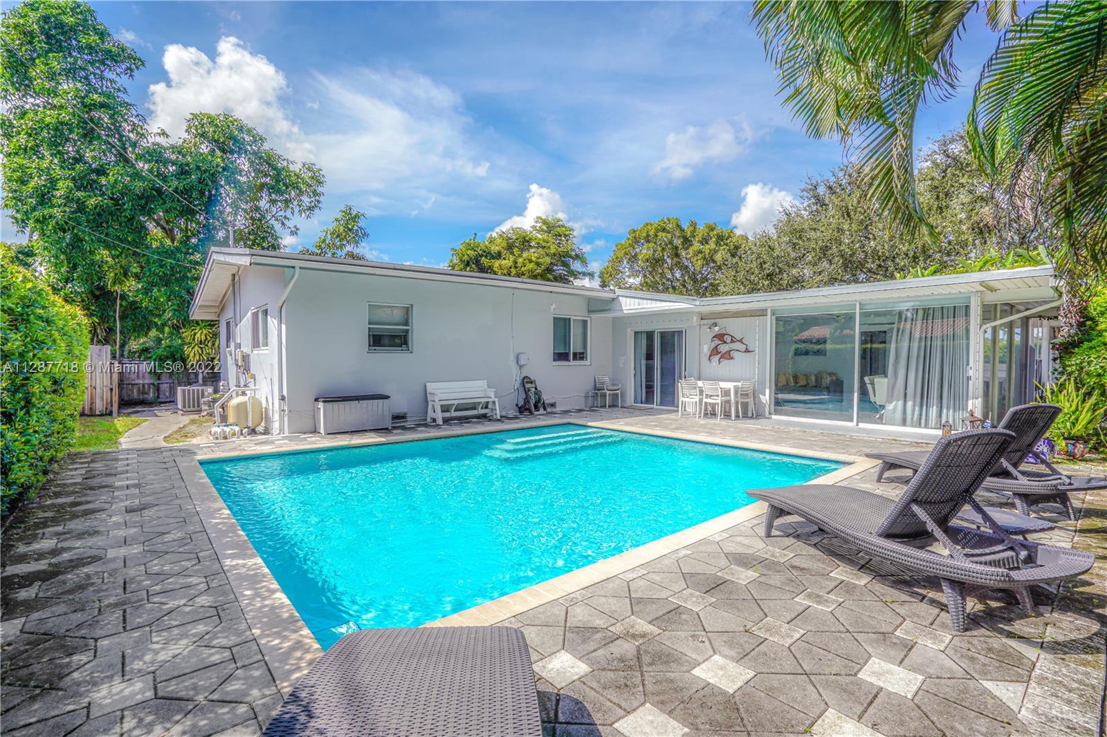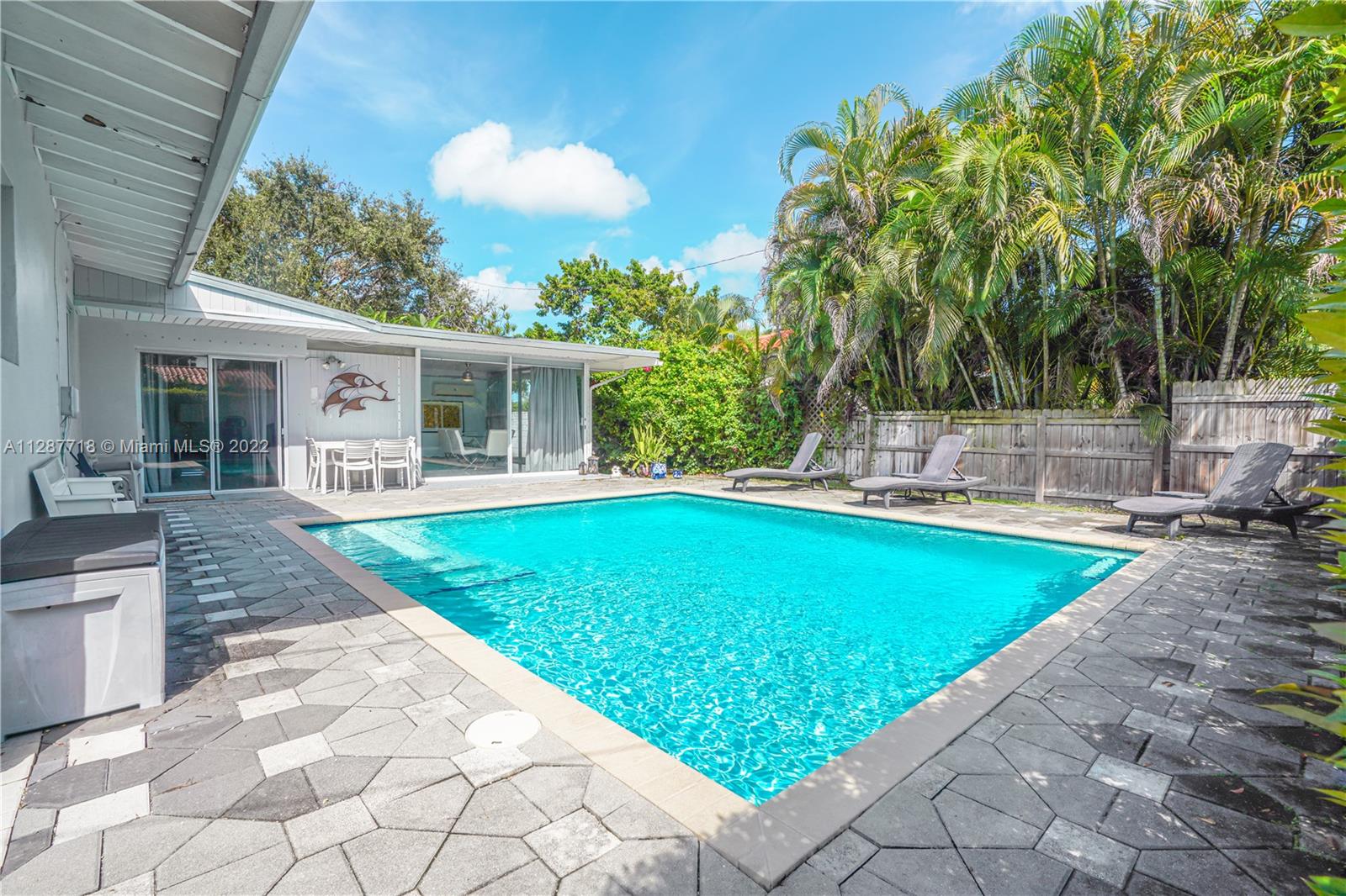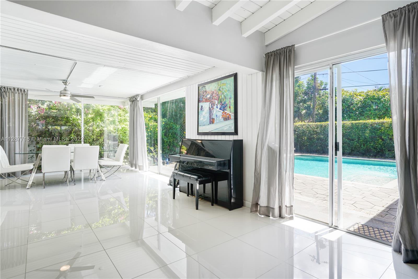 One of the most beautiful MIMO Homes in Miami Shores, Built by Robert Karl Frese as his personal residence, the home boasts a large open floor plan and has been completely remodeled. All windows are either impact or have fabric shutter protection. The roof is roughly ten years old. Come see this ultimate entertaining home with a large Open Great Room with Glass Tiles and Terrazzo, Newer kitchen w/ Granite and Stainless, and a beautiful pool, New Fence. Home has a great floor plan with three bedrooms and two baths on one end of the house and a second master with bathroom on the other end of the house, Large Walk Closets in both Master bedrooms. Lush private fenced in backyard with back entrance. Ample parking on your driveway. Perfect for entertaining. Easy to show!
