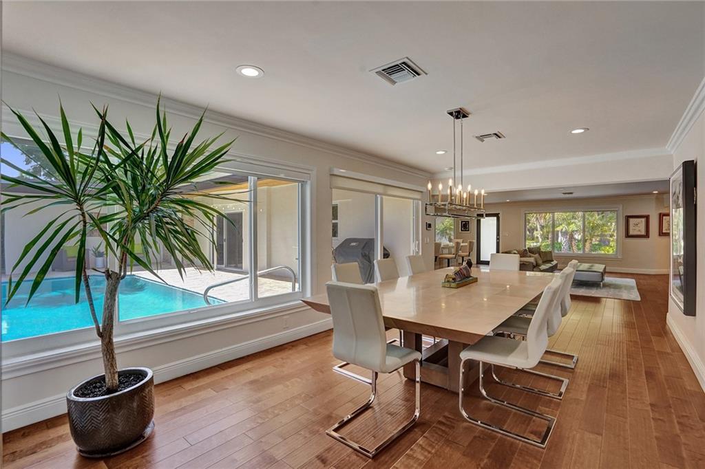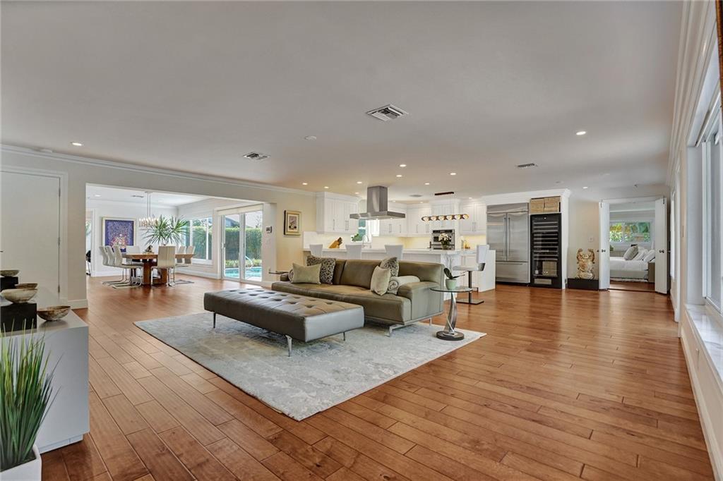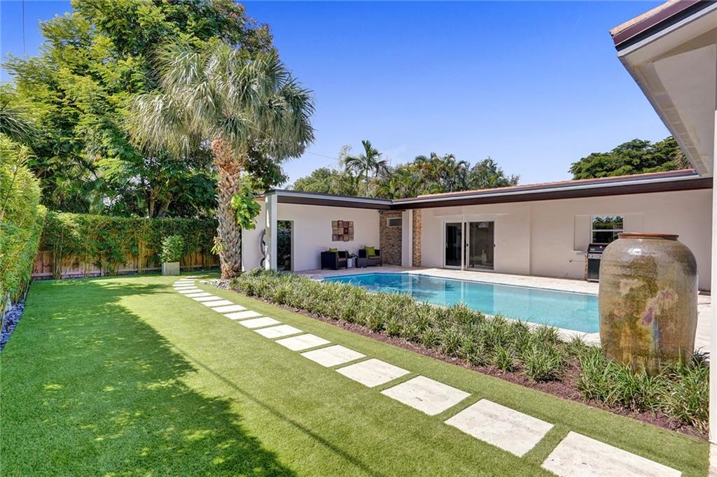 Enviably located in the heart of Coral Ridge Country Club & situated on one of the most desirable streets in the neighborhood. This stunning home ticks all the boxes. Stylish & totally updated residence was recently expanded to over 3,000 sq ft of luxurious living space and boasts 4 bedrooms plus an office/den/gym. Stunning gourmet kitchen with modern quartz counters, high-end appliances and huge breakfast counter perfect for gatherings. Luxurious and oversized primary bedroom suite with sitting area opening out to a totally private resort-like pool/garden area complete with Travertine marble pavers and low maintenance artificial turf. Impact glass, newer tile roof (2018), large indoor laundry room and much more. Minutes to Bayview Park, Lauderdale By-The-Sea beach and fine restaurants.