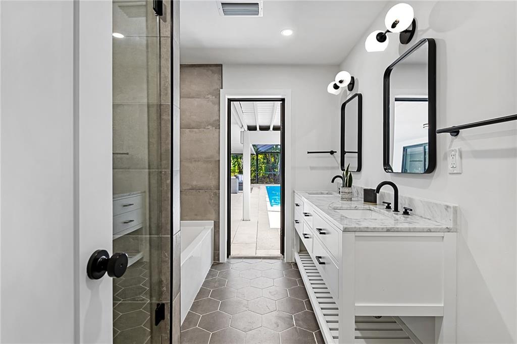 Totally upgraded, canal-front gem in Pinecrest! Completely enhanced (w/ permits!) in the last year. No-HOA paradise w/ shopping, dining + more in minutes. Larger lot w/ two new driveways for entertaining bliss. Large back yard w/ screened-in pool (new Diamond Brite + fresh pavers) + grassy oasis leading to a canal. Upgrades include new flat tile roof, impact doors/windows, electric panel + two HVAC systems w/ new ductwork. Inside, Italian porcelain tile + natural light! Living room, dining room + kitchen seamless flow w/ quartz counters, stainless steel appliances, waterfall edge island + wet bar. Multiple access points to the pool + laundry room w/ own entrance. Huge primary suite w/ his + her closets + ensuite w/ soaking tub, glass enclosed shower + modern vanities. No corners cut here!