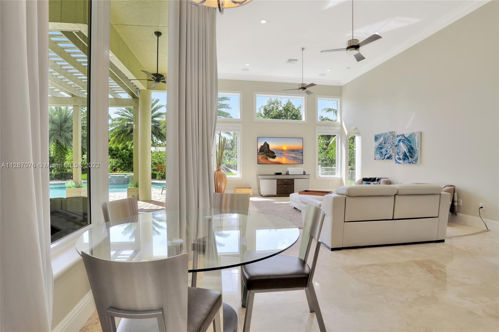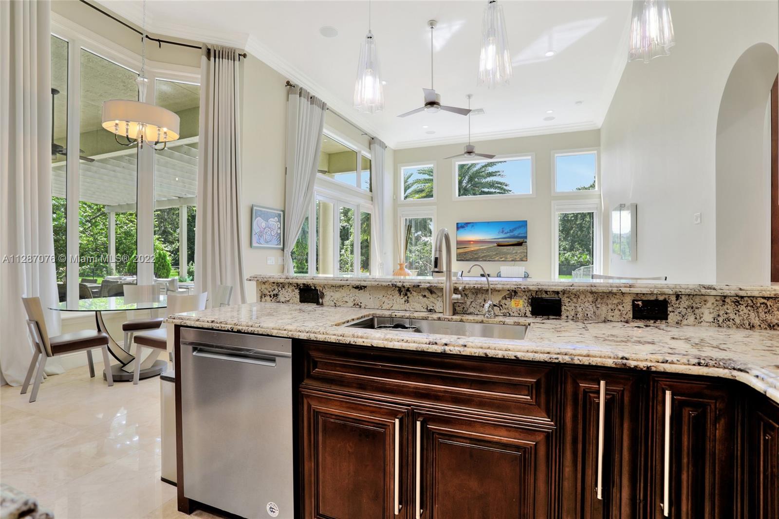 Stunning 2013-built single story 5 Bed / 4.5 Bath, 3-car extra deep garage with just under 40,000 sq ft of land in Plantation Acres. 14’ ceilings, marble floors in living areas, wood floors in bedrooms + den, large impact custom windows allowing lots of natural light, 3 HVAC zones + resort backyard fully fenced in with pergola, covered entertainment space + large heated pool with jacuzzi. Huge master suite with 2 walk-in closets, 2-sink bathrm + jacuzzi. Open floor plan with oversized gourmet kitchen with Thermador Refrig, gas range + marble center island, family room, den, formal dining room + huge living room with wet bar. Many upgrades like new water heater, new HVAC unit + new pool heater. No HOA fee and no restrictions. 2 miles from Sawgrass Mills Mall + all shopping + restaurants.