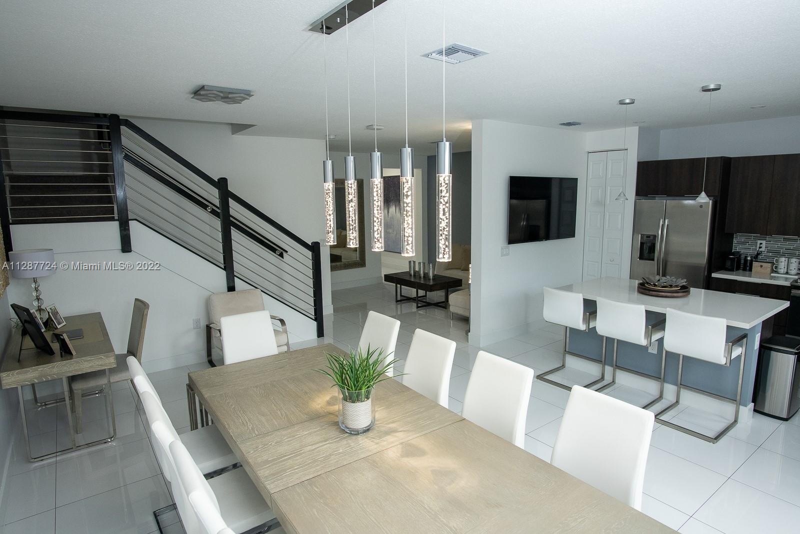 Amazing Townhouse, modern and luxurious. It has 4 bedrooms, 3 bathrooms, a 2-car garage and a large patio with no houses behind. Located in Summit of At Central Park a great gated community. The rooms are spacious and surround a modern kitchen with a large island, stainless steel appliances, quartz countertops, white porcelain flooring downstairs and carpet upstairs. Modern wood staircase with steel rod inserts that takes you to a 2nd floor split plan with 4 bedrooms and 3 full baths with glass enclosed tubs. The master bedroom has a large closet and a luxurious en-suite master bath. The entire smart home has LED lighting and connects to the largest House club in the city Houses Park Central Grand Bay Club.