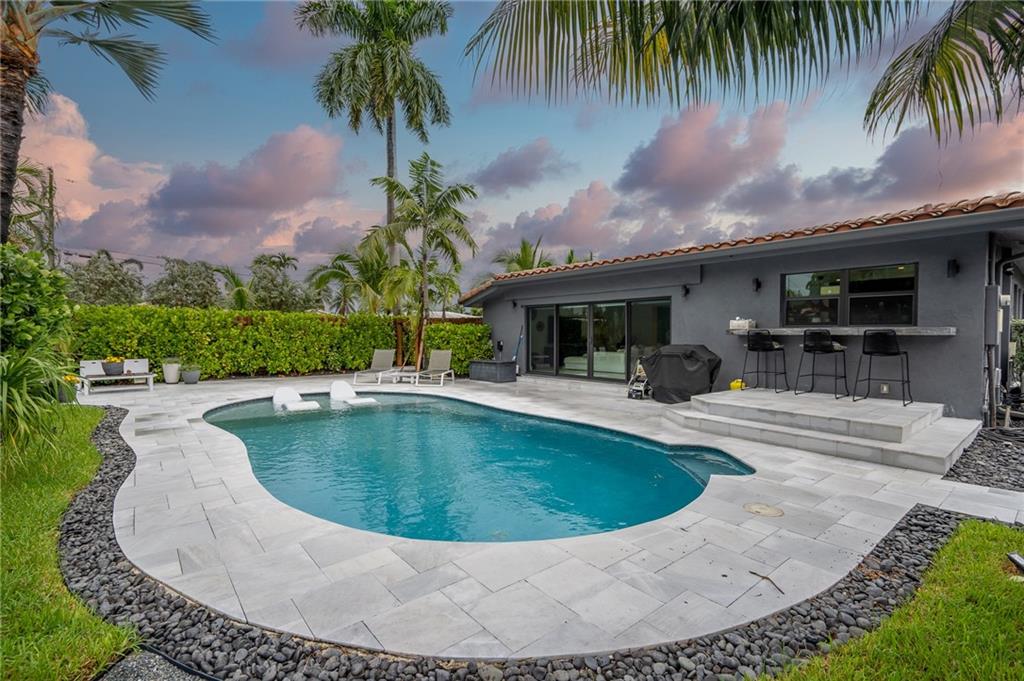 A Florida dream waiting to be discovered! This beautifully renovated refuge delivers a transcendent feast for the senses with a stunning array of light-filled entertaining spaces & superb finishes. Nestled within the splendor of Poinsettia Heights, the home ushers in a one of a kind dreamscape w/ a functional floor plan designed for elevated living. Boasting foyer entry & a chef-worthy kitchen featuring Brazilian quartz counters & black SS appliances. For pampering, 3 comfortable bedrooms & 2.5 beautifully reimagined bathrooms with floating vanities set the stage while a bright & open patio overlooking the freeform west facing private pool invite you to enjoy supreme tranquility year-round. Completely renovated in 2018-2020. Roof new in 2016. (All info believed accurate but not warranted).