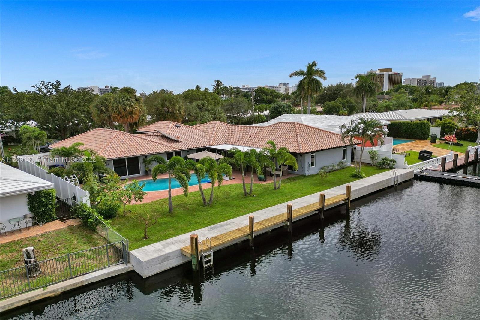 Welcome to THE LANDINGS of East Fort Lauderdale!! Showcasing an exceptional waterfront home sitting on 85 Ft of Ocean Access with utmost privacy(fully fenced) on a quiet cul-de-sac. This 4 Bed/2 Bath, TURN KEY SMART HOME has a new raised seawall, new dock, heated salt treated pool, all storm rated/impact windows and doors, and the inside is stunning! Both bathrooms upgraded with soaking tubs/rain showers(the master bathroom is gorgeous), solar water heater, new AC, sprinklers, recessed LED lighting, huge open kitchen with wine bar, all new appliances, and fully landscaped-Room to park trailers or a camper(10FT) behind the side gates. The master is enormous w/2 huge walk-in closets. Just imagine taking friends/family to the beach in the golf cart! Minutes away from Lauderdale by the Sea!
