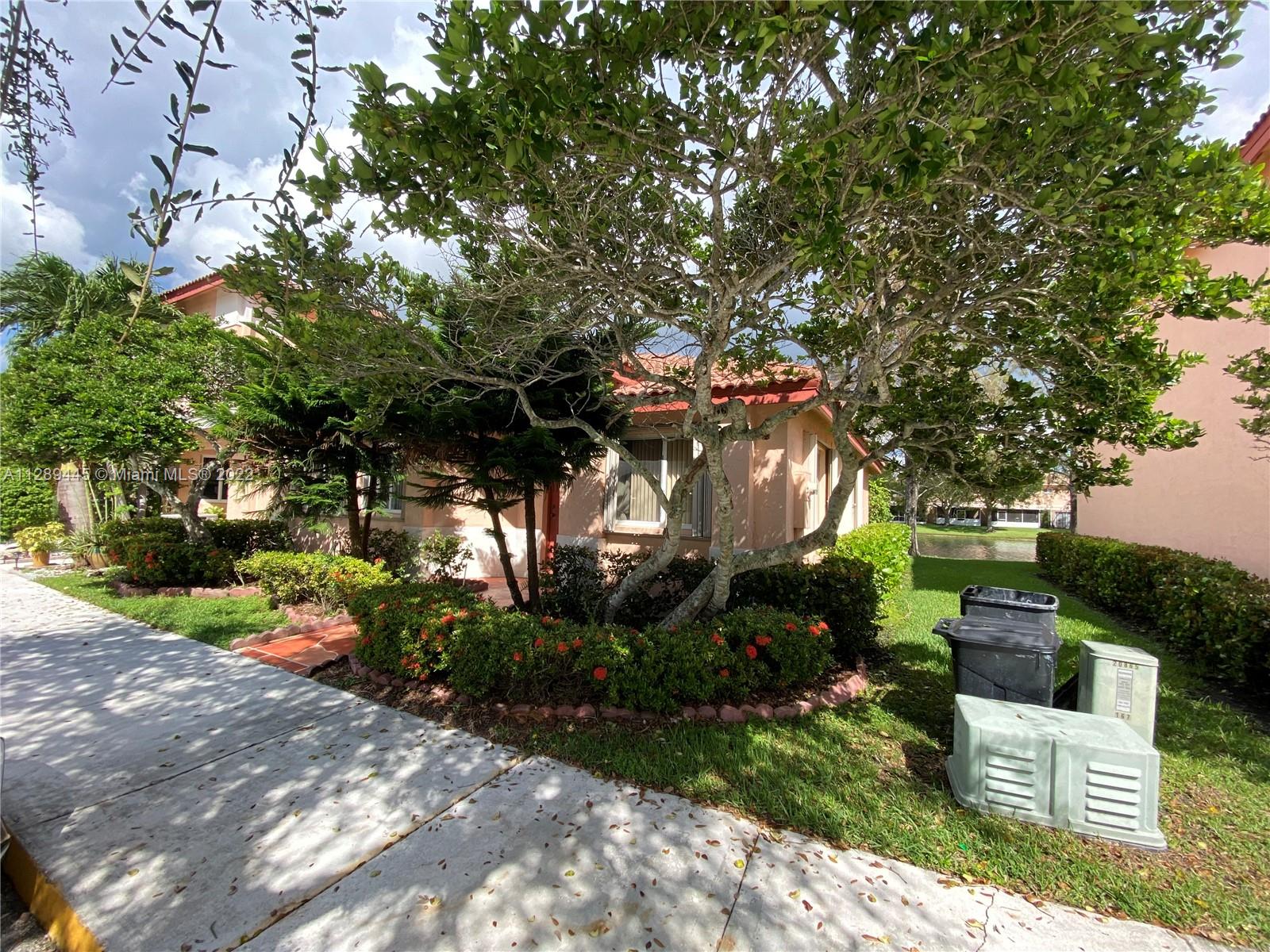 Excellent location! This spacious 3 bedroom, 2 bath corner unit townhome is located in the sought-after gated community of Malibu Bay! Features include a private screened-in patio with access to a lake, updated kitchen, accordion shutters throughout, lawn maintenance, clubhouse pool, tennis courts, 24-hour security, basketball courts, excellent schools, and more.