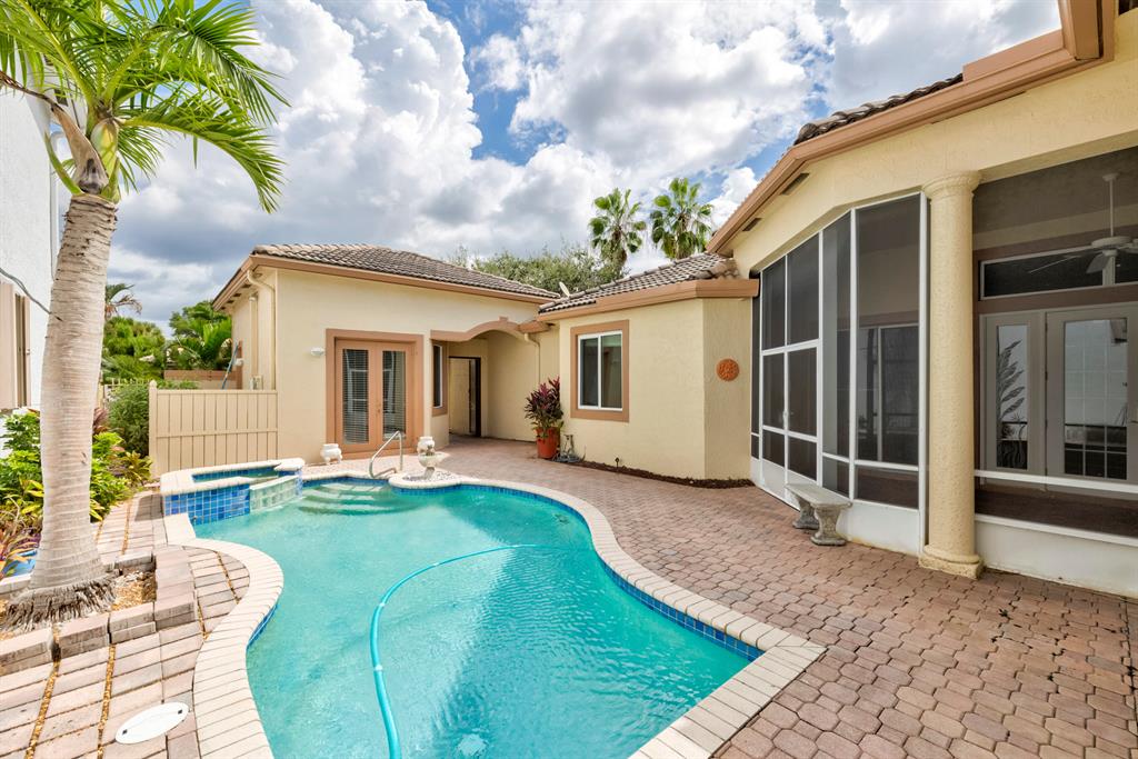 Welcome to this beautiful courtyard home in all-ages, gated Mizner Village of Heron Bay. Spacious split floor plan with 3 bedrooms, 2 bathrooms in the main house, with a 1 bedroom, 1 bathroom guest house all overlooking your private pool/jacuzzi oasis. Updated kitchen features granite countertops, wood cabinets, and stainless steel appliances. Large primary suite with 2 substantial closets w/ built-in shelving and spacious bathroom with separate shower and tub. High ceilings throughout. Hurricane impact windows and doors except 1 slider. 3 year old A/C and water heater. Plenty of storage inside and outside the home, including true 2-car garage. Zoned for A-rated Parkland schools! Heron Bay includes resort-style clubhouse and amenities with no membership. Minutes from Sawgrass Expressway.
