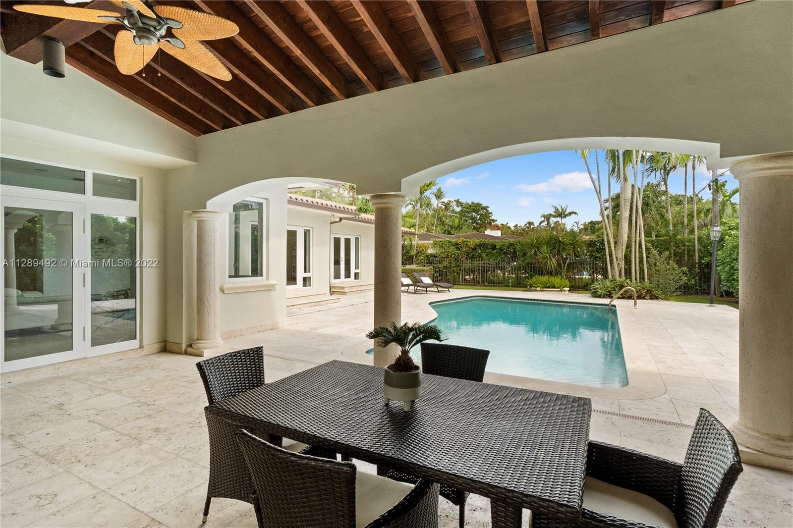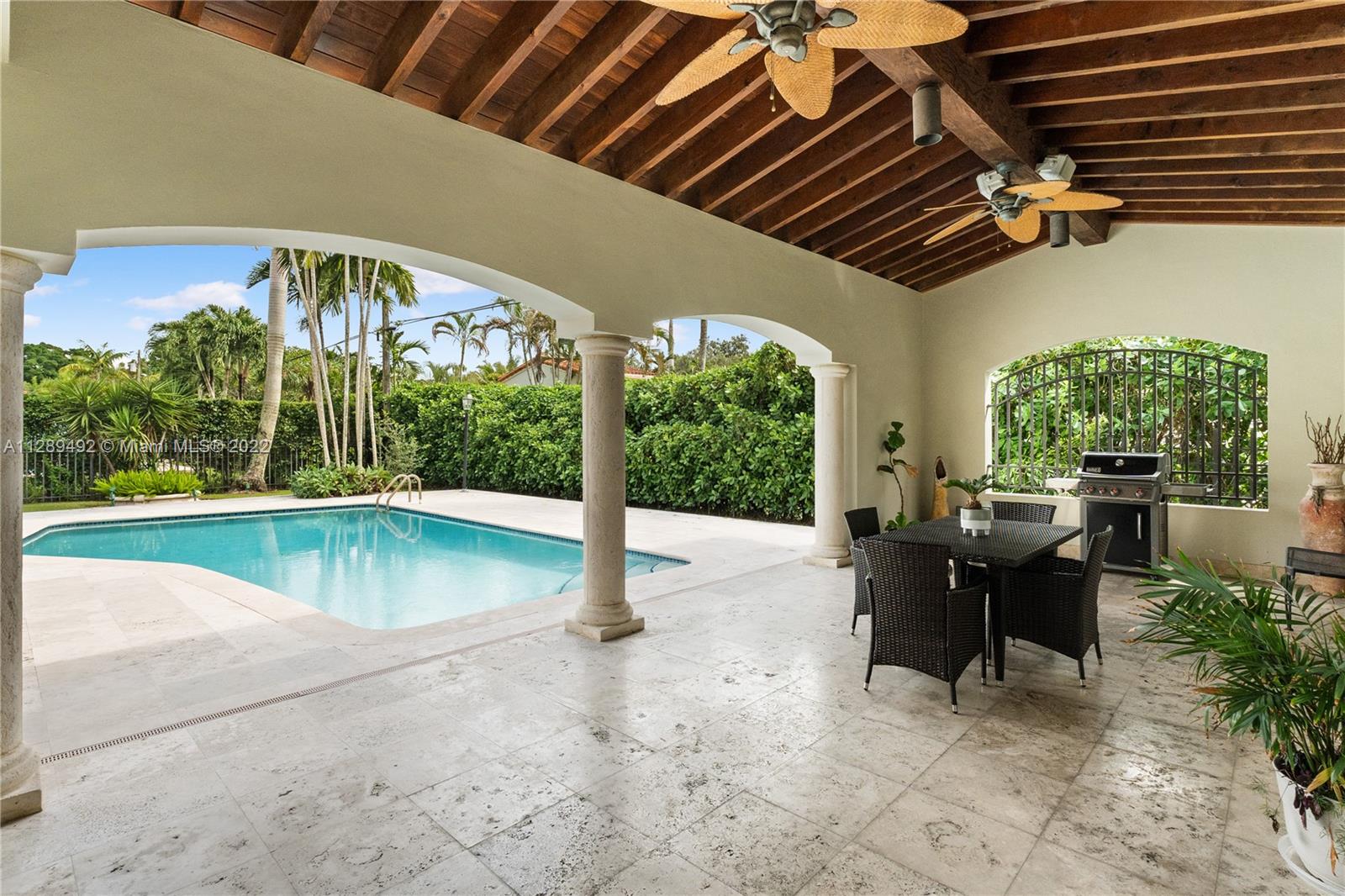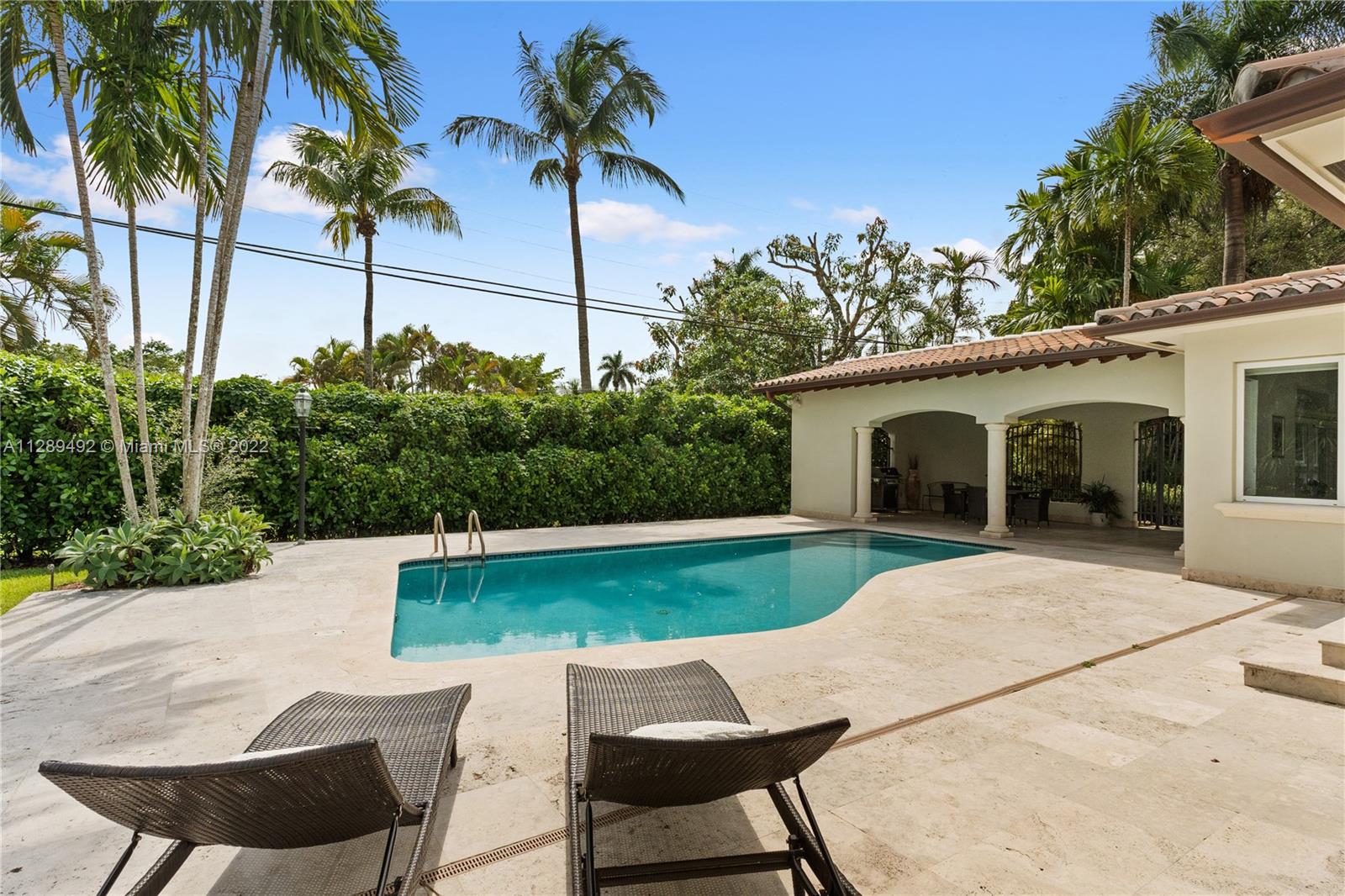 Impeccable home on a 16,500 square foot lot in the heart of Coral Gables on a calm and beautiful tree-lined street. This statement property is nestled between the Riviera Country Club and the Biltmore golf course, both within walking distance. The home has been updated and offers large and bright living spaces with plenty of natural light and enjoyable views to the outside. Home has a perfect floorplan that includes a spacious master and master bath, an elegant foyer, a proper formal dining area, formal living with a beautiful Coral Stone fireplace and an open kitchen to the family room. Beautiful grounds filled with mature trees and palms. Backyard is very private with an amazing pool and covered terrace that is perfect for entertaining. Easy to show call LA!