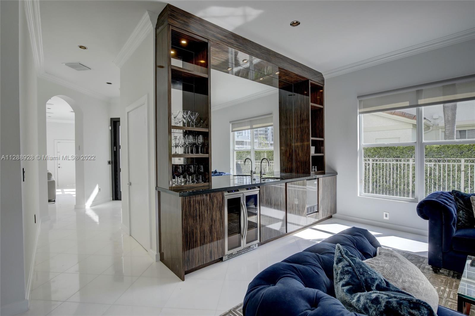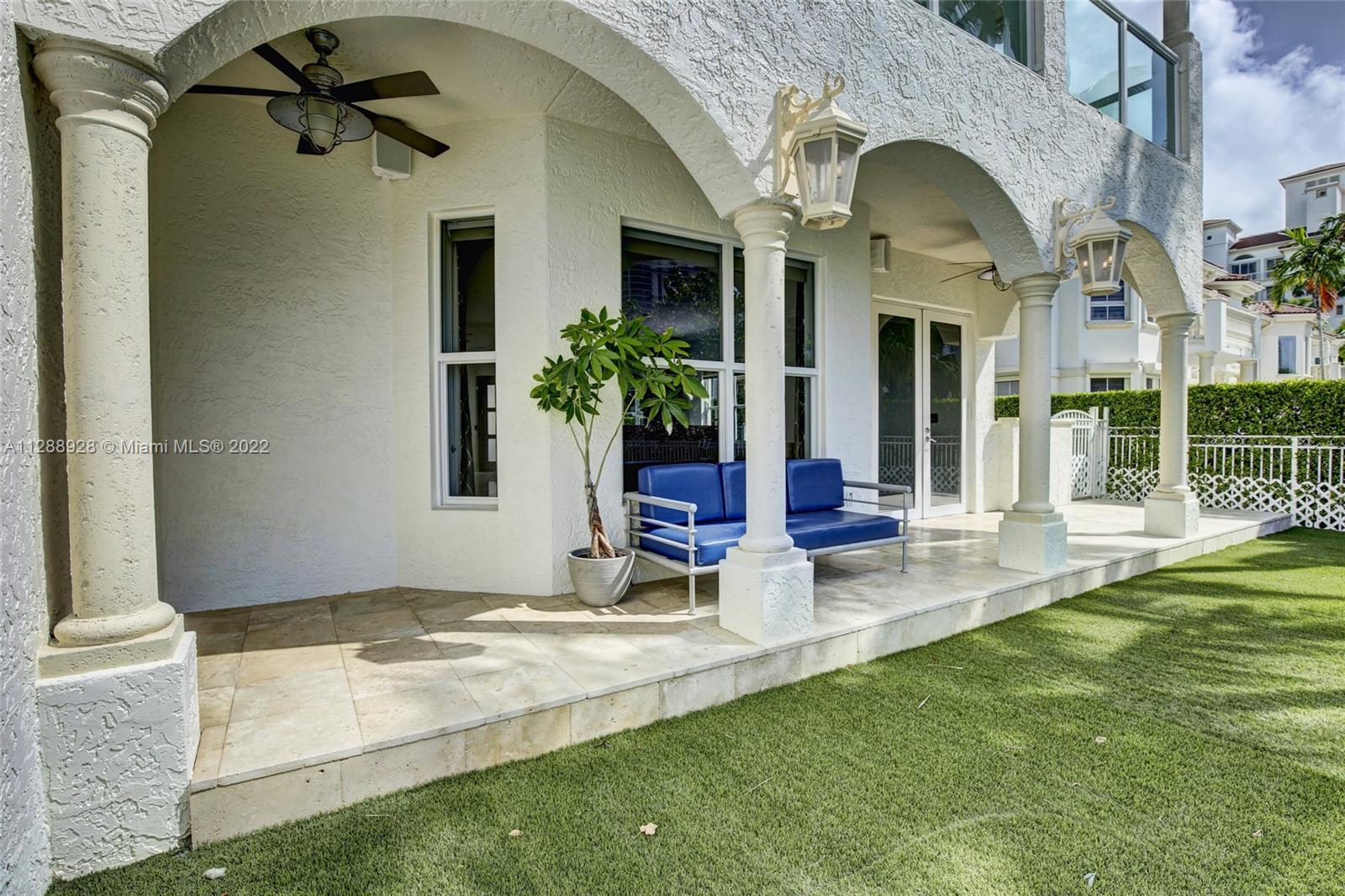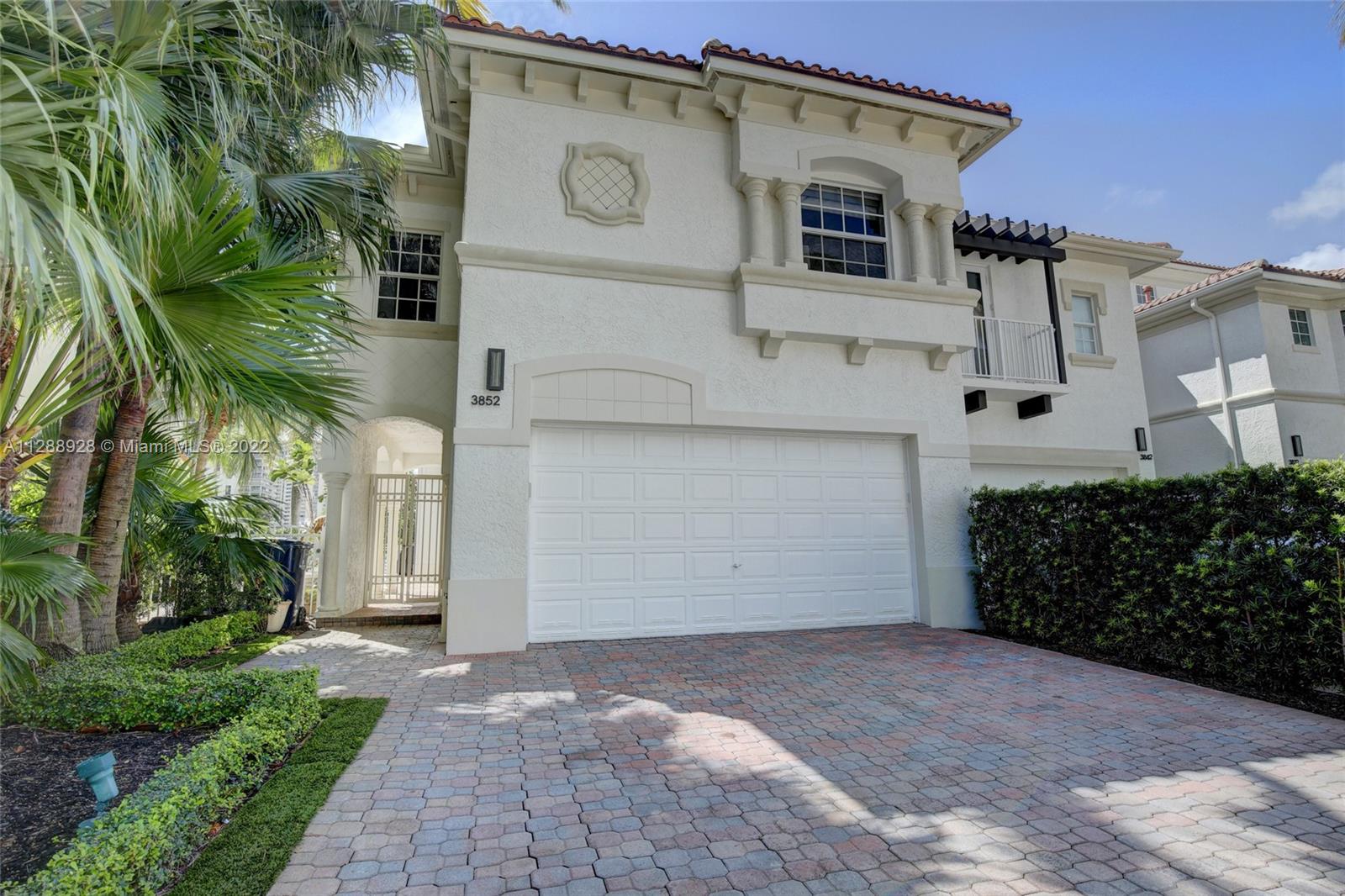 Unique property in Aventura. Travel behind the secure gates of Porto Vita to find this rare two-story luxury townhome with private dock that enables safe dockage for vessels up to 80'. Enter the home through a private courtyard to marble floors, a gorgeous staircase and a custom built area for entertaining. 3 bedrooms with ensuite bathrooms. Spacious his & hers walk-in closets in master suite as well as a balcony overlooking your private pool. Impact windows, two car garage and so much more. Porto Vita amenities match that of a 5-star resort including a pro tennis complex, basketball courts, fine dining, spa, residents pool and clubhouse. Live the all inclusive vacation lifestyle while maintaining the privacy of your own home right in Aventura.