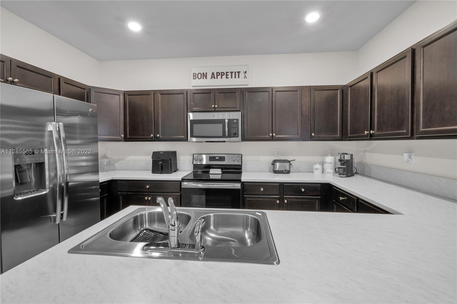 Beautiful 2 story townhouse located in luxurious Aquabella community! This townhome, perfect for a family, is located in a secured gated community with resort style amenities including two clubhouses, a fitness center, large pool and even a water park for kids to enjoy! Townhome has 3 bedrooms and 2.5 baths. Kitchen includes granite counter tops and stainless steel appliances. Backyard is paved and perfect for entertaining. Great location near shopping centers, shops, and parks!