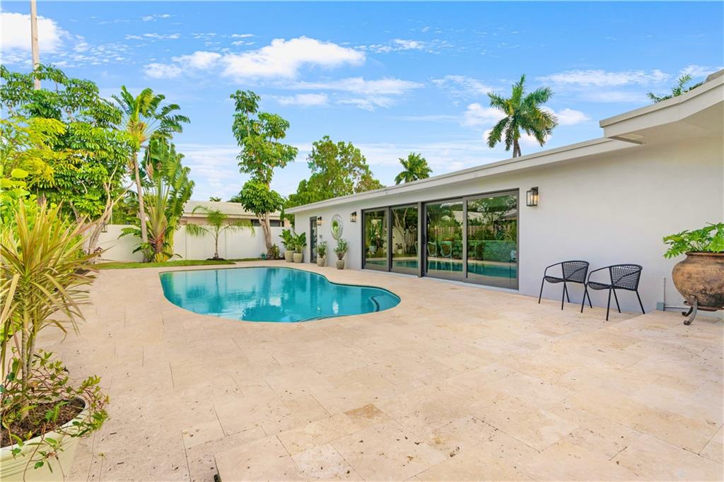 Entirely remodeled in 2022, this 3bd+ den/office and 2.5-bath single-family residence offers over 2400 sq. ft. of living space crafted for modern living; this professionally designed masterpiece harmoniously combines the indoors and outdoors. Features include a bright and open floor plan, a new gourmet kitchen, s/s appliances, designer bathrooms, a laundry room, a new roof, new windows, new electrical, a new heated pool, a new fence, professional landscaping, and more. Located minutes from the beach and a short distance from the best East Fort Lauderdale offers, this home is a MUST-SEE!