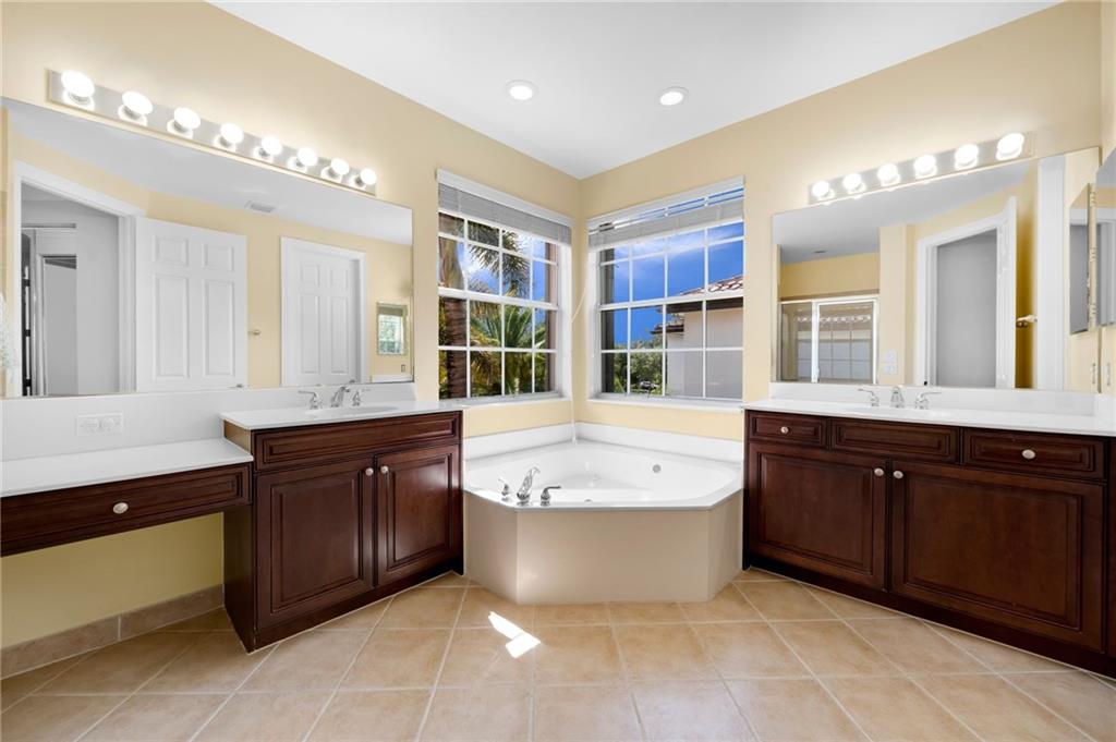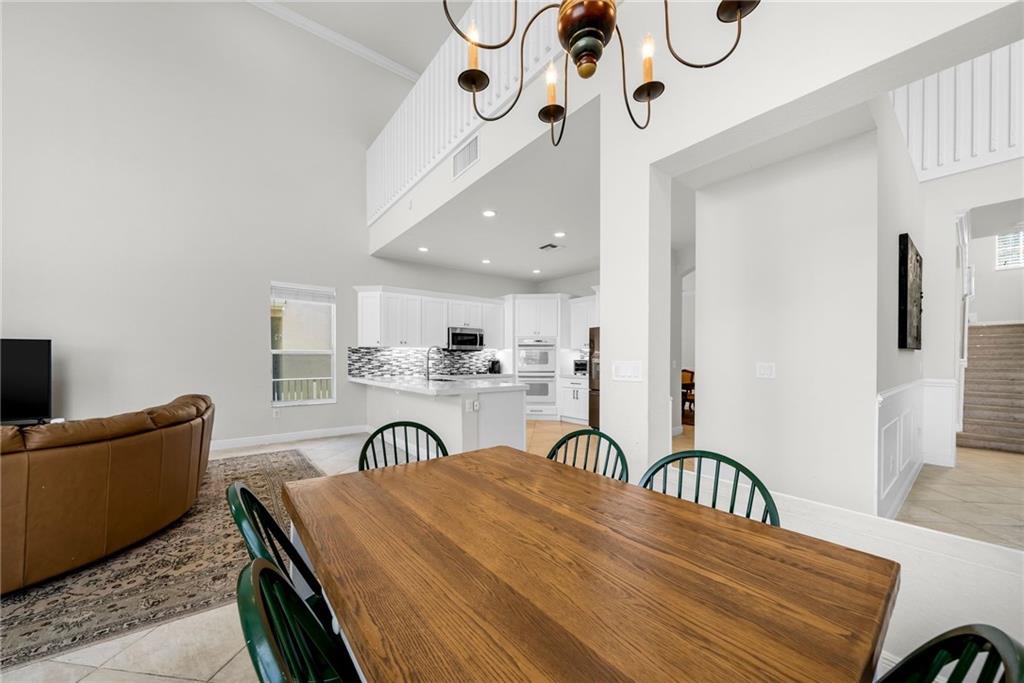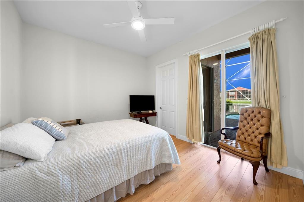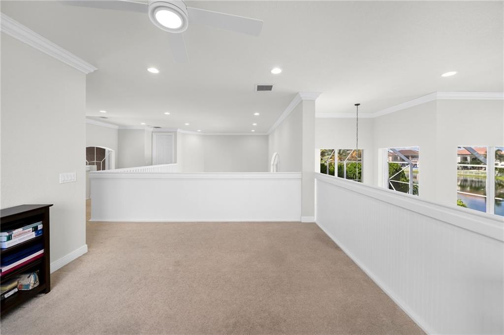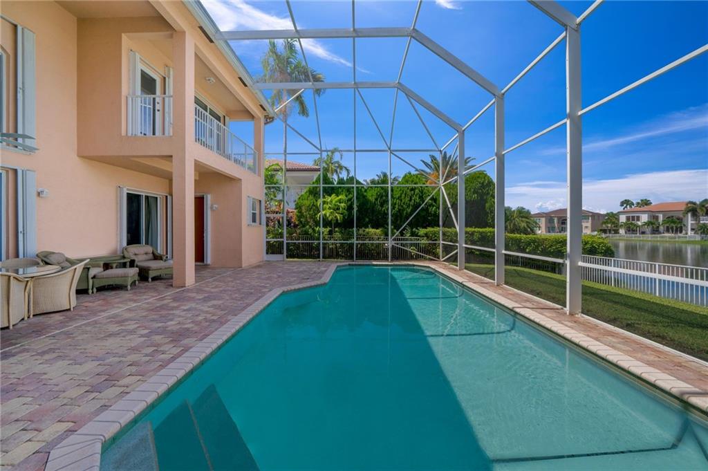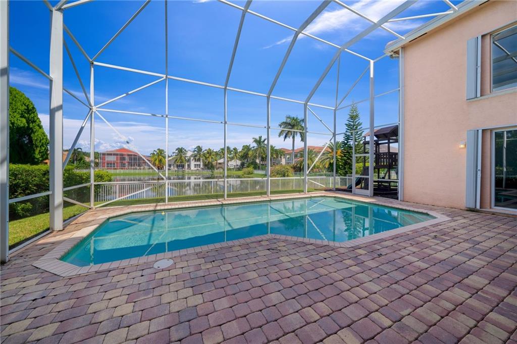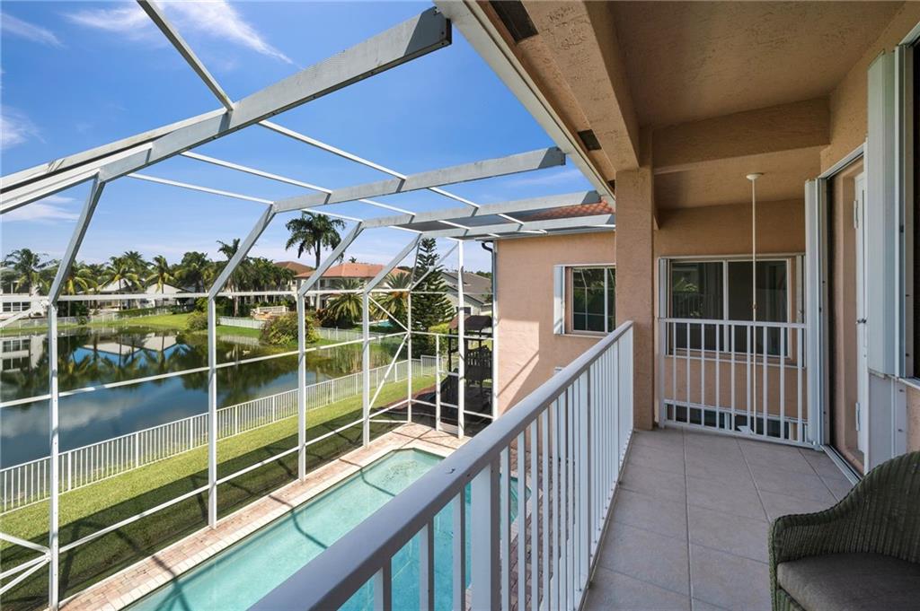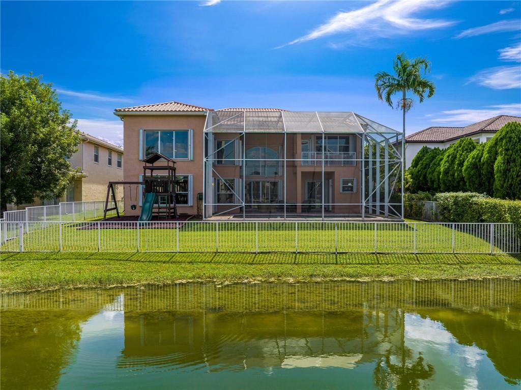 Stunning lakefront Catherine model, 4 bedrooms plus den, 3.5 baths, with a full bedroom and bathroom downstairs. New roof, new ACs, new water heater, new kitchen! Lots of windows for natural light. Upgraded kitchen w new cabinets, new counters, new appliances, and butler's pantry. Formal dining room plus eat in kitchen. Upstairs is the primary bedroom and 2 large guest bedrooms, all with walkin closet. Huge loft that can be easily be 5th bedroom. Primary bedroom has two large closets w built in shelving, bathroom w tub and shower, two vanities. Balcony off master for enjoying lake views. Outside is a fully screened and heated pool. Fenced yard. Beautiful lake view. Three garages. Accordion shutters on all openings. North-South exposure. Resort style gated community w amenities.