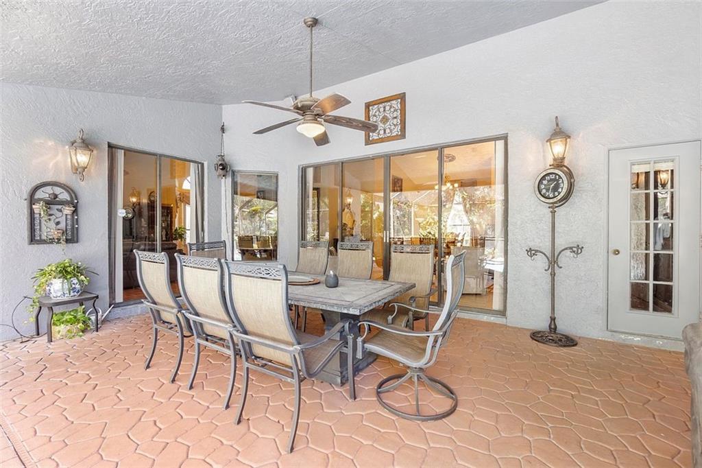 WOW! Great Opportunity in desirable Eagle Trace community. This sprawling 4bed/2.5 bath home sits on a 10,000+sq. ft lot and offers a screened pool, extended patio and circular driveway. Split bedroom layout has a grand entry, dining room, formal living room and oversized family room. The large open kitchen has classic updates of rich extended wood cabinetry and granite counters, and spacious pantry. The primary suite features sliders to the inviting patio, double walk in closets and a luxurious ensuite bath with double sinks, soaking tub and separate shower. Enjoy your sparkling pool on the oversized patio. The 3rd bath serves as a cabana bath. Eagle Trace is a manicured guard gated community with amenities such as Pickleball, tennis, basketball, tot lot, and more! TPC GOLF OPTIONAL.