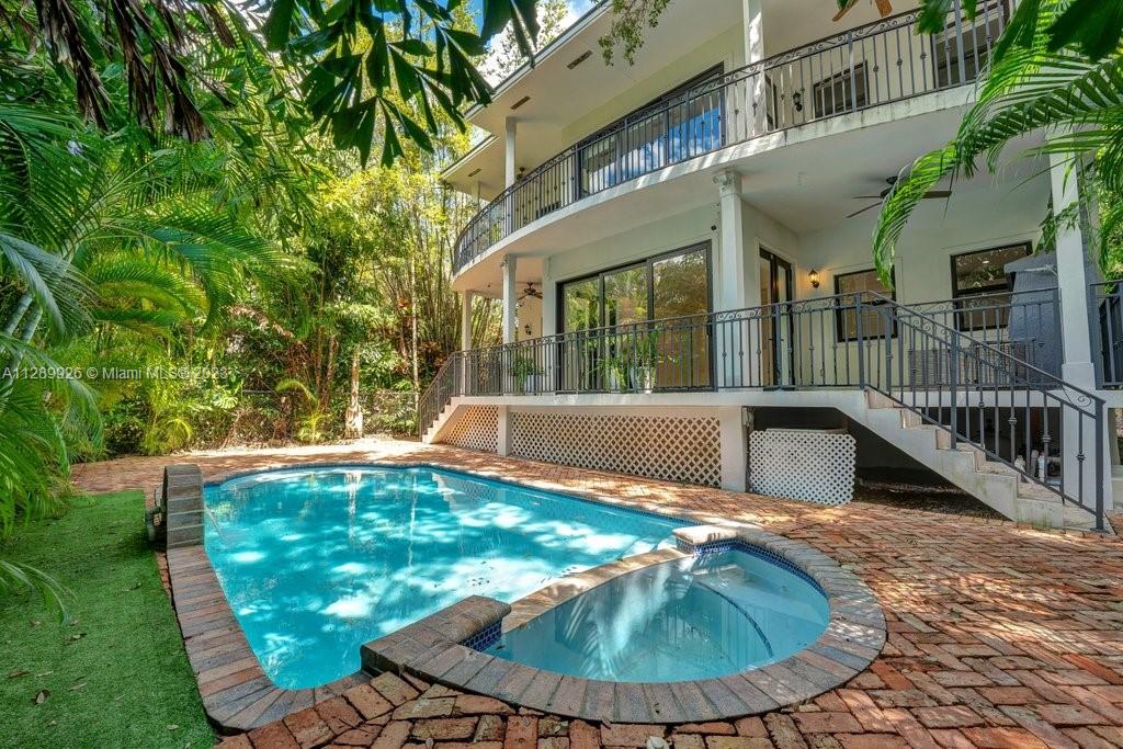 Single Family Home in the heart of Coconut Grove. This is a must-see contemporary beauty on a lushly shaded lot w/ an approximate total Living area of 4,241 Sqft. (per owner's information), ideal for entertaining in 2 stories, 4/3.5 on the main structure + an adjacent 2/1.5 guest-in-law facility. Enjoy the pool and/or open pit BBQ. Natural wood floors on 2nd-floor rooms & marble floors throughout. Ample well-designed kitchen w/ wood cabinets & marble countertops. Top-of-the-line stainless steel appliances & pantry make this an ideal haven for cooking/entertaining lovers. The property has a new roof, freshly painted outside, and impact doors & windows, washer & dryer (done 2 years ago). One out of two a/c was replaced a month ago. Flood Zone "X". Easy to show.