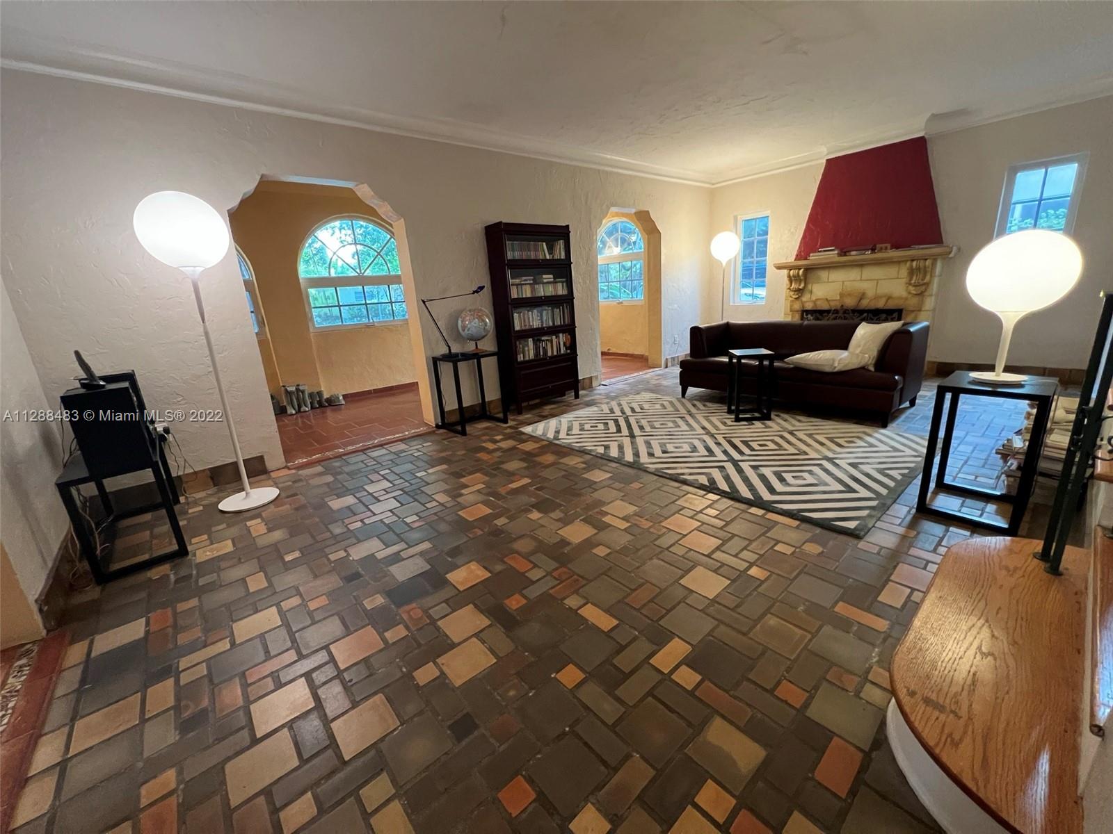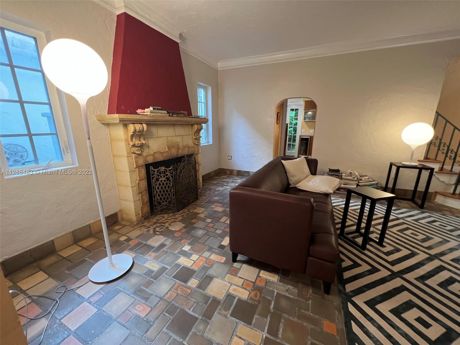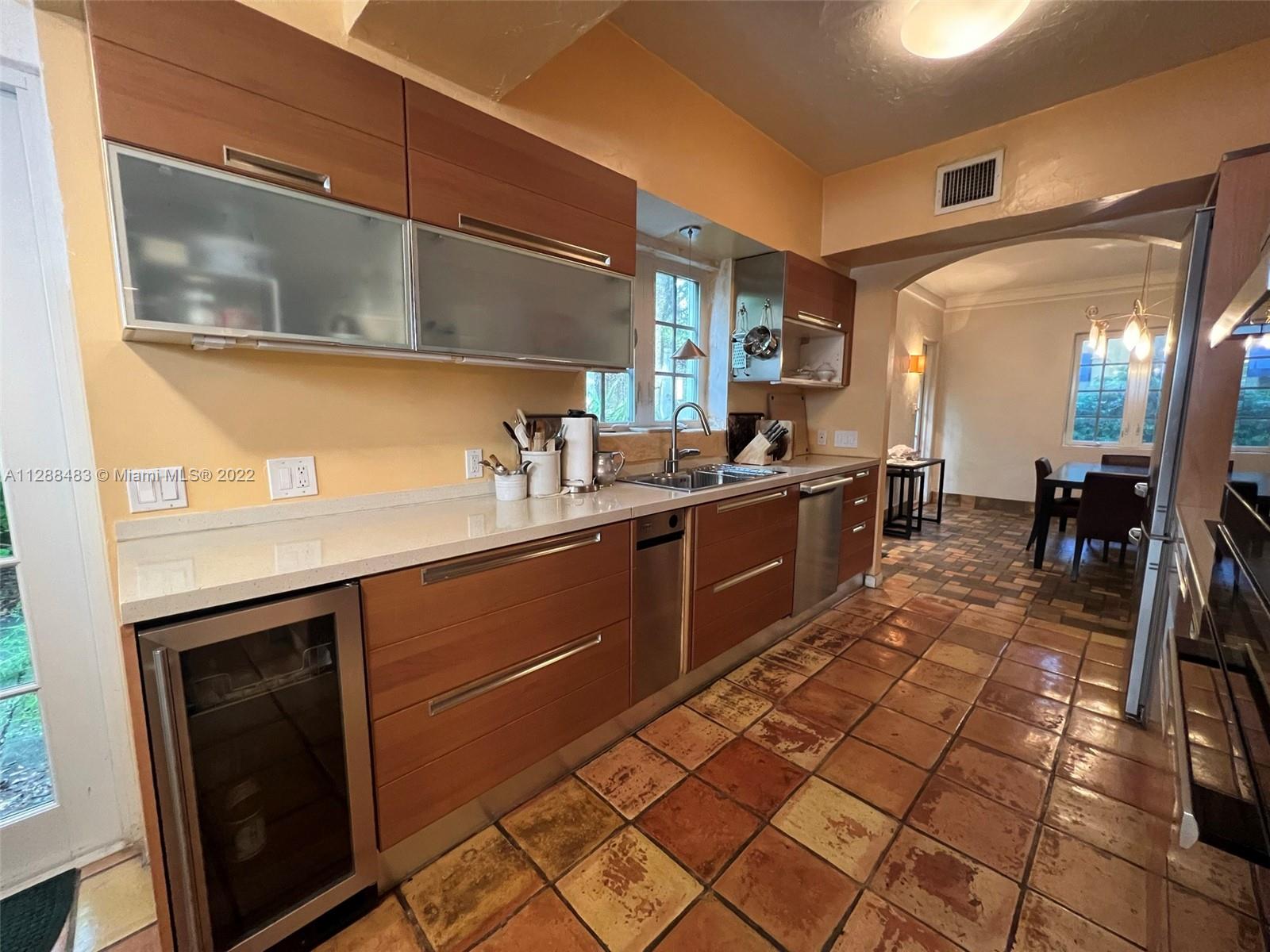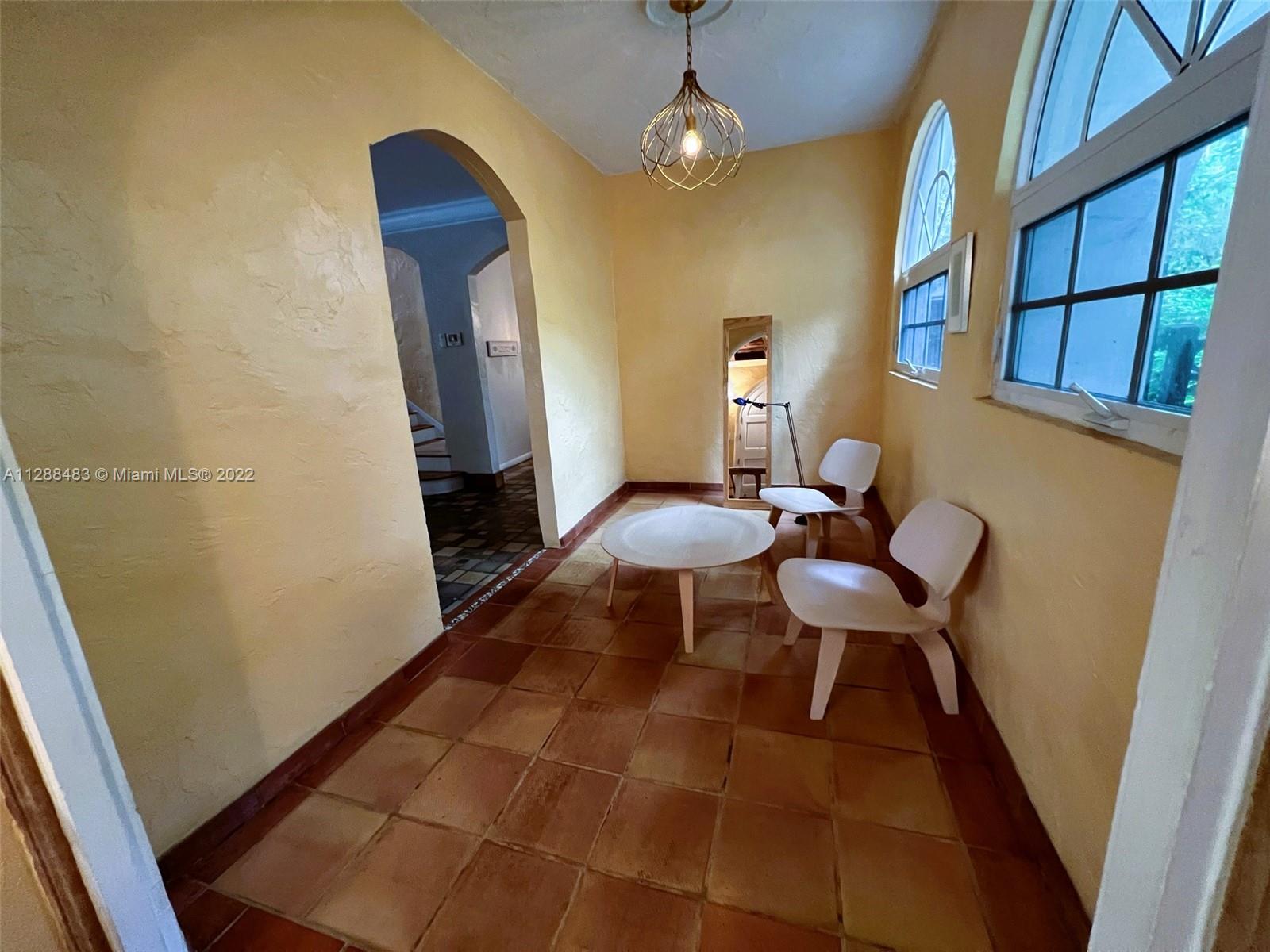 Charming Coral Gables Spanish Colonial Architecture home in a very sought-after Alhambra neighborhood, a short walk to Downtown Coral Gables. The first floor of the main house features terracotta tile with Single Hung windows. It has a long foyer, Living Room, Den, Dining Room, Kitchen, and Powder room. The kitchen features Granite counters and tile backsplash with custom wood cabinetry.