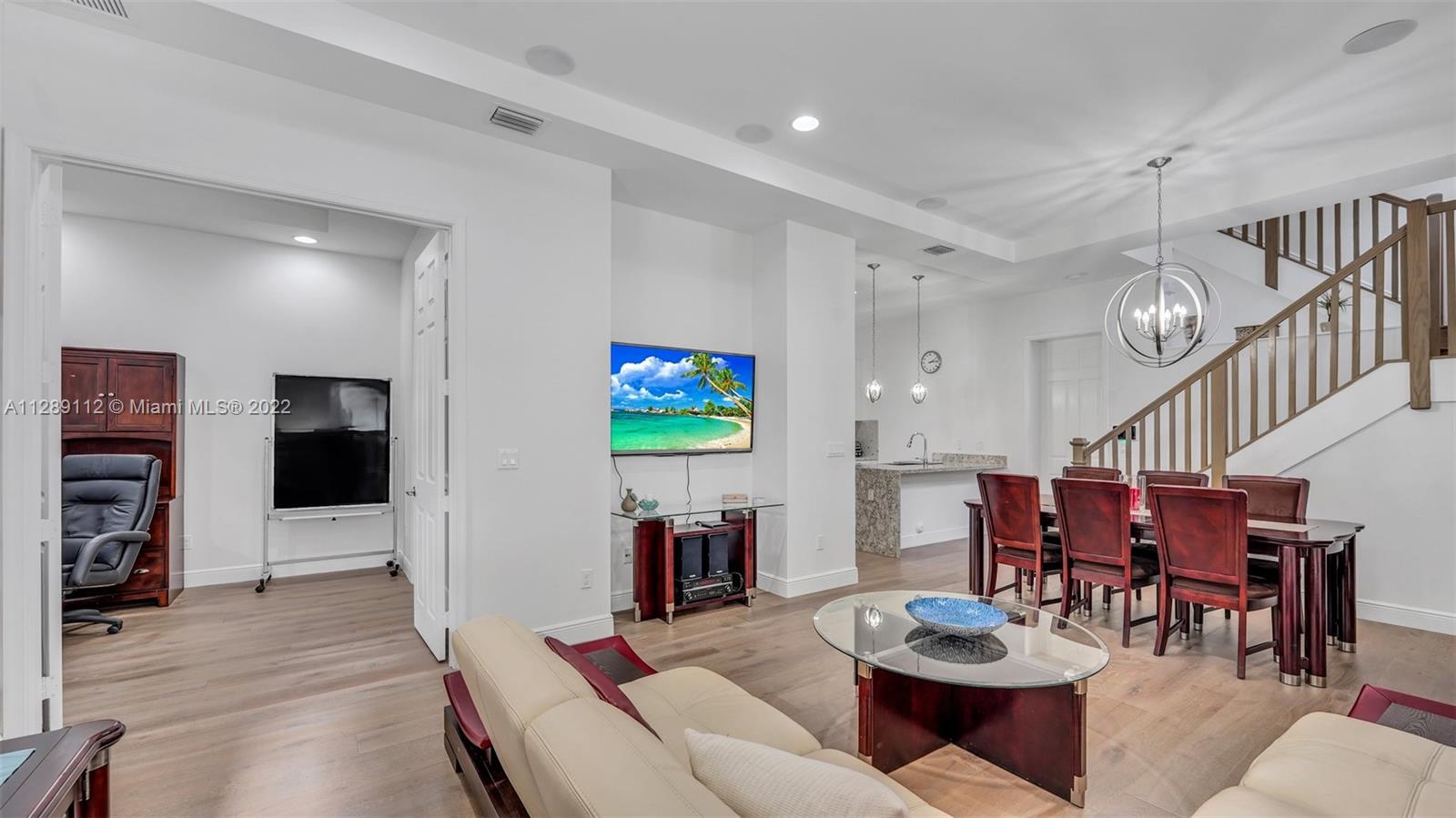 Looking for luxury in Downtown Doral? Make this 3 story, 5 bedroom, 4 bathroom townhome on a premium corner unit w/2 car garage your next move. Entertain effortlessly on the rooftop patio with built in BBQ & sink or in the beautiful kitchen with monogram stainless appliances & upgraded Italian glass cabinetry & granite counter tops. The Downtown Doral community is Miami’s premier town center, a vibrant community of culture & commerce, located at the heart of access to almost everywhere. Enjoy the neighborhood, convenient offices, an award-winning school, 70 trendy restaurants & shops that offer a new quality of life—totally walkable, connected, artfully designed, green & gracious. Have convenient access to Miami International Airport & major highways, Universities, Trump National & more