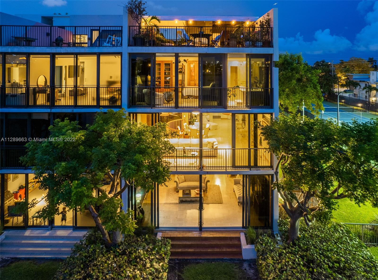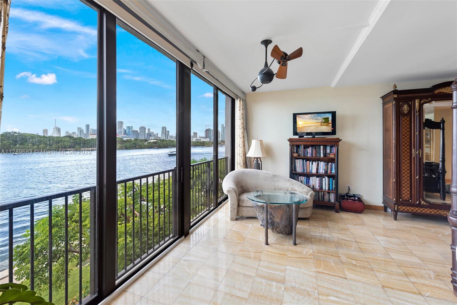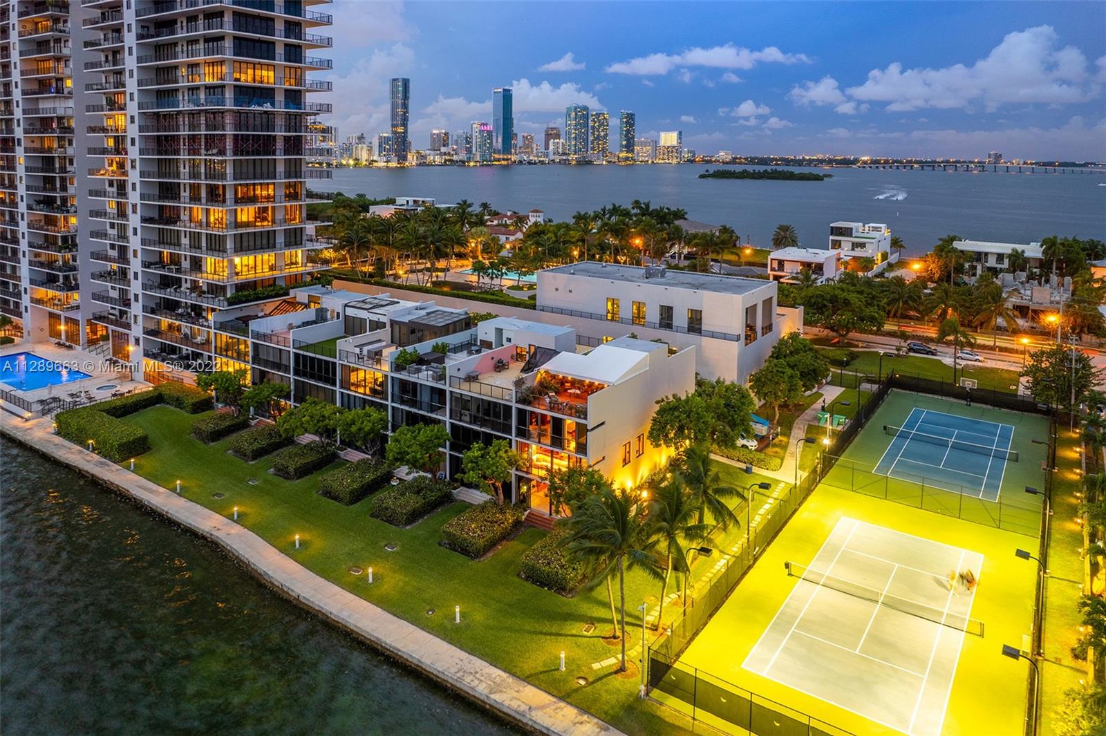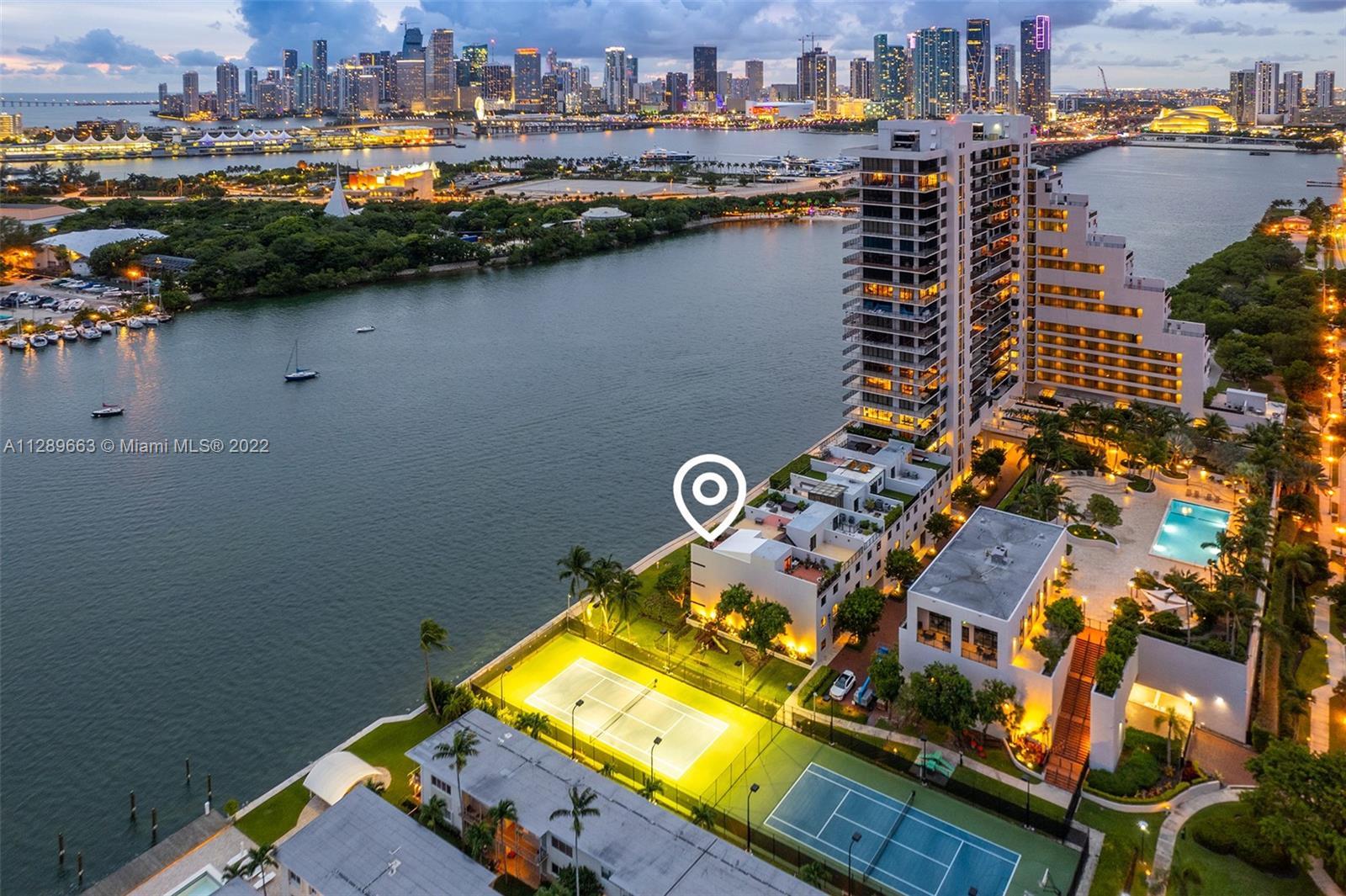 4-story Venetian Isles Corner Townhouse fabulous for entertaining. This decadent residence boasts magnificent views of Biscayne Bay and Miami skyline & includes 2 rooftop terraces. Located in a full service gated condominium, it uniquely encompasses the best of single-family and condo living. Built originally for the developer, the superb layout includes a ground floor bed, bath & living room w/floor to ceiling glass overlooking the bay front lawn. 2nd floor features a spacious eat-in kitchen, family room marble floor w/full bath. The opulent primary bedroom on 3rd floor allows for spectacular views across the bay w/ensuite onyx-clad bath. 4th floor rooftop offers 2 expansive decks w/summer kitchen-great for enjoying fireworks! Equipped w/elevator, impact windows, grand wooden bookcase.