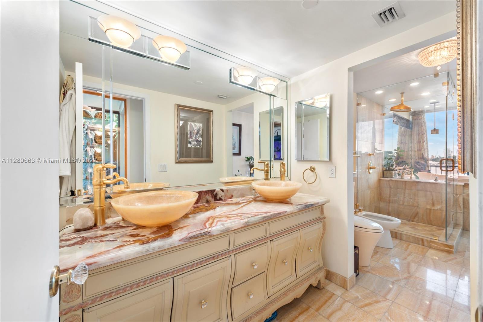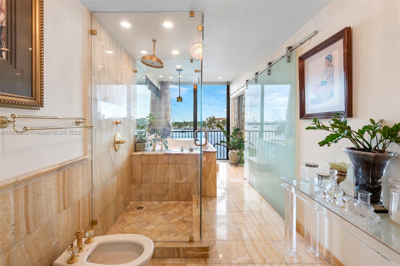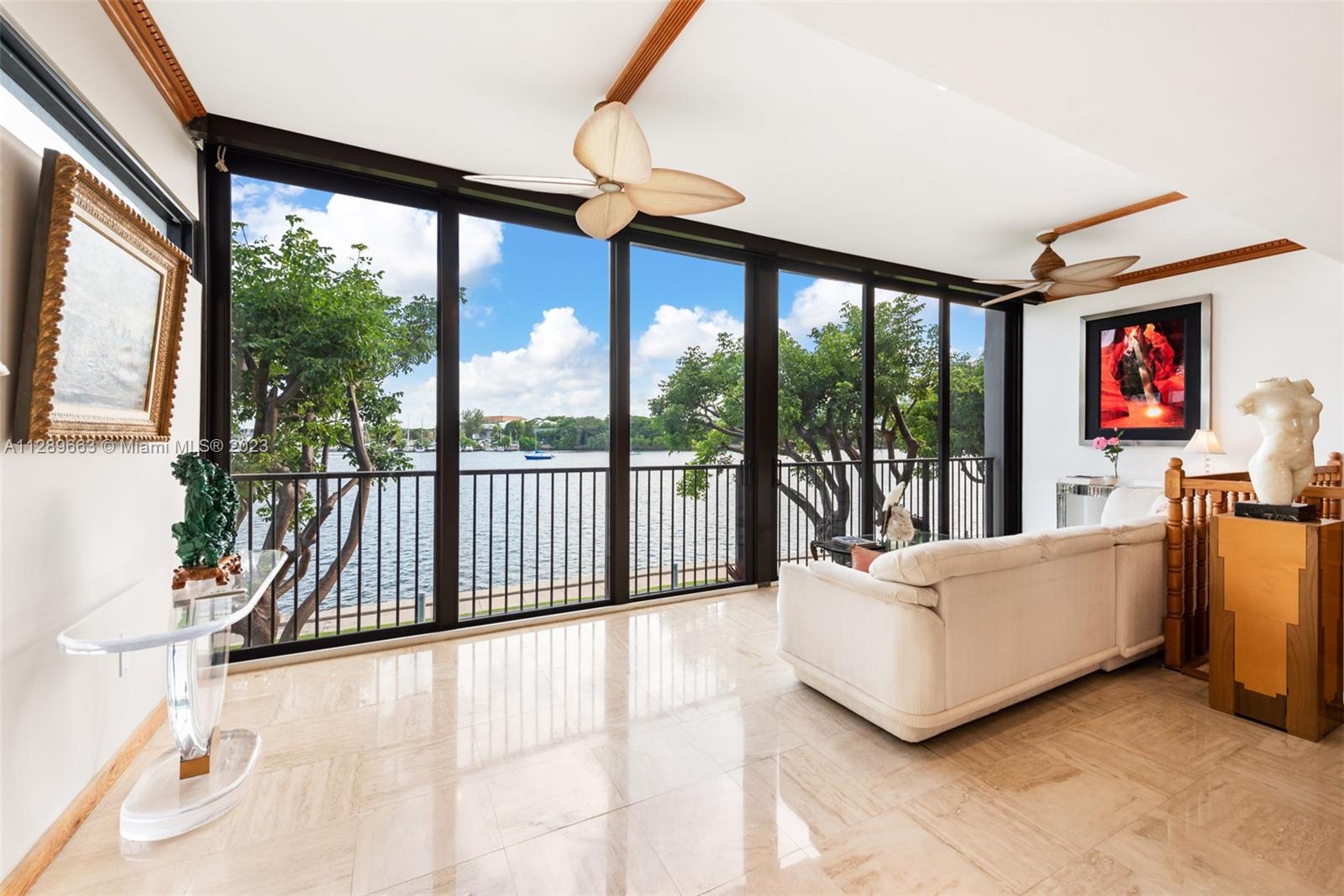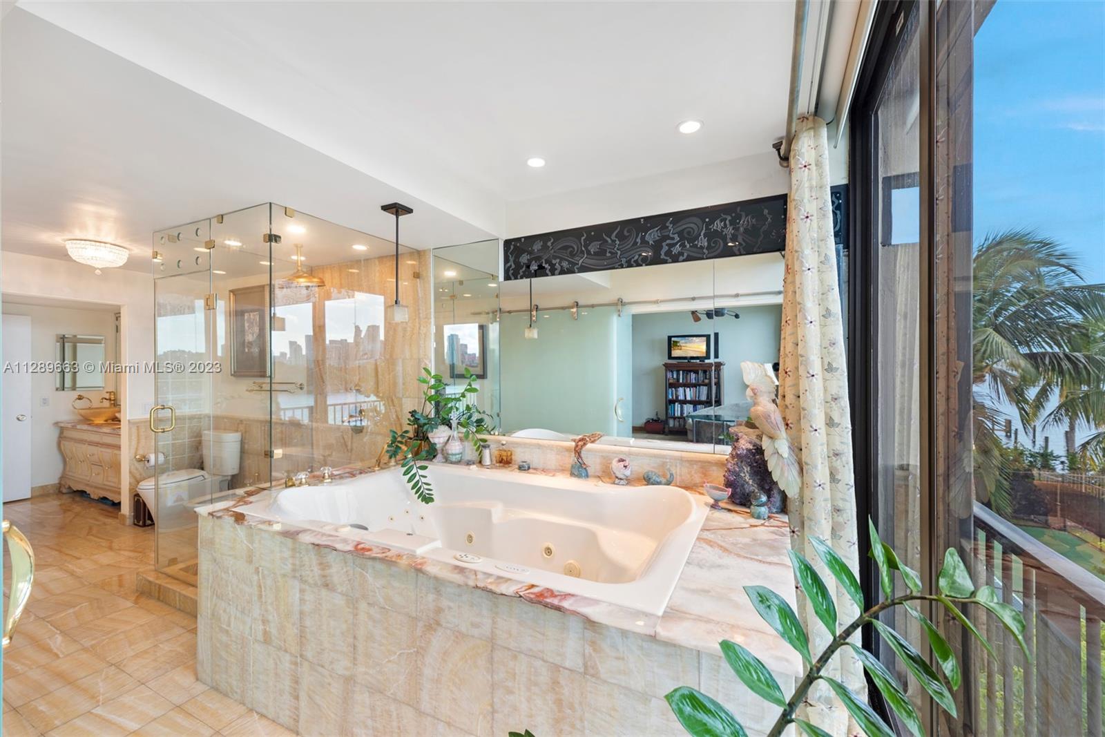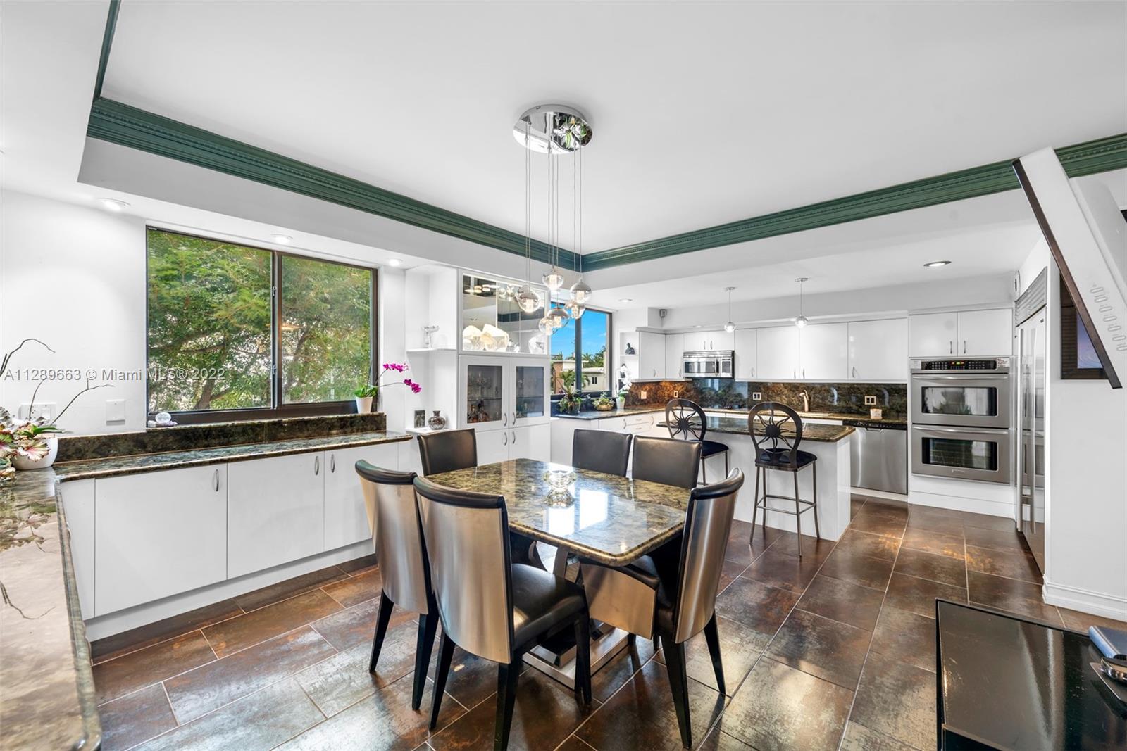 4-story Venetian Isles Corner Townhouse fabulous for entertaining. This decadent residence boasts magnificent views of Biscayne Bay and Miami skyline & includes 2 rooftop terraces. Located in a full service gated condominium, it uniquely encompasses the best of single-family and condo living. Built originally for the developer, the superb layout includes a ground floor bed, bath & living room w/floor to ceiling glass overlooking the bay front lawn. 2nd floor features a spacious eat-in kitchen, family room marble floor w/full bath. The opulent primary bedroom on 3rd floor allows for spectacular views across the bay w/ensuite onyx-clad bath. 4th floor rooftop offers 2 expansive decks w/summer kitchen-great for enjoying fireworks! Equipped w/elevator, impact windows, grand wooden bookcase.