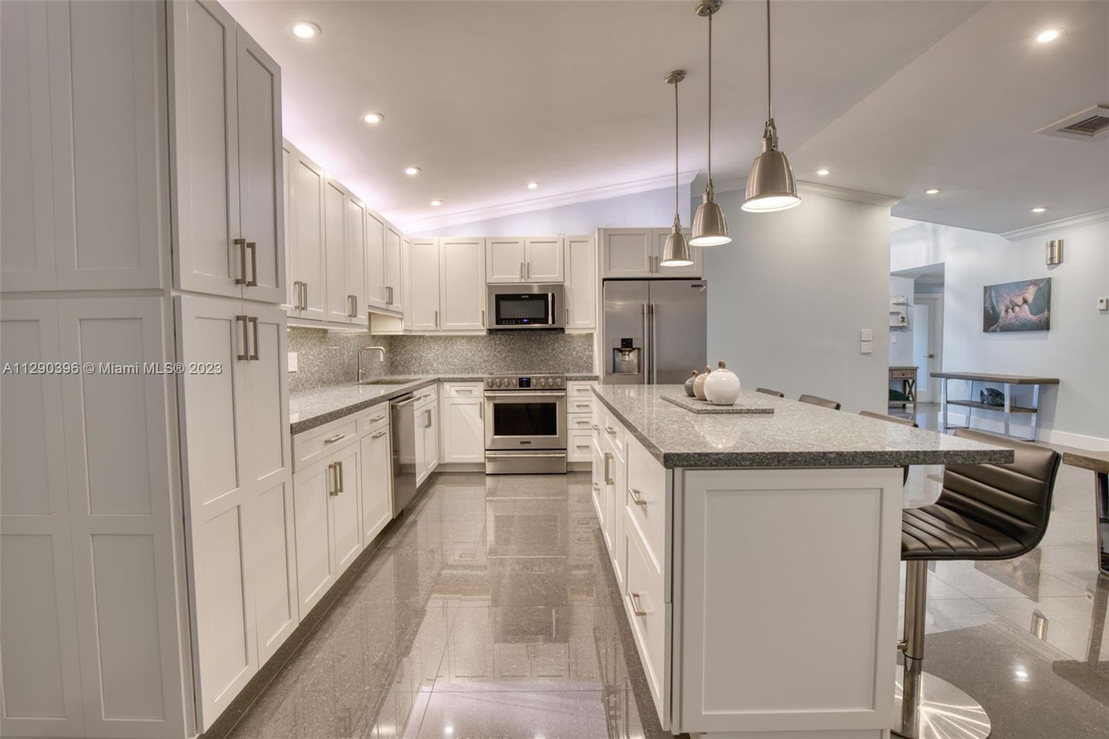 Timeline of remodel: 2017- New roof & new impact windows & doors. Garage door is also impact resistant. New concrete driveway & concrete backyard. 2018 - House was completely gutted. New aluminum beams, new electrical wiring, new recessed lighting & new mold resistant sheetrock thru-out the entire house. 2019 - New tile, crown molding, plantation shutters, new a/c ducting, completely remodeled 2nd bath, new kitchen cabinets & stainless steel appliances, epoxy floor in garage, garage cabinets, tankless electric water heater. 2021 - New A/C unit and completely redesigned & remodeled master bath. Electrical panel is also new and updated. Sprinklers and outside as well as landscape lighting.