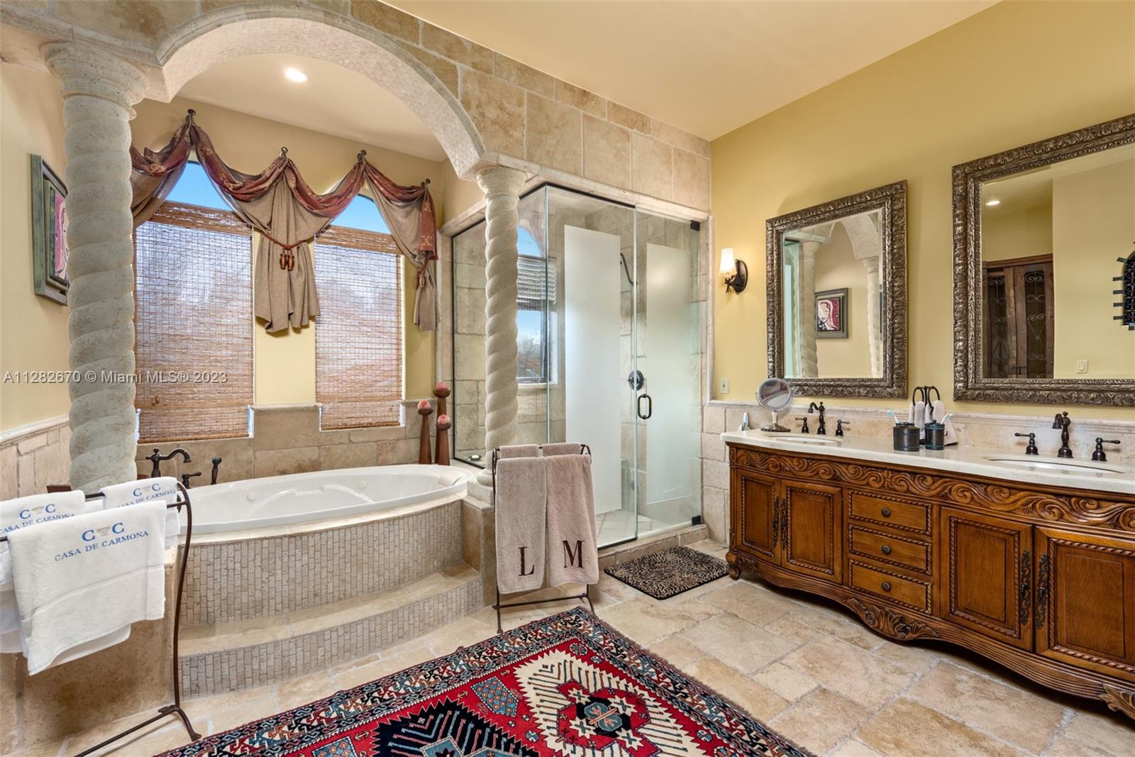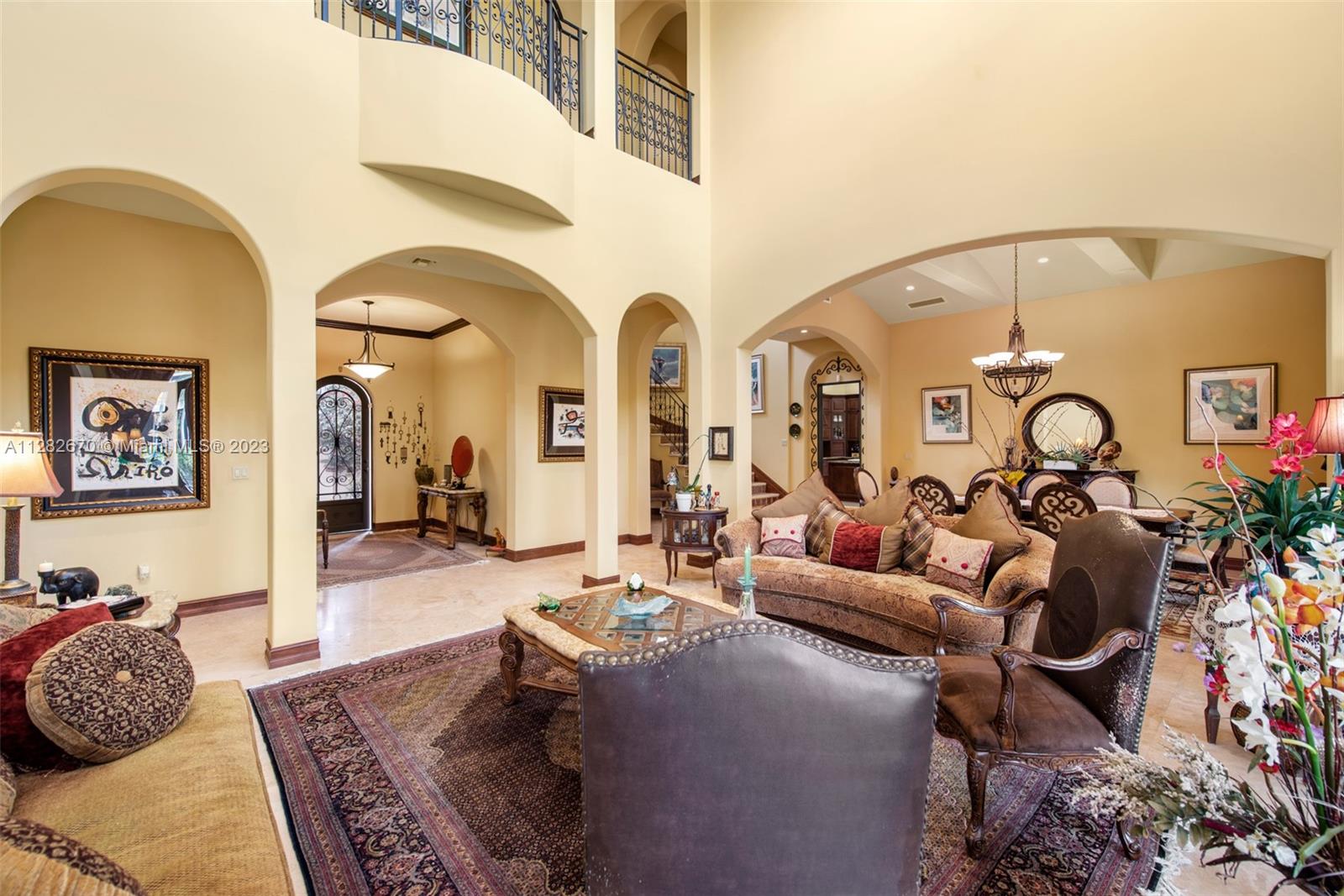 Beautifully custom built 6,376/sf Spanish Hacienda masterpiece! Sits on an oversized 15,000sf lot in the exclusive Town of Golden Beach, one of the most sought after communities in South Florida. The home is located within steps of the towns very own private beach. Courtyard entry, 24ft ceilings as you enter the home. Home features an oversized kitchen with a huge island, high-end appliances, thermador, Sub-Zero refrigerator, and granite countertops. The family room overlooks the large terrace & custom saltwater pool. Other features include office/den, playroom with built-in wet bar plus two ground floor bedrooms with in-suite bathrooms. Enormous master suite with a massive walk-in closet with built-ins, covered balcony, spectacular master bath with tub & shower with travertine finishes.