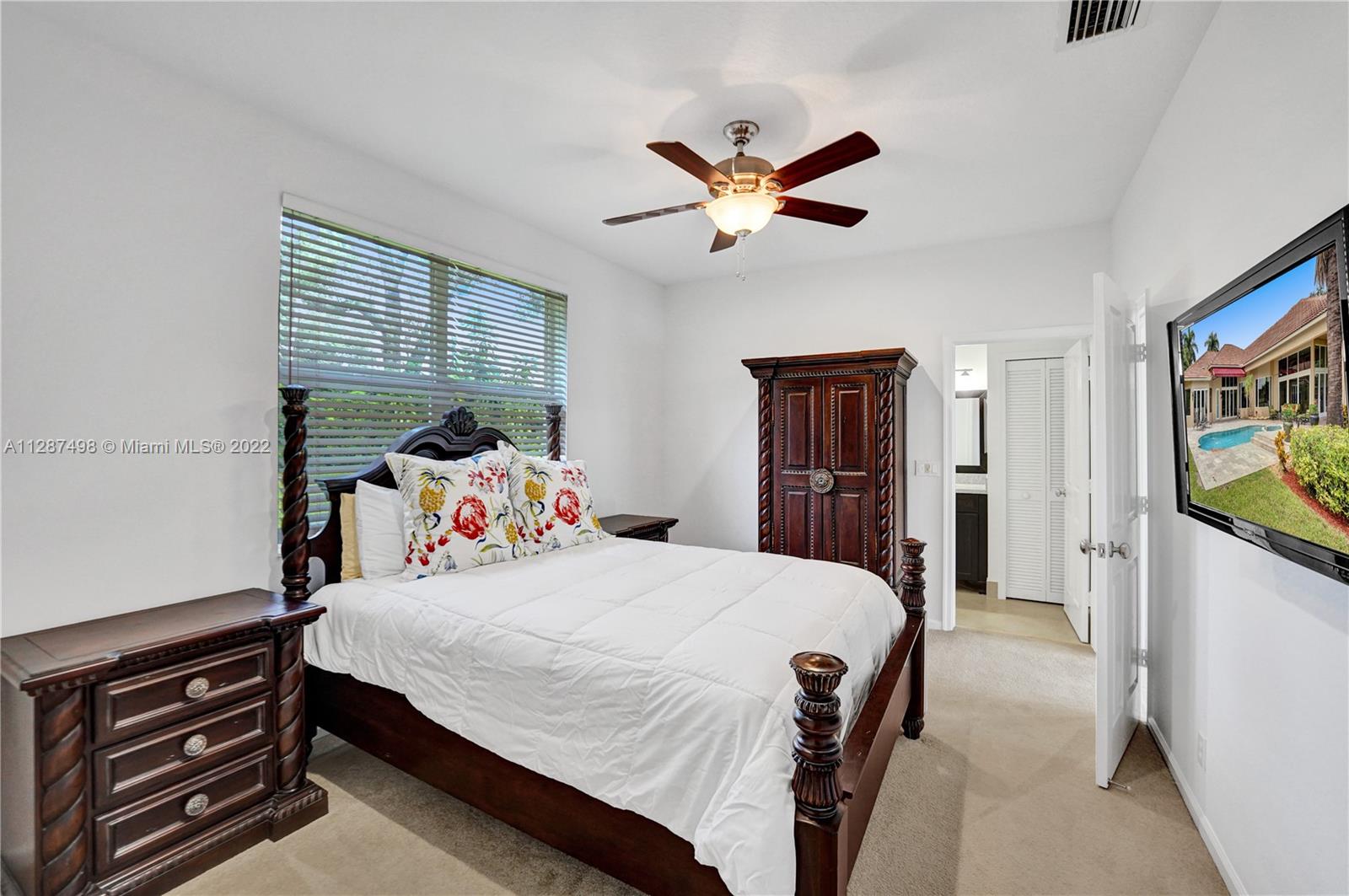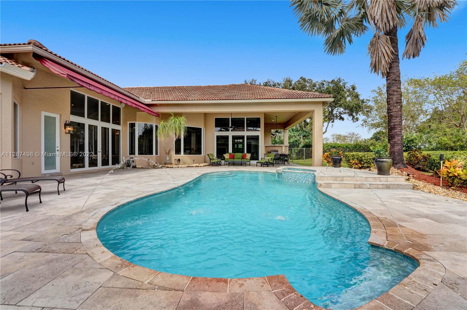 LOOK NO FURTHER, your dream home awaits you! Move-in ready 5 Bedroom, 5 1/2 bath home PLUS office on one of the largest, most private golf course lots in Weston Hills Country Club! Features of this one-of-a-kind property include: Stunning entry with a 3 car garage, fantastic floor plan for family living & entertaining, freshly painted interior, light & bright with volume ceilings, each bedroom is ensuite with their own bath & walk-in closet with built-ins, master bedroom with 2 walk-in closets & luxurious bath, formal dining room & living room with wet bar, kitchen with center island, top-of-the line appliances & ice maker, & a spacious family room! Enjoy all of this together with a summer kitchen, resort style pool & patio areas! Hurricane Impact Glass & a New Roof in process!