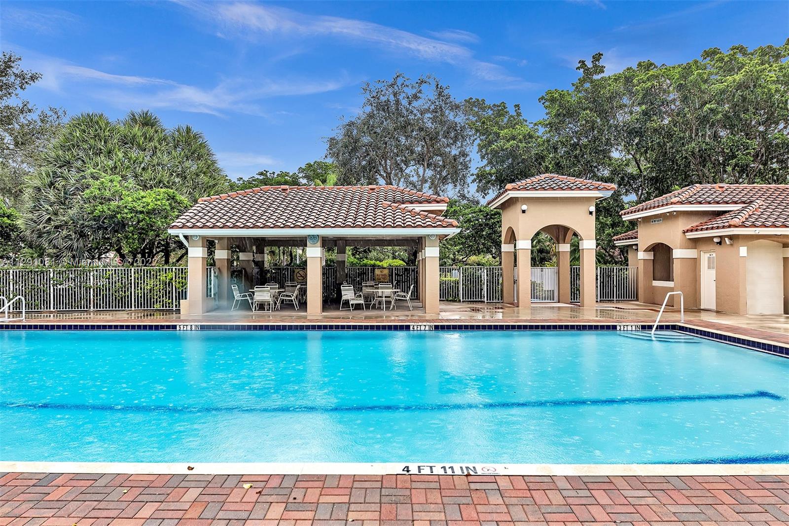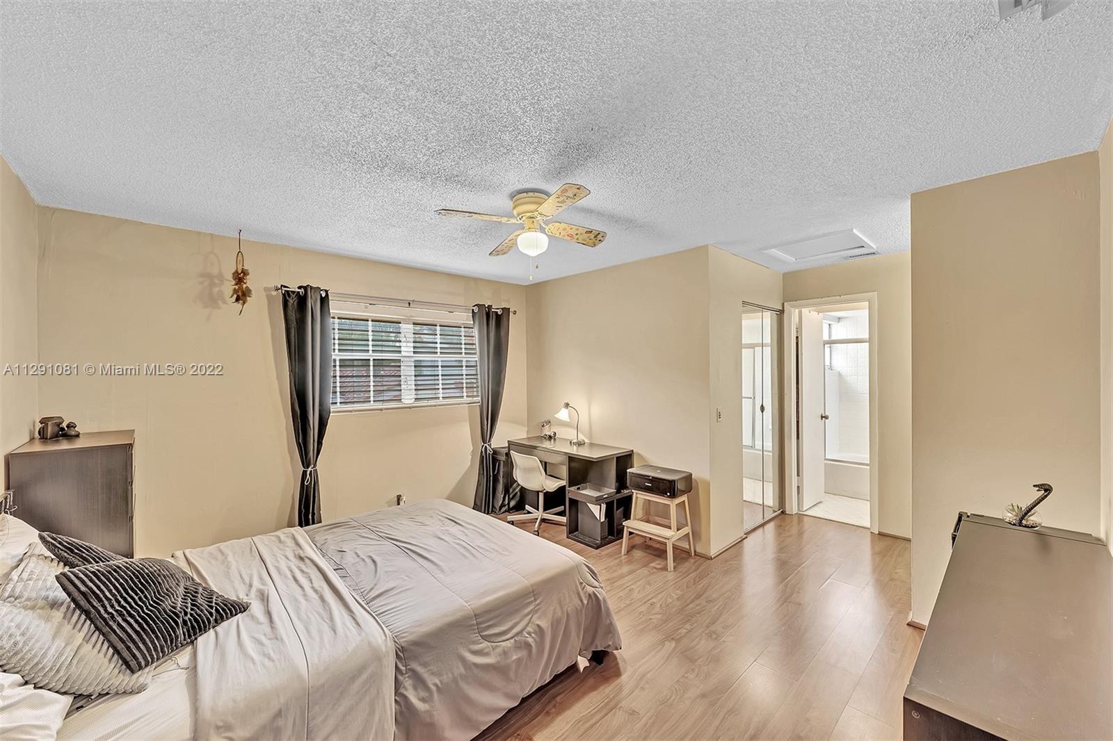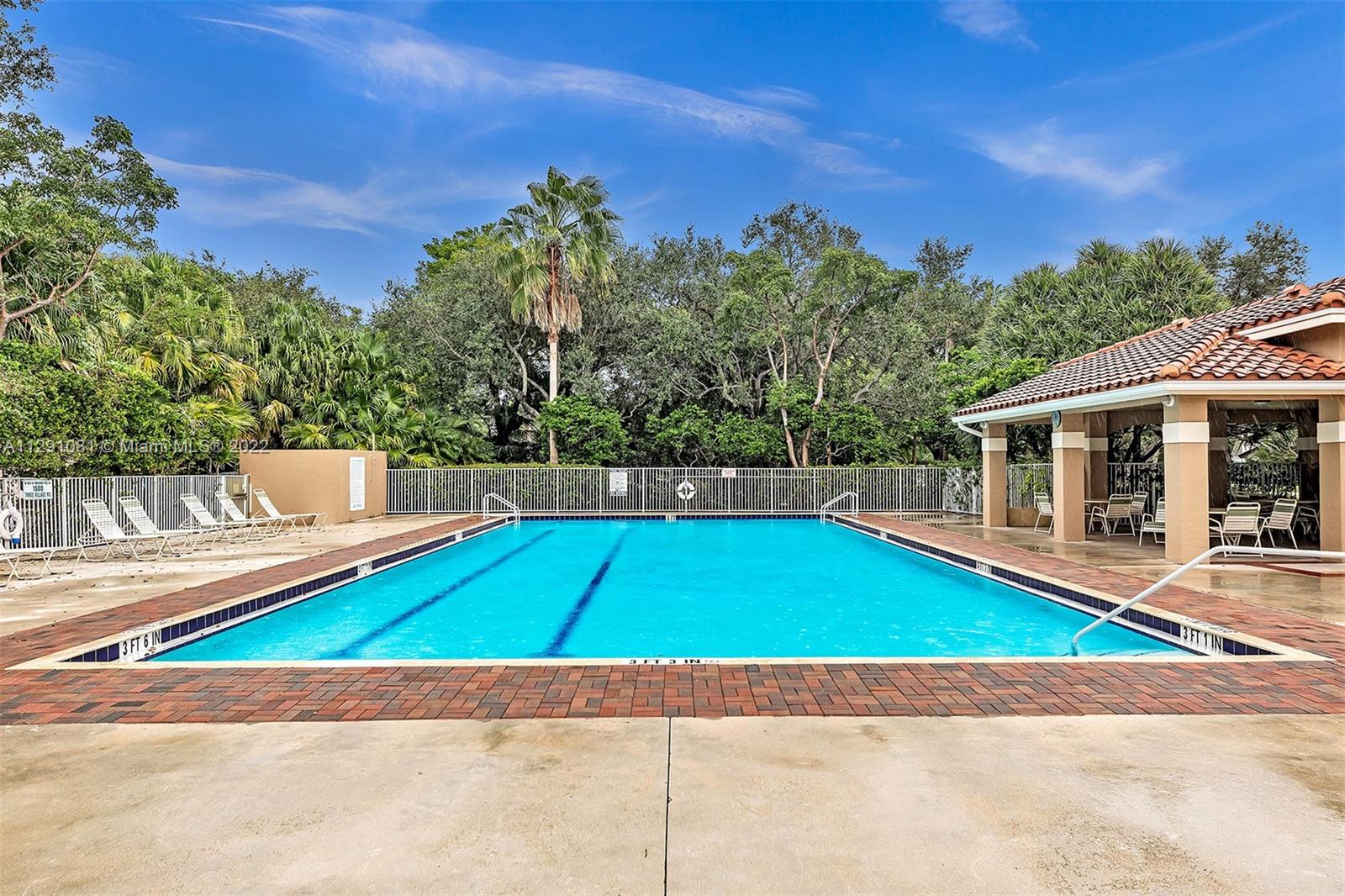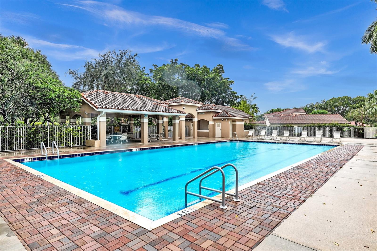 Exceptional townhouse offering two bedrooms two bathrooms plus a spacious loft and fenced yard. Private view overlooking green area. Enter the great room and experience the 2 story volume ceiling which provides lots of natural light and open feeling. Eat-in kitchen has cozy breakfast area. Floor plan flows with 2 master suites, one upstairs/one downstairs, each with direct access to bathroom and large walk-in closets. Additional features include waterproof vinyl flooring downstairs and laminate in bedrooms and loft, full size front loader washer and dryer, large storage shed, accordion shutters upstairs and panels downstairs. Pets are welcome! Investors welcome! Certain trucks are permitted. Unit has 2 assigned parking spots. Steps to community pool, parks and shopping.
