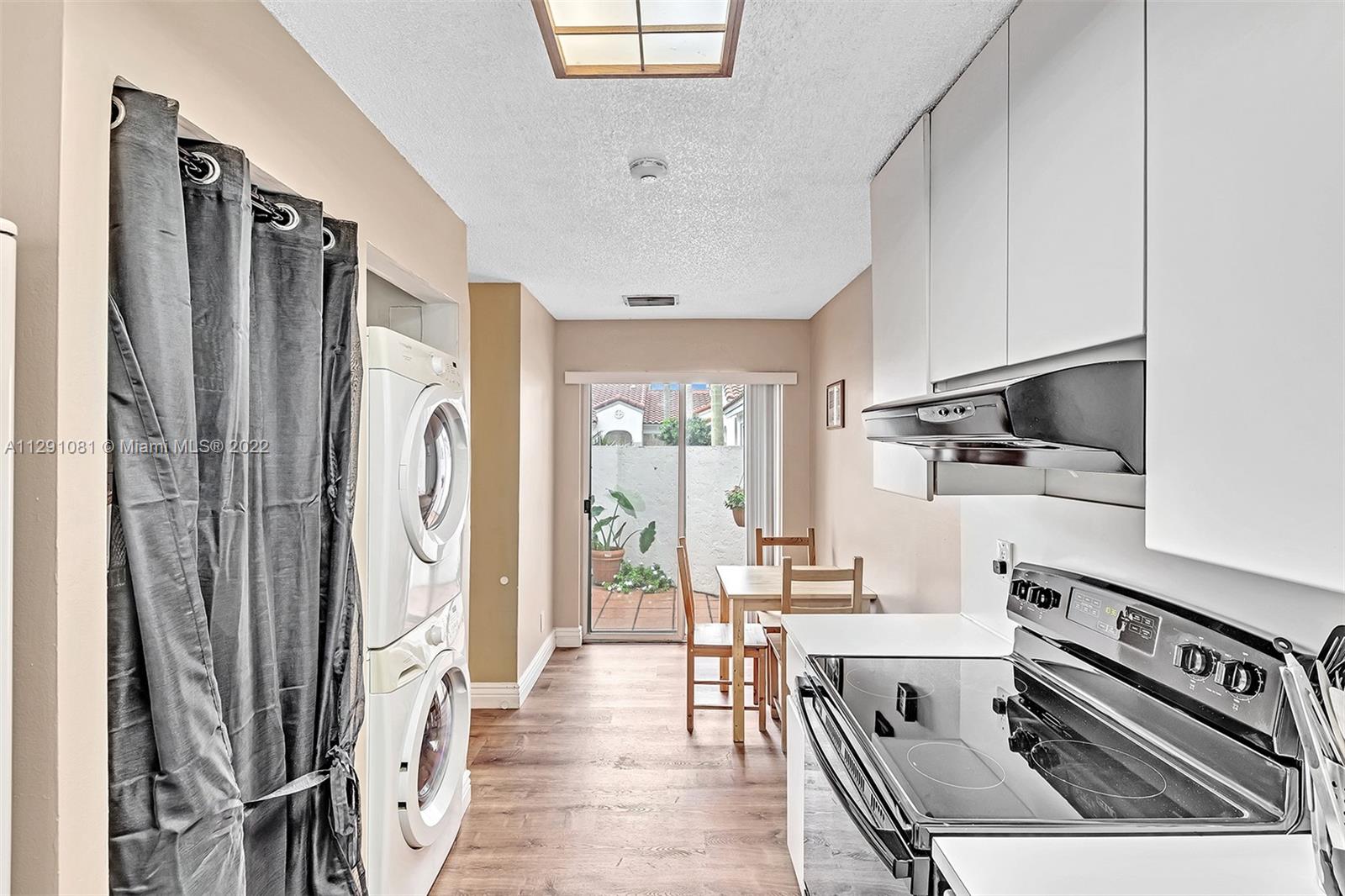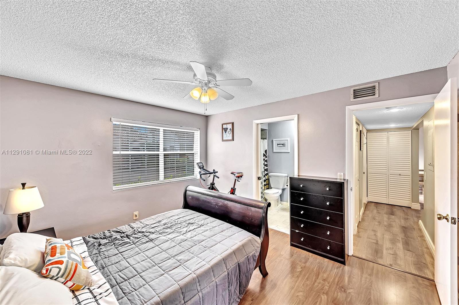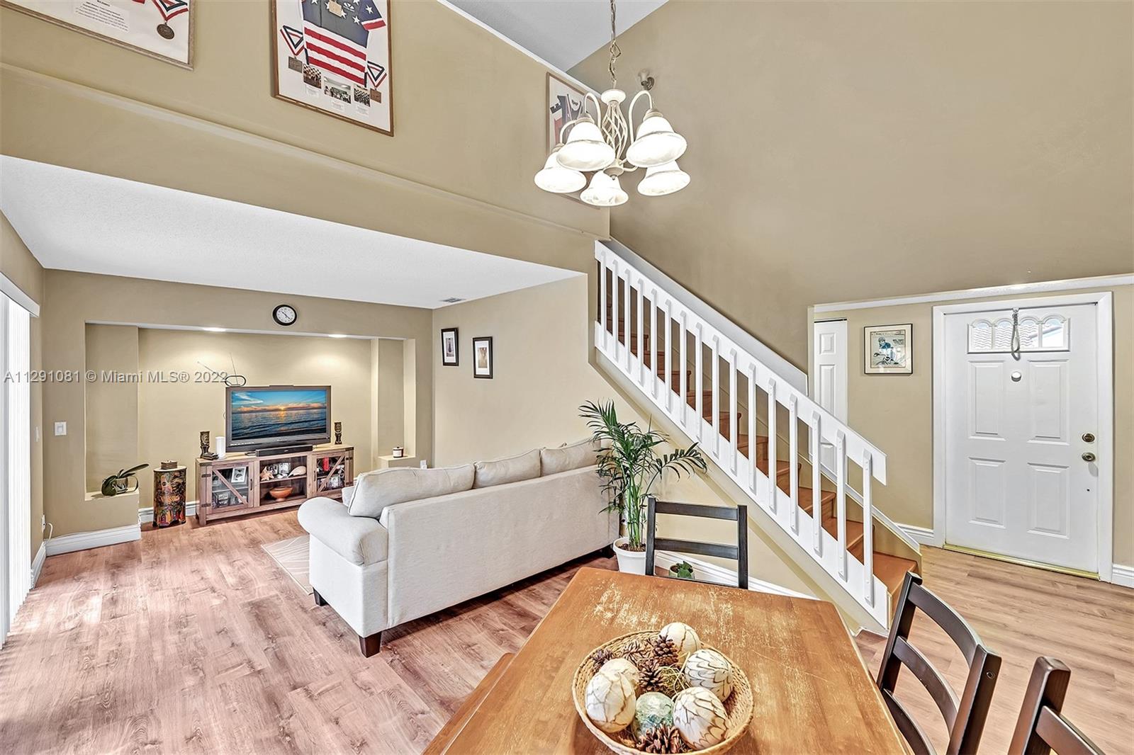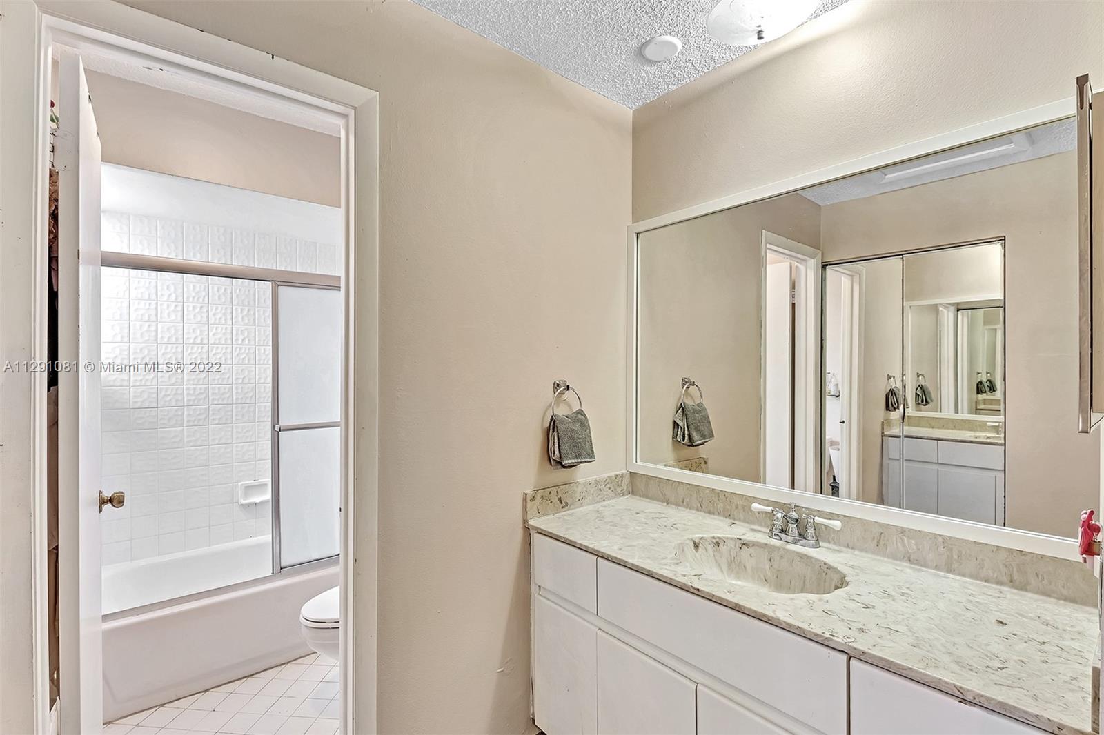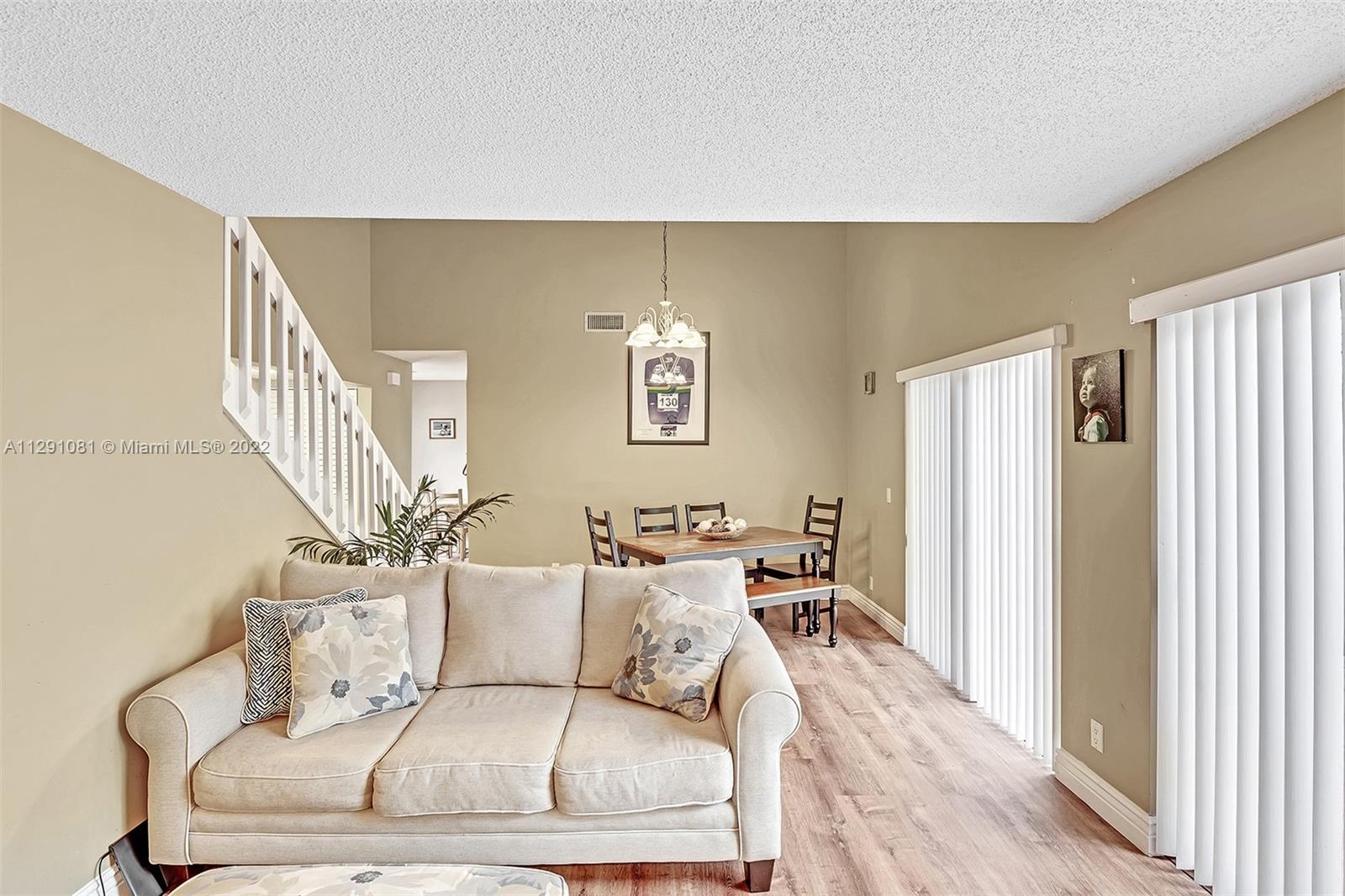 Exceptional townhouse offering two bedrooms two bathrooms plus a spacious loft and fenced yard. Private view overlooking green area. Enter the great room and experience the 2 story volume ceiling which provides lots of natural light and open feeling. Eat-in kitchen has cozy breakfast area. Floor plan flows with 2 master suites, one upstairs/one downstairs, each with direct access to bathroom and large walk-in closets. Additional features include waterproof vinyl flooring downstairs and laminate in bedrooms and loft, full size front loader washer and dryer, large storage shed, accordion shutters upstairs and panels downstairs. Pets are welcome! Investors welcome! Certain trucks are permitted. Unit has 2 assigned parking spots. Steps to community pool, parks and shopping.