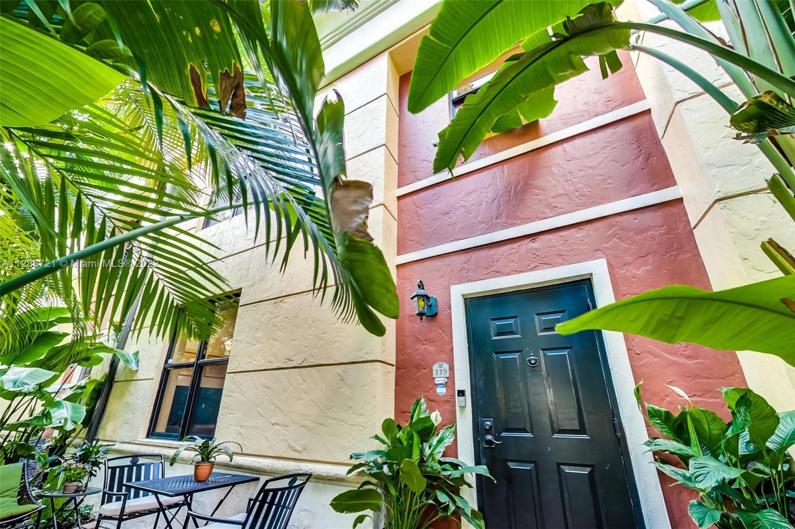 Amazing European style 2 bedroom 2.5 bathroom townhouse located in Puerta de Palmas, in Coral Gables, with 2 covered parking spaces included and one with an EV charger. This building includes an elegant lobby, 24/7 concierge, valet services, heated swimming pool, equipped gym, Business Center, Board Room and beautiful outdoor areas. Easy to show.