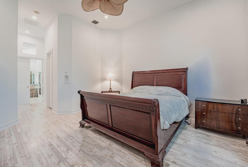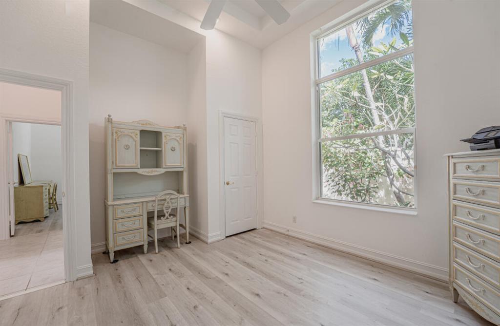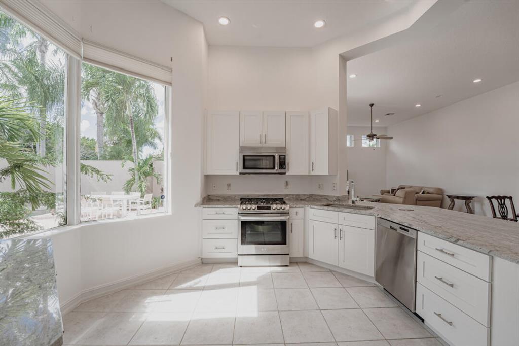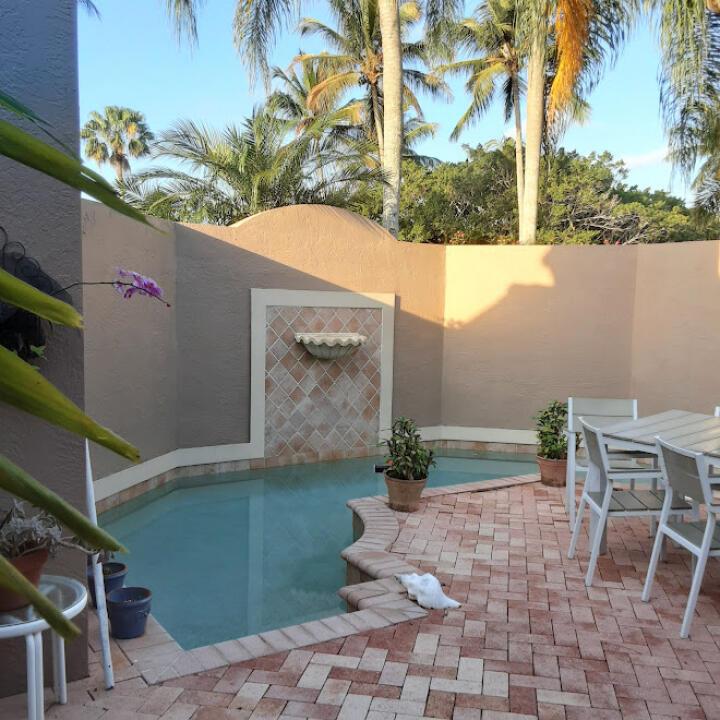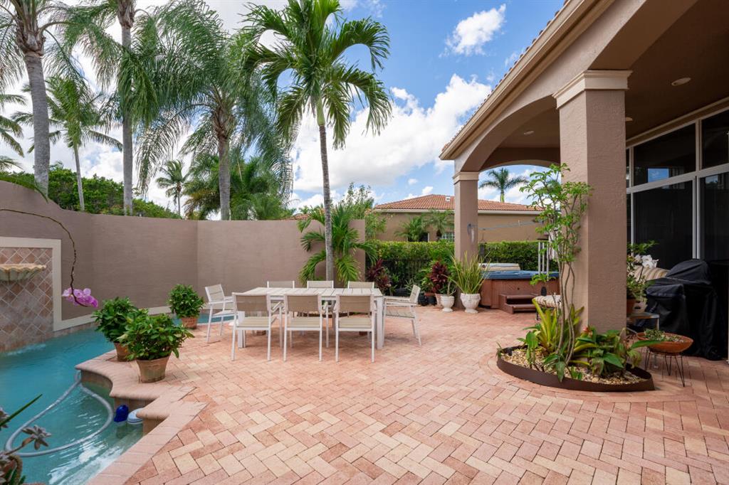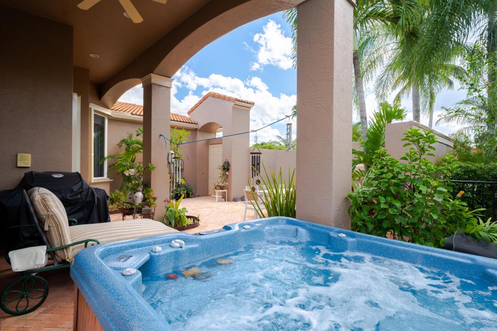 A true RESORT style Sabatello Mediterranean courtyard home. After entering the outside double doors, you come into the courtyard which has a seashell waterfall fountain flowing into the unique shaped pool. The home's front has multiple high windows which brings the outside inside. The large open concept plan has plenty of space for complete living and dining areas and 12 foot volume ceilings throughout. This home has a split plan with a huge master suite and one bedroom can be used as a den or office. The home has a new gas hot water tank, gas stove, gas dryer and a gas pool heater. The kitchen is new with new river granite countertops specked with garnets and stainless steel appliances. Both bathrooms have been updated and the home is bright and throughout