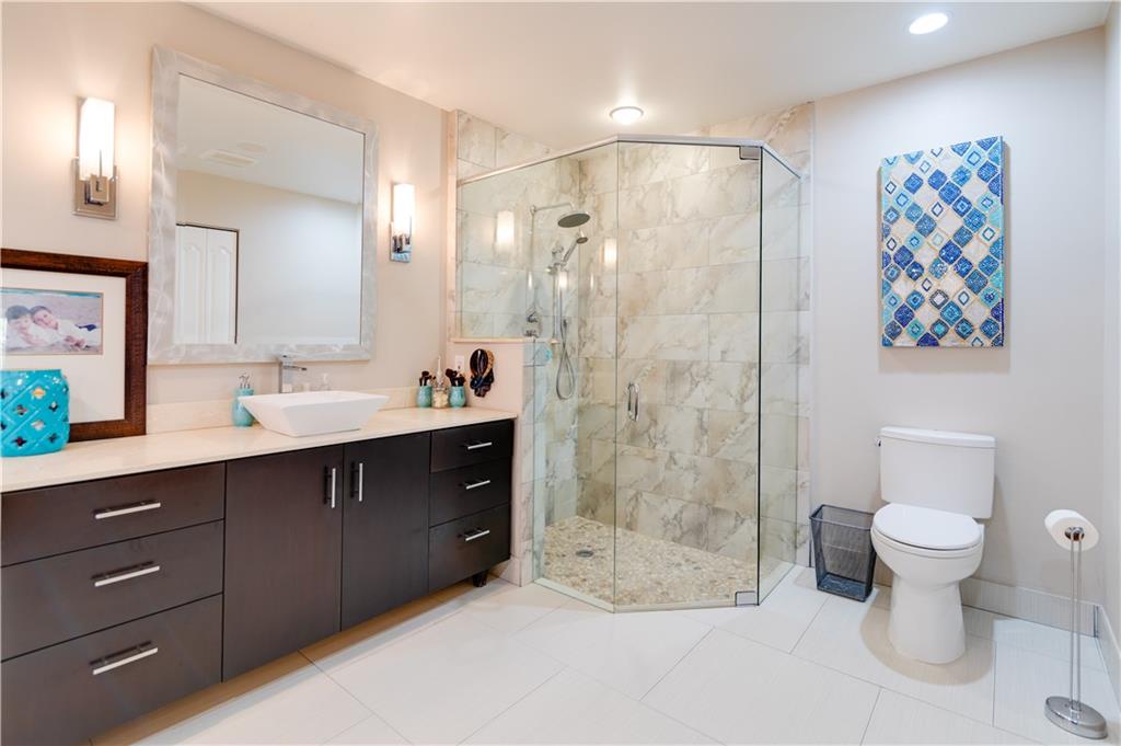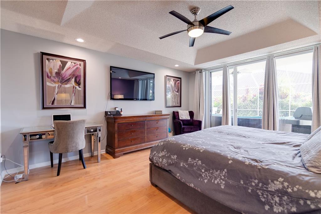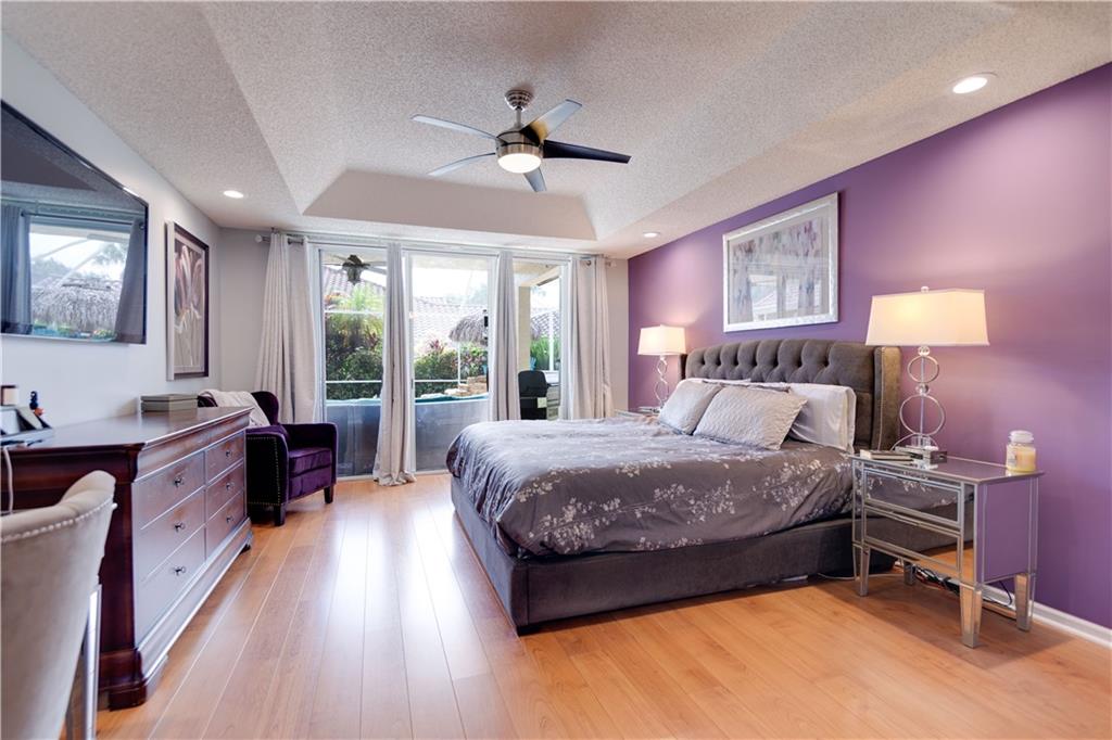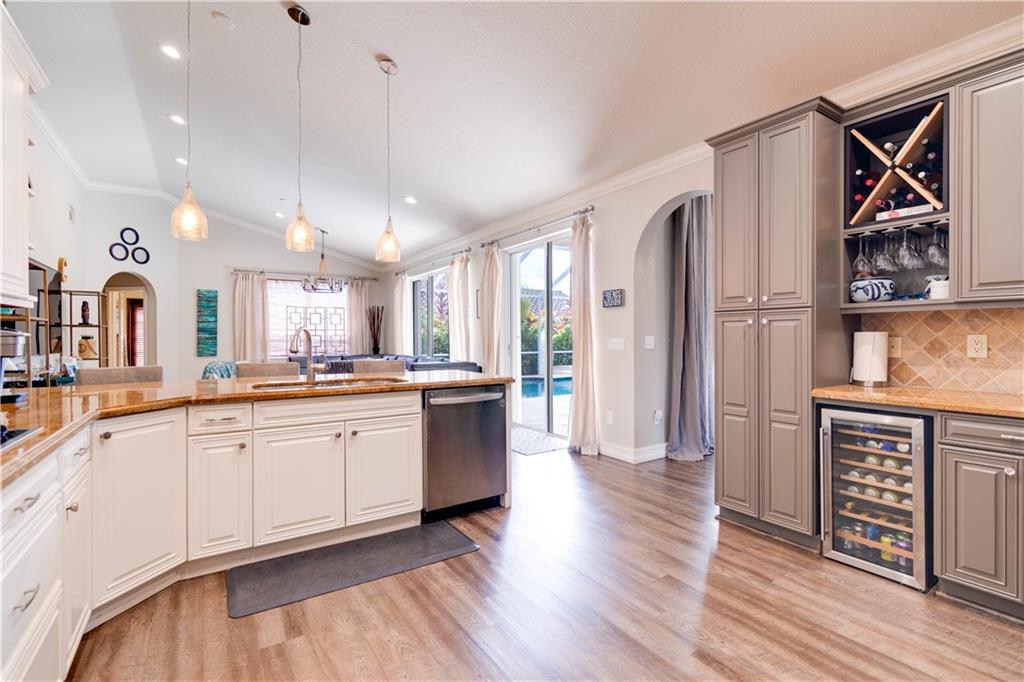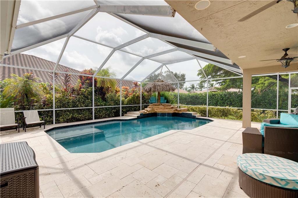 Whittier Oaks spacious 5 bedroom, 3 bath pool home. Home shows like a model! Upgrades include a remodeled kitchen with wood cabinets, granite countertops, upgraded stainless steel appliances and a wine refrigerator. Neutral wood like floors throughout the home, large master suite with updated master bathroom. Private triple split floor plan. Step outside and enjoy the resort style solar heated pool with waterfall. Home also has accordion hurricane shutters around the home. Large fenced backyard with lush landscaping. Newer AC, hybrid water heater and more. Low monthly HOA fee includes lawn care. Quiet man gated community that is walking distance to Terramar Park, Shops and Restaurants.