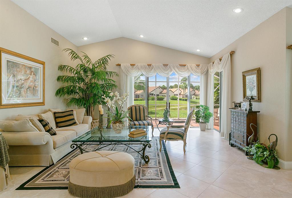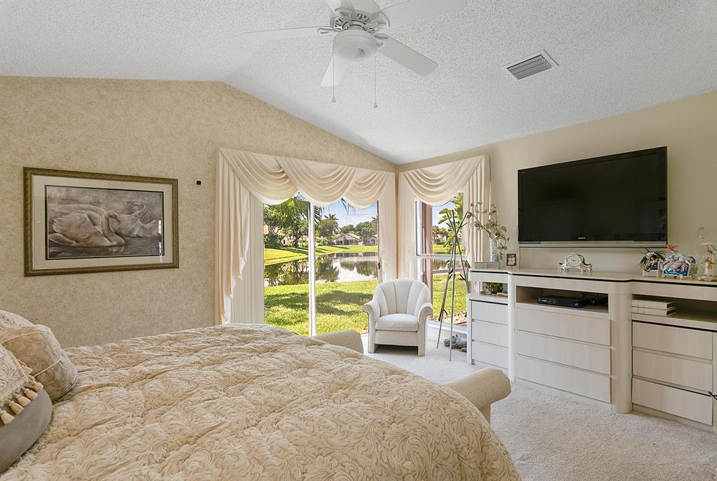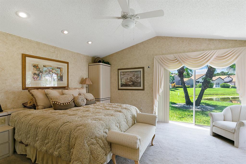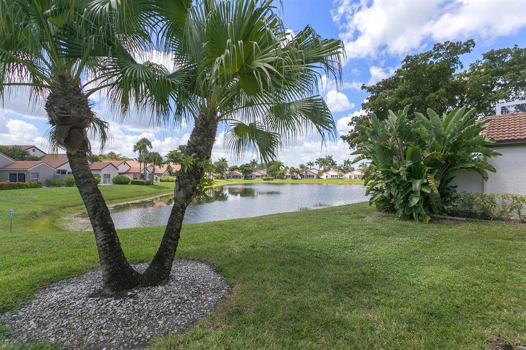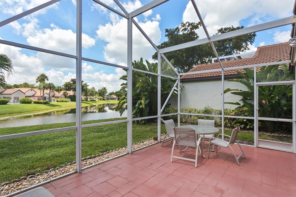 Motivated seller! Beautifully updated 1 story home in Palomar at Boca Pointe. This 2 bedroom model plus den can easily be turned into a 3 bedroom home. Screened and partially covered patio to enjoy the peaceful lake views. Contemporary kitchen updated with top of the line appliances, updated cabinets, stainless appliances and granite counters. Master bath is stunning with replaced cabinetry, marble floors, updated shower and toilet. Dining room has built in bar with granite top. Living room has high ceilings and beautiful views. Hurricane film on all back windows and doors. All closets custom fitted. Both bedrooms have built in furniture with tons of storage. Garage has extra storage and epoxy floor. Master bedroom has 2 closets. AC 2015. Roof 2008. Water heater 2013.