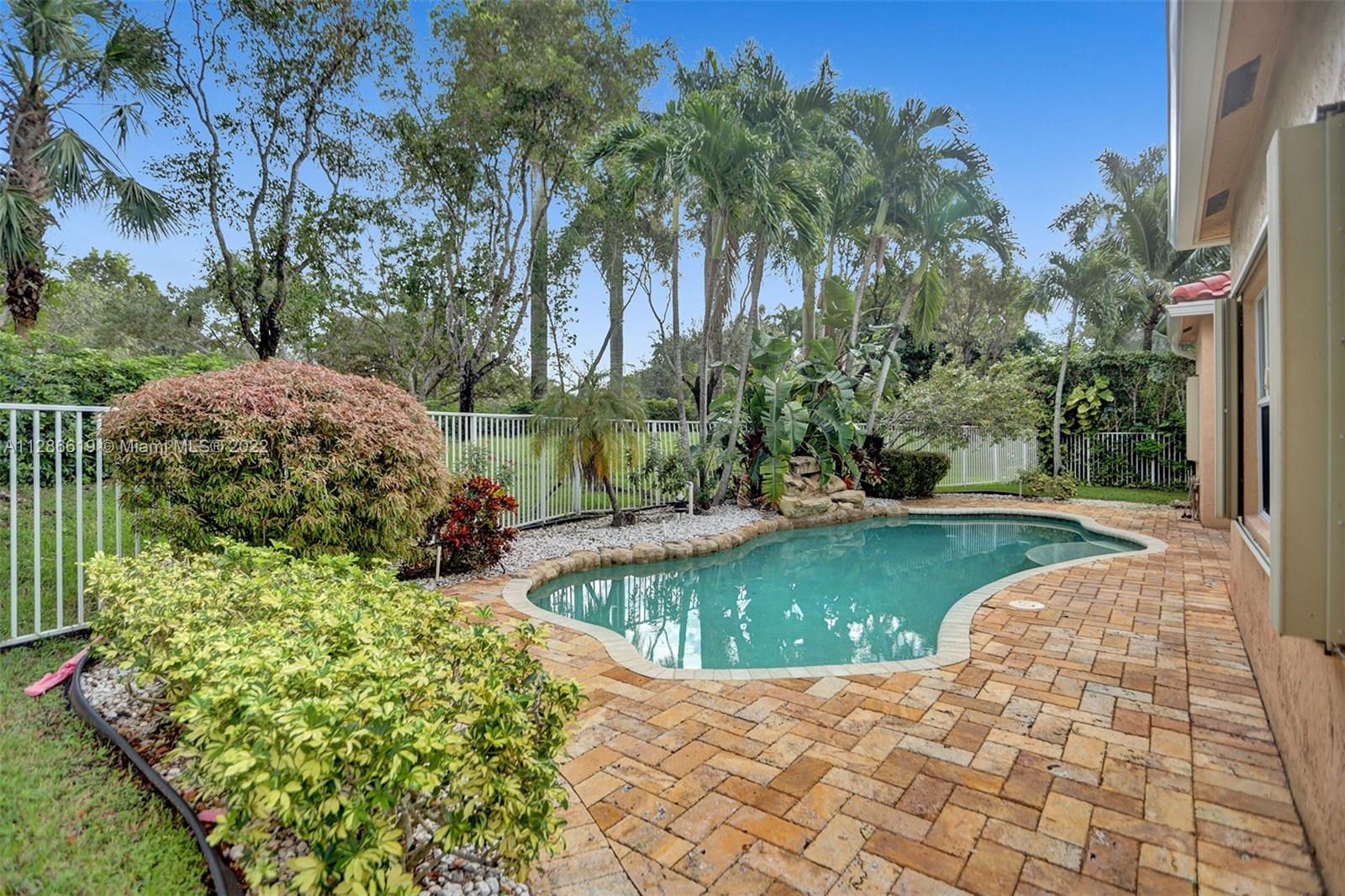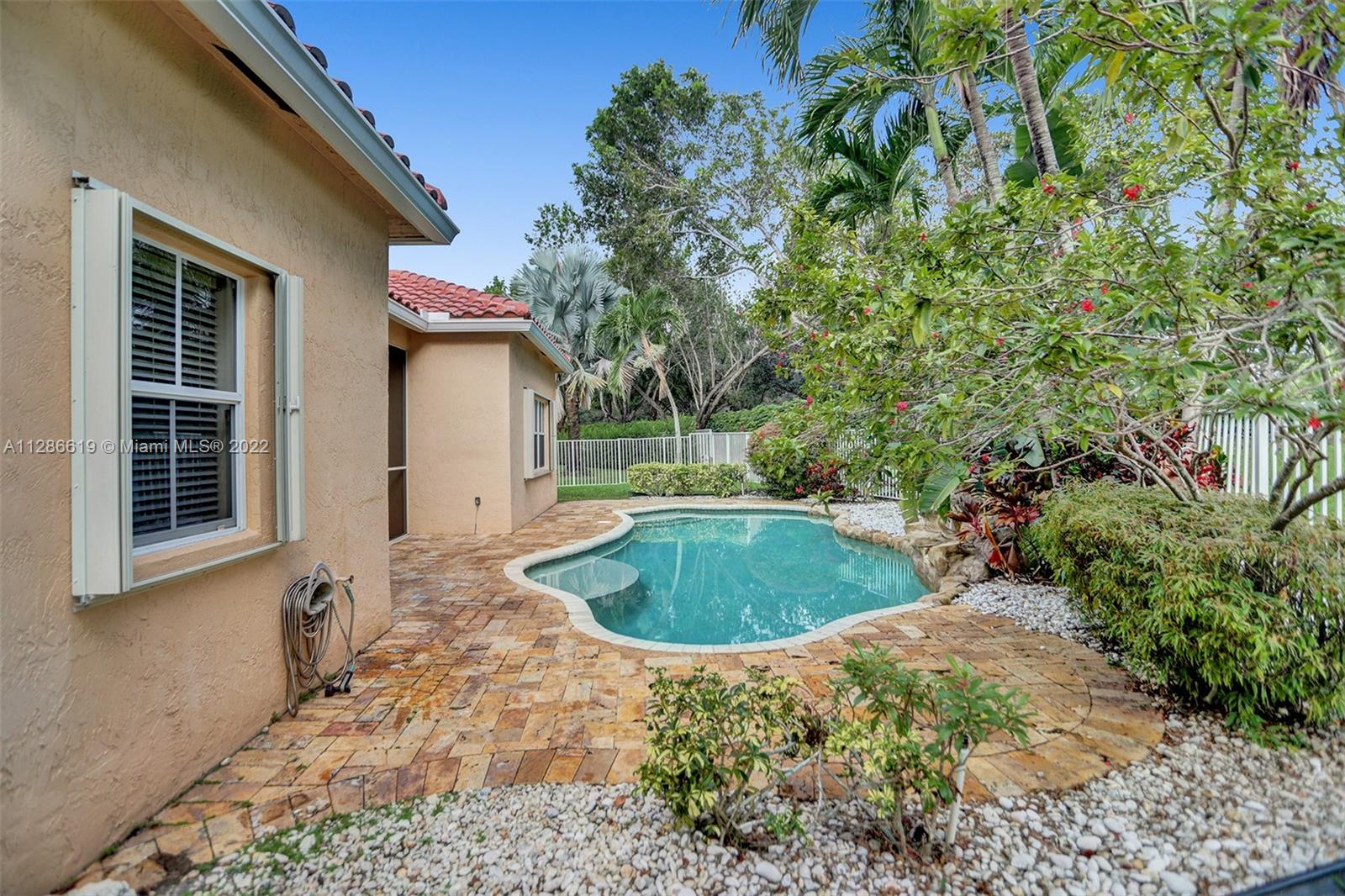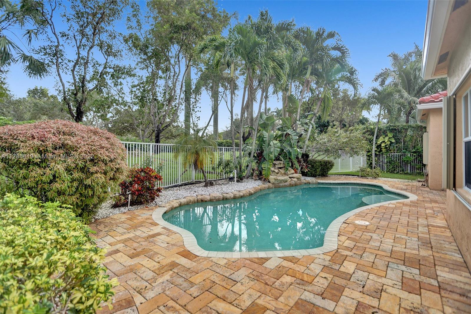 Beautiful property located in the prestigious The Ridges community in Weston. Spacious single-story home featuring 4 Beds, 2 full baths, upgraded powder room, and a stunning pool. Ideally located in a cul-de-sac & unique private lot. This amazing property features a new roof, new A/C, new water heater, 2 cars garage, a very large main bedroom, and upgraded in-ground sprinklers. The Ridges includes a pool, toddler pool, splash pad, BBQ areas, basketball, soccer and pickleball courts, playground and a beautiful sidewalk with amazing lake and landscaping views. A+ Rated Schools.