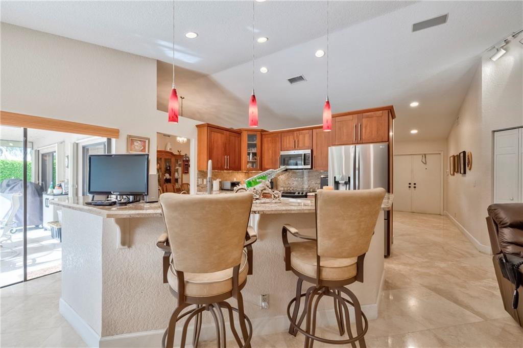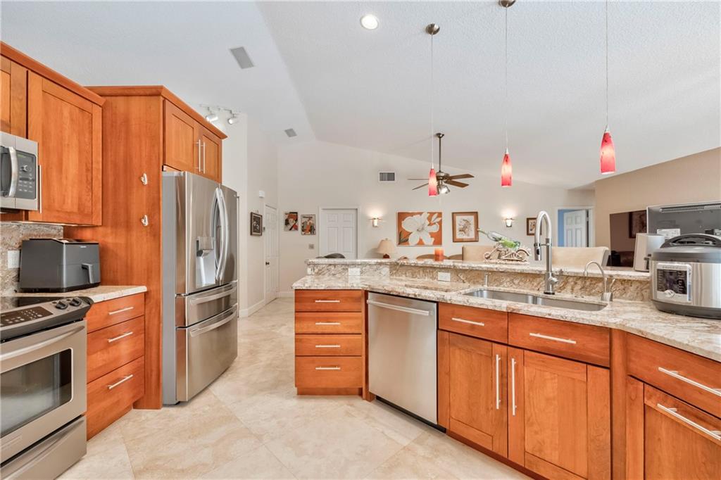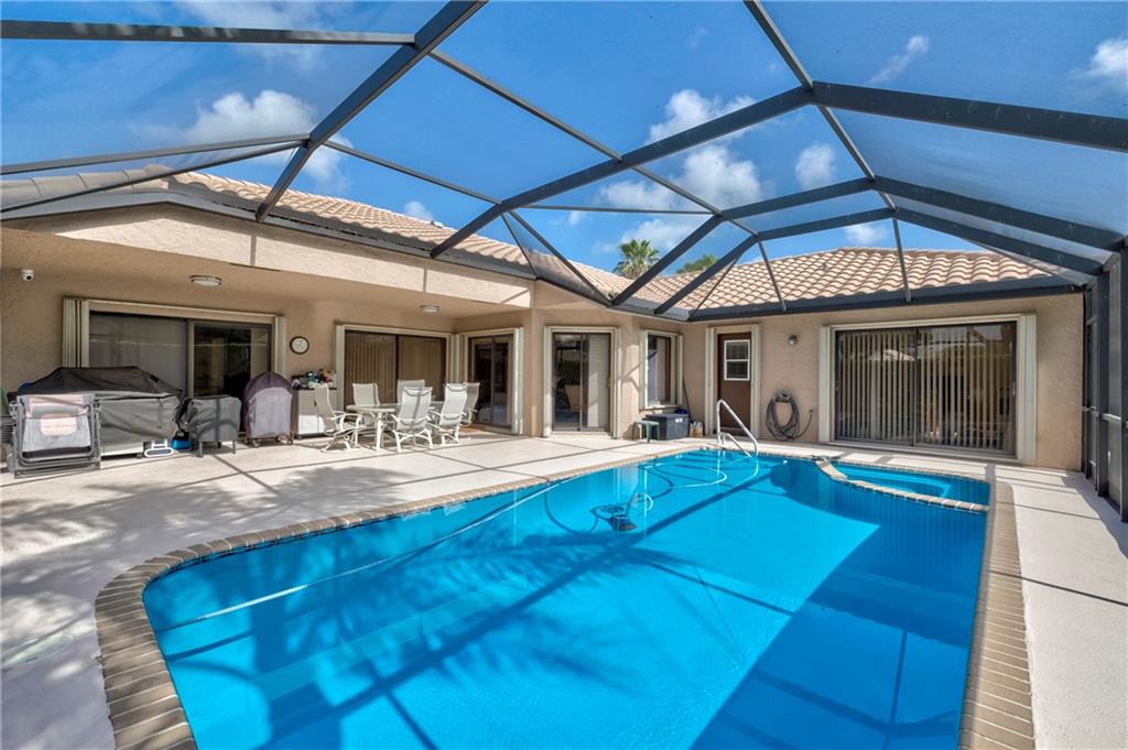 THIS HOME IS A BEAUTIFULLY UPDATED 4/3 POINCIANNA MODEL W/OVER 140k IN UPGRADES! TUMBLED MARBLE CIRCULAR DRIVEWAY!TRAVERTINE STONE FLOORING FRESHLY POLISHED W/ENGINEERED HARDWOOD FLOORING IN THE MAIN BEDROOM!UPDATED KIT. W/GRANITE COUNTERTOPS/OMEGA CUSTOM WOOD CABINETS!A/C & WATER HEATER 2022! UPDATED SS APPLIANCES W/TOP OF THE LINE LG 30 CU FT FRENCH DOOR REFRIG. GE ADVANTIUM DUAL MICRO & CONVECTION OVEN!W/UNDER COUNTER WATER FILTER/BOSCH DISHWASHER/PENDANT LIGHTS OVER THE ISLAND/MAIN BATHROOM ALL UPDATED W/ONYX COUNTERTOPS & INLAYS/ALL MARBLE FLOORING & SEEMLESS SHOWER GLASS DOORS!ACC. HURR. SHUTTERS! W/ MYQ WI-FI GARAGE DOOR OPENER! UPDATED ELECTRICAL PANEL!HOT TUB REMODELED & DIAMOND BRITE REFINESHED LAST YEAR!LOCATED ON AN OVERSIZED 1/4 ACRE LOT!SEE ATTACHED UPGRADES!