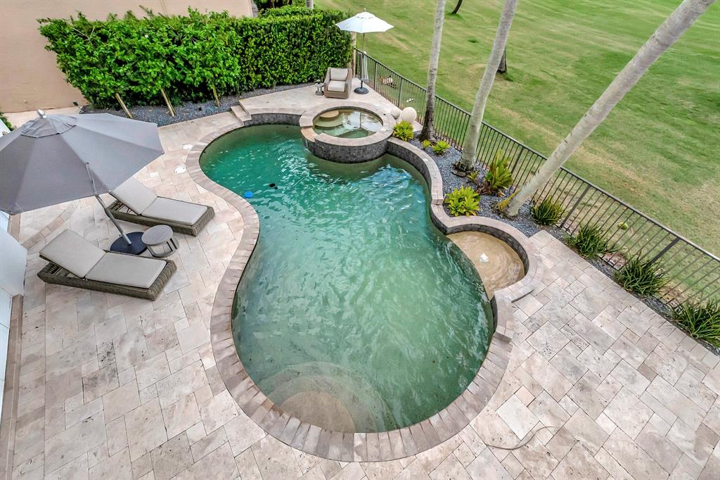 Breathtaking, two story home with golf courses views. Highlights include a mix of impact and accordion windows; new full house generator; roof under 3 years old; and hardwood floors in every bedroom. RH furniture and golf cart both negotiable.Gorgeous, renovated kitchen with KitchenAid appliances with a natural gas stove, breakfast nook, backyard views, and Restoration Hardware fixtures.The first story has the dining room with butler entry; office with french doors and plantation shutters; and guest suite with cabana bath and backyard entry.Upstairs, the two bedrooms share a Jack-and-Jill bath with vanity; the massive master has a newly renovated terrace overlooking the golf course.Backyard features a newly renovated heated pool and spa; mini-fridge & sink; covered patio