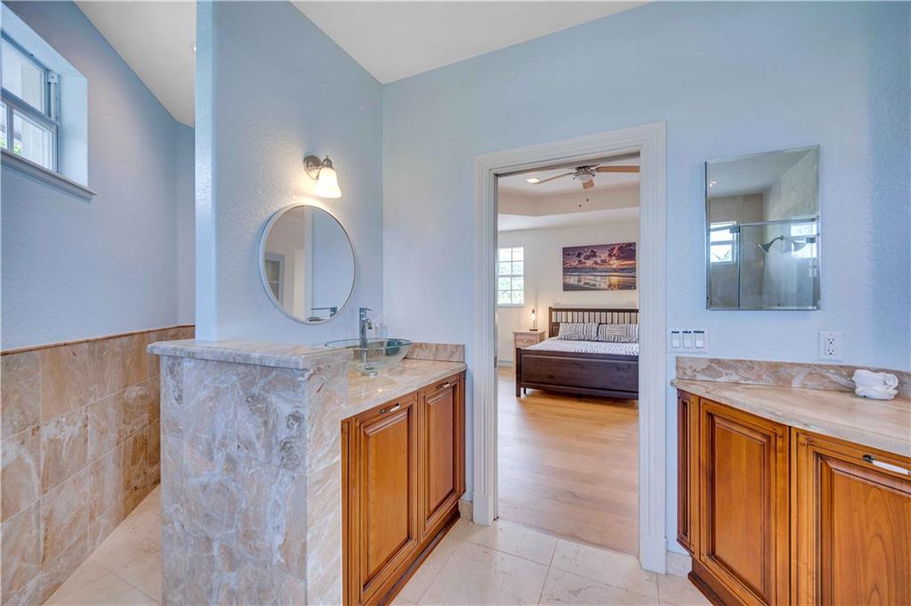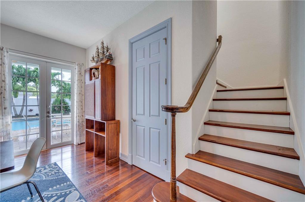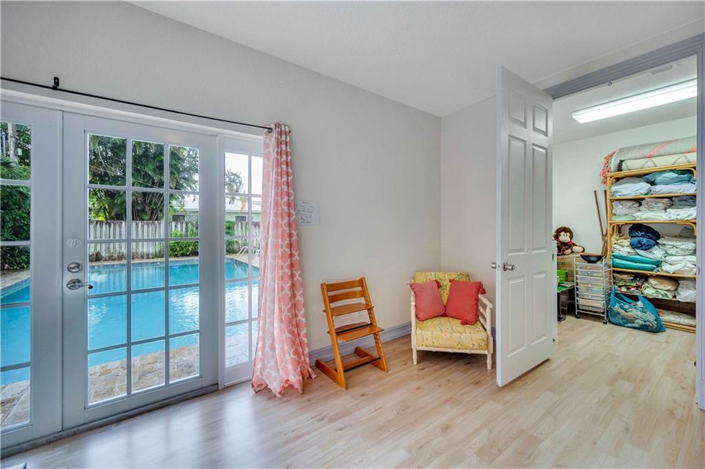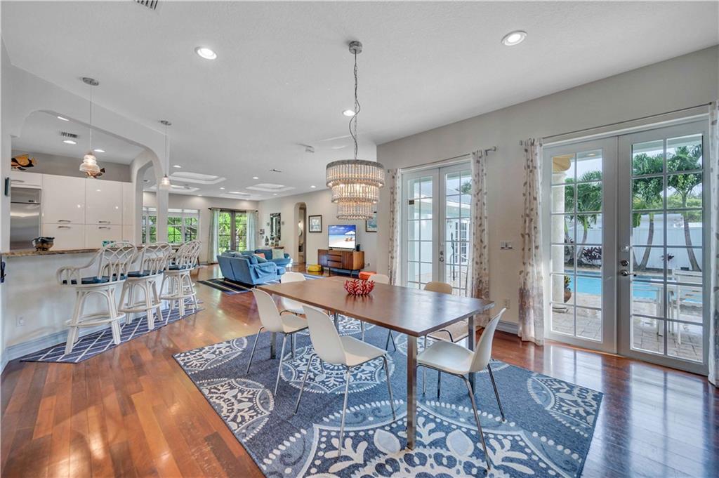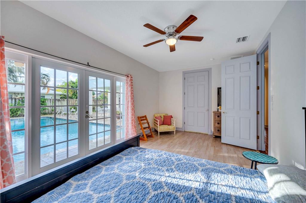 This home is bright, open and very spacious on a quiet corner in Coral Ridge. High ceilings, walls of windows, two primary suites, impact rated windows and most doors, a modern kitchen with breakfast bar and prep island, walls of cabinets, multiple huge closets, the second floor bedroom suite features an adjoining office and luxury bath with a Roman tub and separate shower. The oversized two bay garage opens to a huge, circular drive. A roofed patio overlooks the very private gardens surround a large pool ideal for swimming laps. Surrounded by all single family homes and located under a mile from Bayview Elementary school. Beaches and parks are minutes away.
