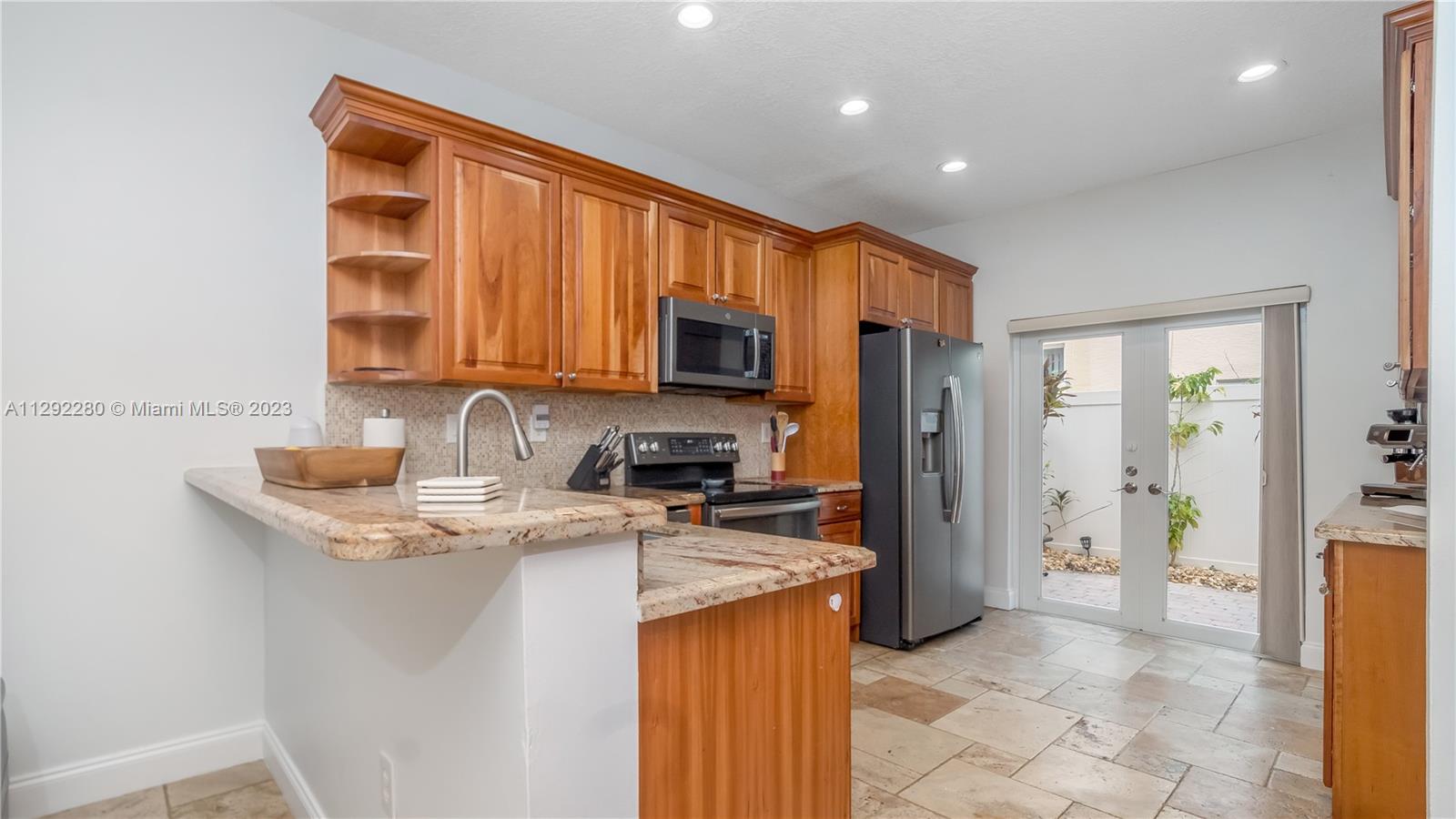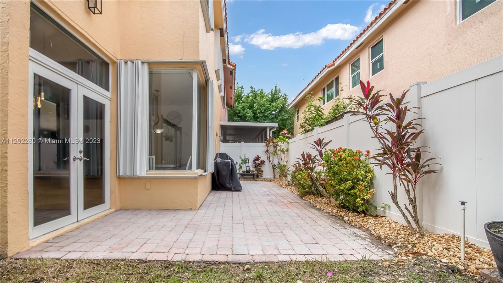 Light & bright home in L'etoile at Emerald Pointe! Open kitchen w/real wood cabinets, SS appliances, granite countertops. Travertine floors recently sealed & wood floors upstairs. BIG PLUSES Roof done in 2018, some impact windows & doors plus accordion shutters. New lighting, new water heater in 2019. Enjoy the sunrise or afternoon snack from balcony patio. French doors to private backyard & BBQ area featuring upgraded vinyl fence & combination pavers & grass areas, perfect to entertain! Upstairs laundry. Lg master bedroom boasting travertine tile in bathroom & roman tub. BIG PLUS Low maintenance! Includes cable, security guard, pool overlooking lake, tot-lot & GYM. Fab location close to TY Park, places of worship, Dania Pointe shops & dining, Hollywood Beach, I-95, Hard Rock Cafe & more!