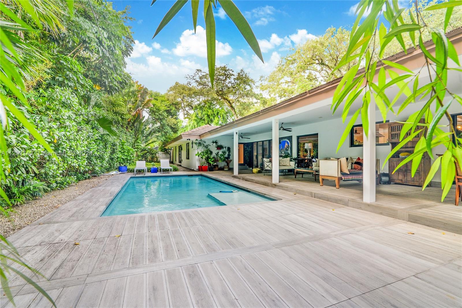 Spectacular 5 bed, 4.5 baths house in Skylake. Secluded on a Cul d’sac and surrounded by lush vegetation. This one story home was completely remodeled, and tastefully done in 2014, is ready to move in. Large driveway will allow parking up to 6 cars, infinity pool in a beautiful forest-like garden, ample kitchen with s/s appliances, designer lighting throughout the interior, electric generator, maid's quarter, impact windows, gas piped kitchen, shed with a split a/c unit used for artwork or a gym. It's a most see, it won't last.