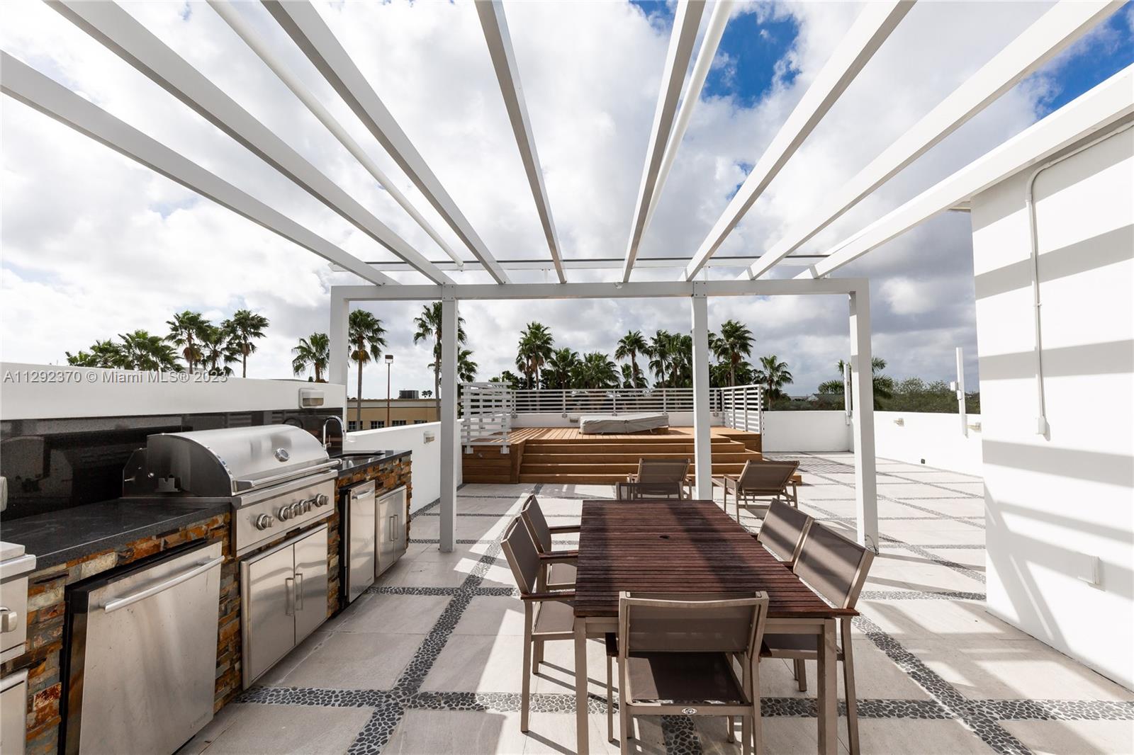 Fully Equipped -with Rollingshield Pergolas, California Closets, 5 TV's Wall Attached, all Windows with Shades, Blackouts & Solar Blinds, ETC. Roof Terrace with Full Equipped Kitchen and BBQ, Jacuzzi and Shower Bathroom with toilet and lavatory. Patio with Brick Paves. No neighbors in the back. SHOWINGS ONLY MONDAYS THRU FRIDAYS PREVIOUS 24 HRS CALL IN ADVANCE BETWEN 10 AM AND 4 PM.