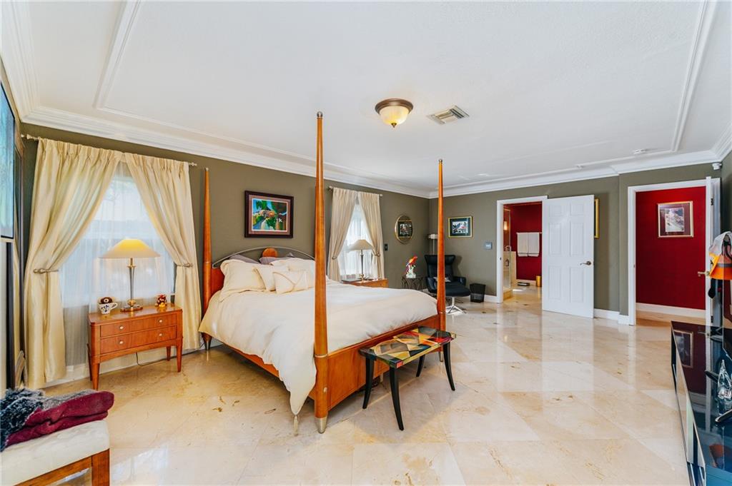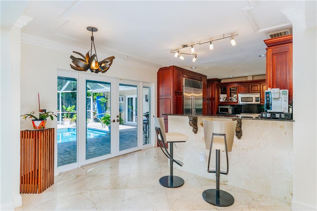 Welcome home to a Quiet Oasis in Coral Ridge CC. Expansive 3299 Sq. Ft. under air, plus 2 car garage. Graciously appointed, marble flooring throughout and bold layered crown moldings. Grand Owner’s Suite boasts enormous closet and Spa style Bath. Triple Split plan with Teen/In-Law suite featuring a sitting room with fireplace. Large family room could easily become another suite with existing full bath. Viking Range & Microwave, Sub Zero Refrigerator in large kitchen designed for entertaining. French doors lead to the screened pool from main house and rear suite. Tile roof done 2013, Fence 2014. Impact Garage Door 2015 and Impact Entry Doors in 2016. Under 1 mile to the beach, Close proximity to surrounding Fine Dining. ---Perfect for Short Term Rental - could host 12 - 14 guests!
