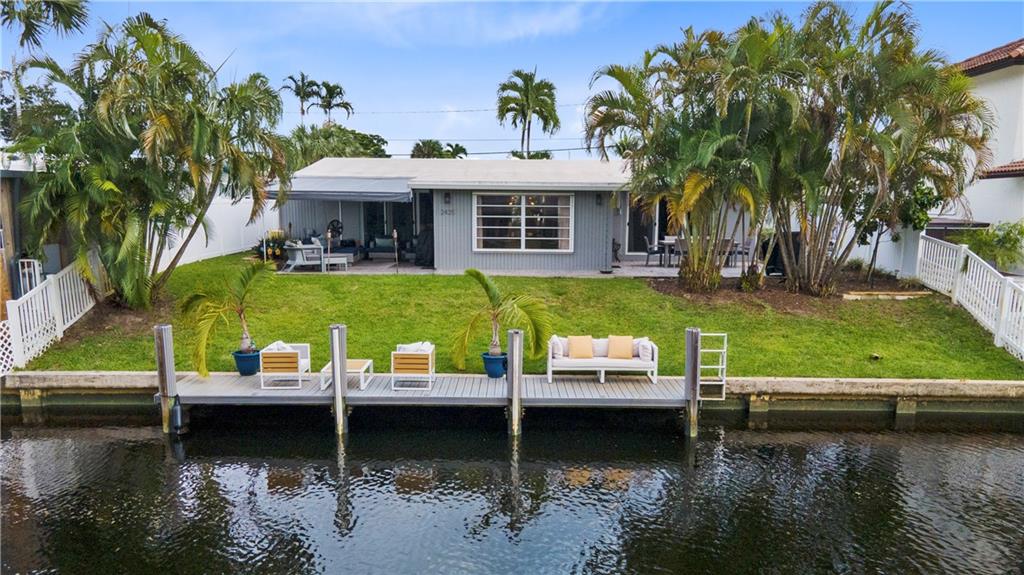 Beautifully renovated to perfection!! Large 3 bedroom 2 bath home with serene views overlooking the water!! 65 ft of waterfront with a solid newer 40 ft dock. Boaters paradise! Gorgeous kitchen with White Shaker Cabinets & Quartz counters! Located in Lauderdale Isles -- a boating community with deep-water, ocean access canals, NO FIXED BRIDGES. State of the art appliances. No HOA & no rental restrictions. blocks from public boat ramp. Just a few miles to airport, Ft. Lauderdale beach & downtown. Make this your primary residence, vacation home or income producing property. No short cuts have been taken on this home. Newer impact windows. Home has been meticulously crafted and cared for. Cruise your boat right out to the ocean. Shed included! Yes, you can built a pool.